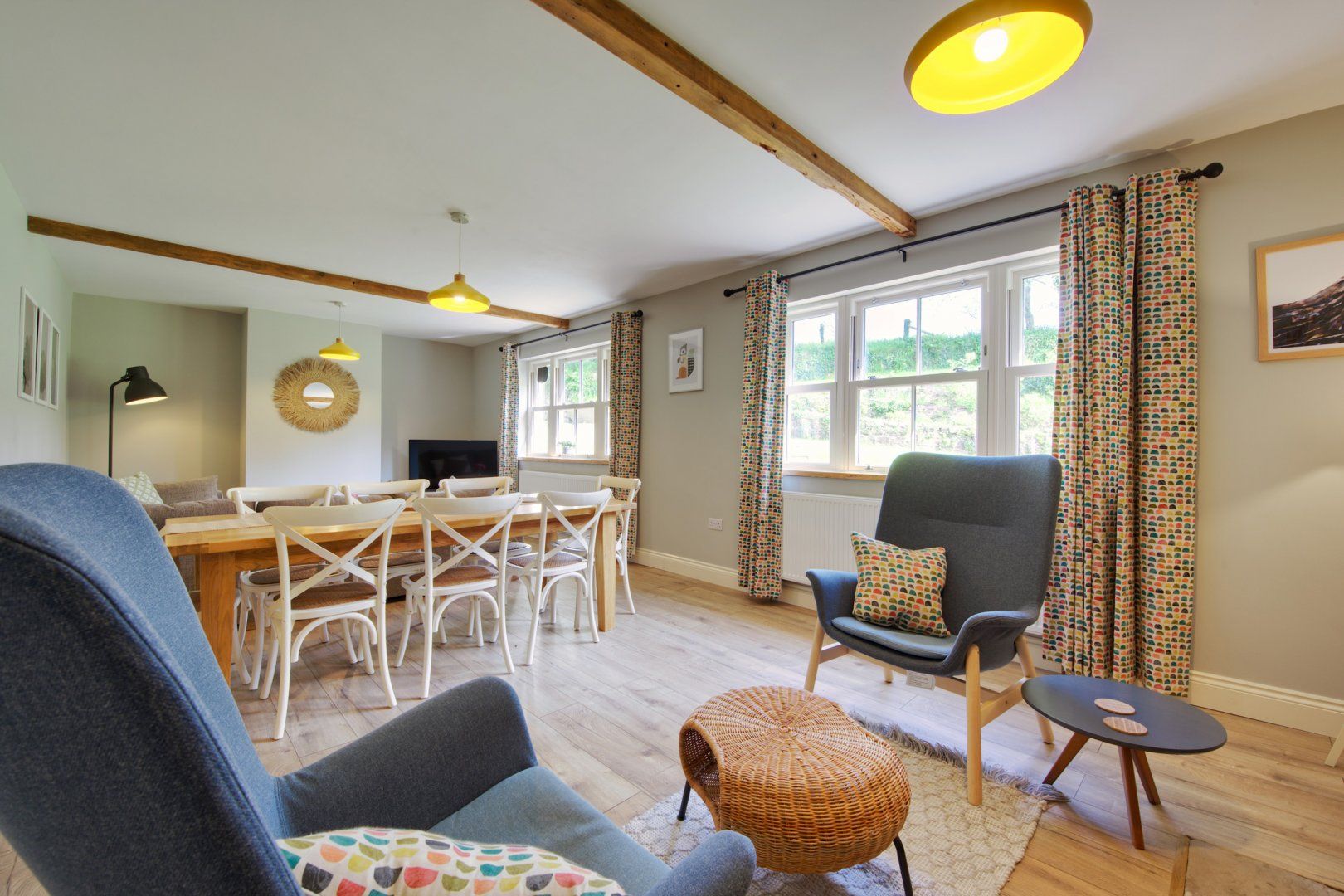 Oil central heating. Range with electric oven and gas hob, microwave, fridge/freezer, washing machine, dishwasher, coffee machine. 2 x Smart TV, Bluetooth speaker, games console. Fuel, power and starter pack for woodburning stove inc. in rent. Bed linen and towels inc. in rent. Highchair and travel cot available. Off-road parking for 5 cars. Garden with lawn, furniture, firepit, barbecue, access to shared 4-acre natural grounds with woodland. Sorry, no pets and no smoking. Shop 3.9 miles, pub 1.5 miles. Note: Fly fishing is available on-site (license required, by arrangement with owner). Note: Guests can purchase wood supply for £3 a bag