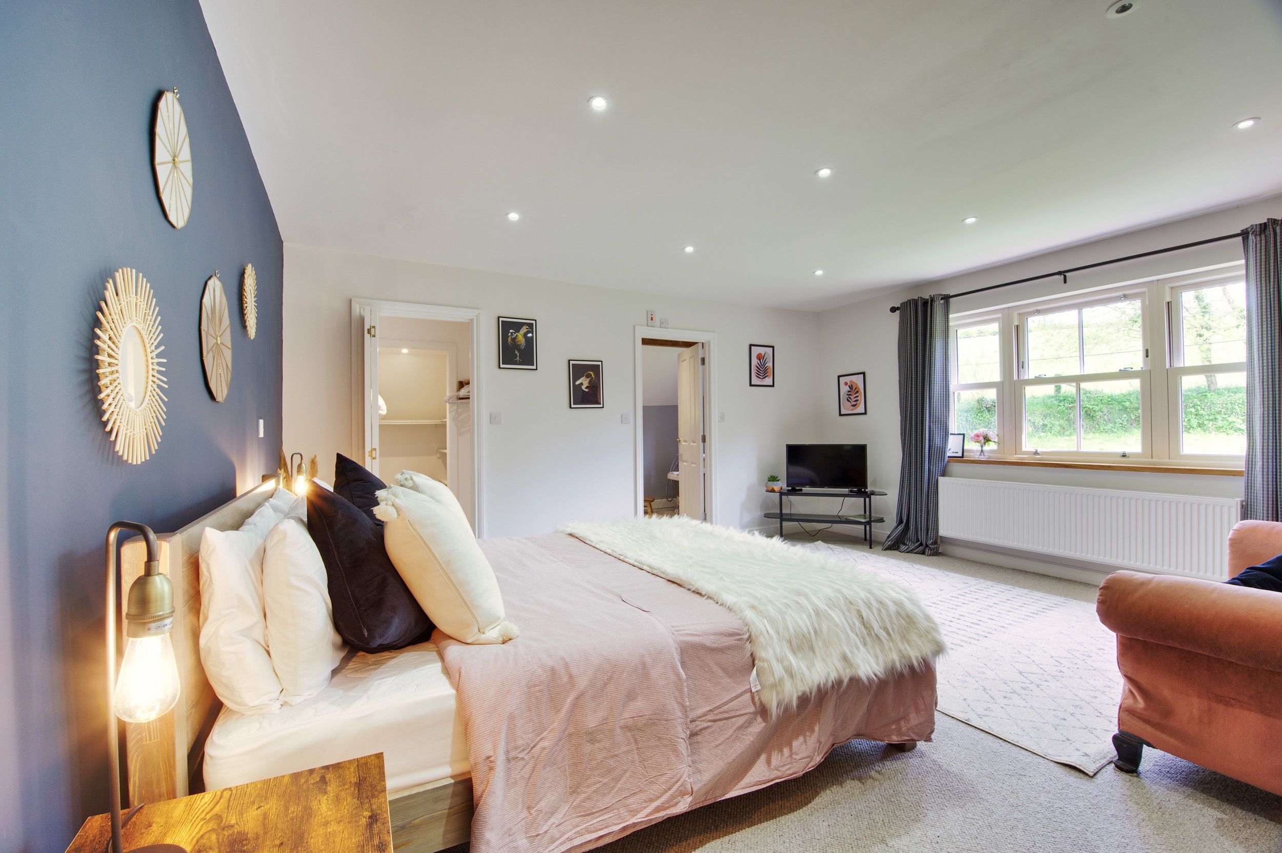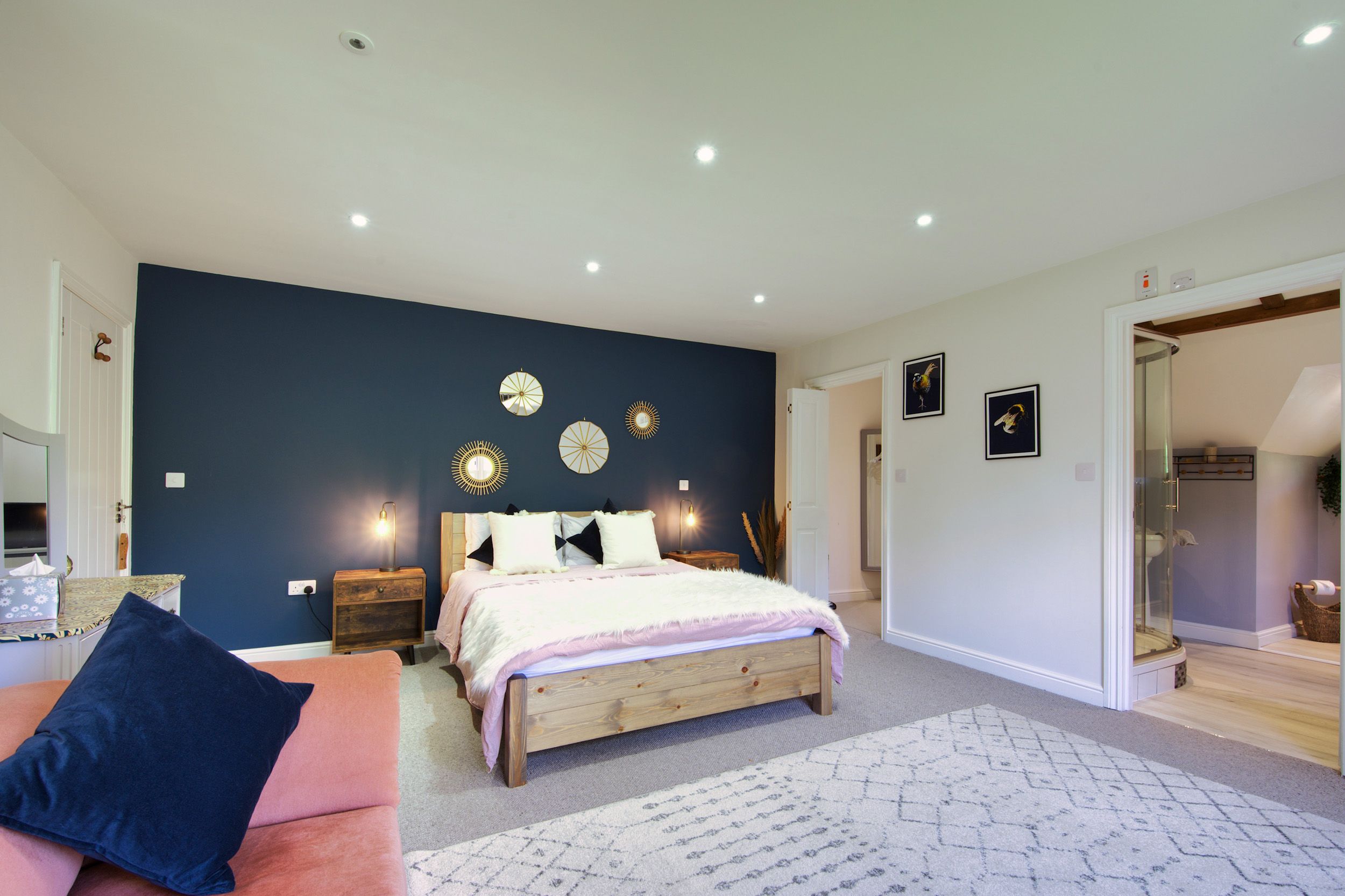 Four bedrooms: 1 x king-size with Smart TV and en-suite bath, handheld shower, walk-in shower, basin, heated towel rail and WC, 1 x ground-floor king-size, 1 x double, 1 x single with sofa bed. Bathroom with bath, shower over, basin, heated towel rail and WC. Cloakroom with basin and WC. Kitchen. Living/dining room with woodburning stove