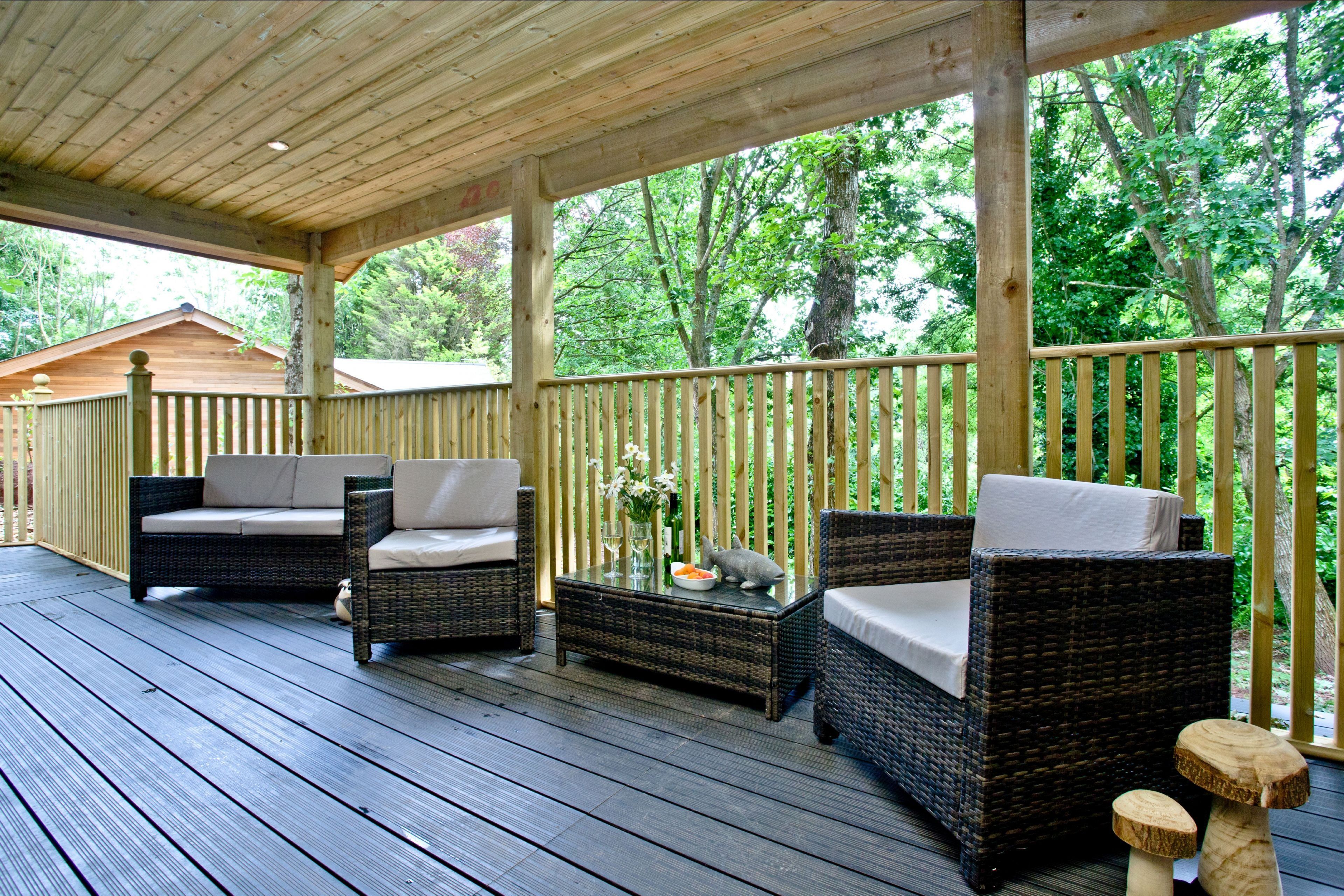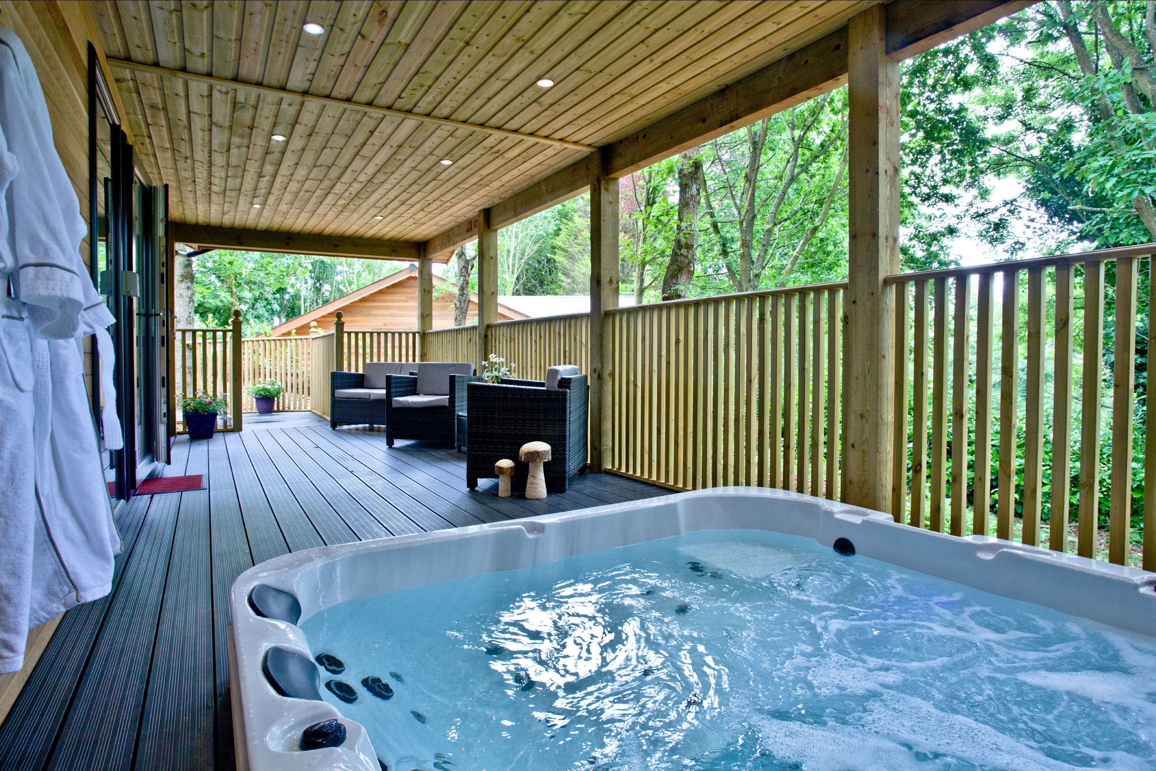 OutsideThe lodge can be accesses by a wheelchair ramp. Private balcony to the front of the lodge with table, chairs and hot tub. Lakeside setting with beautiful views. Two parking spaces next to the lodge. Surrounded by six acres of wooded grounds you have the opportunity for walking, cycling, rambling, angling, golf and horse-riding.