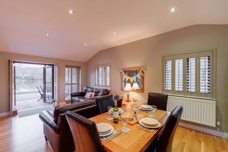 The lodge is accessed by four steps. Private balcony to the front of the lodge with table, chairs and private hot tub. Lakeside setting with beautiful views. Ample parking on-site. Surrounded by six acres of wooded grounds you have the opportunity for walking, cycling, rambling, angling, golf and horse-riding.