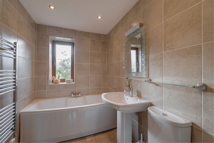 Fully tiled with bath, wash basin, WC, heated towel rail, mirror and shaver point.Bathroom Two
