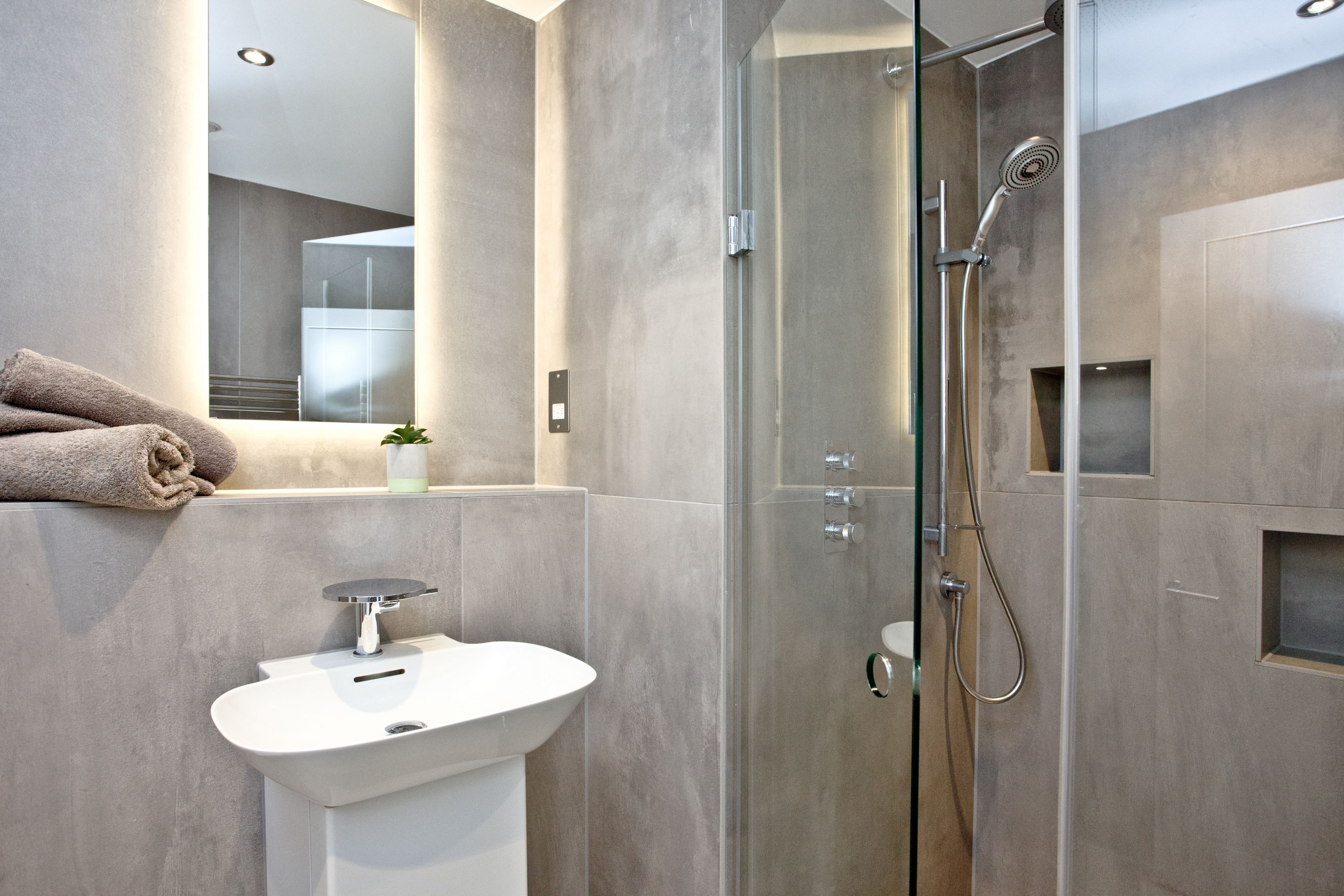 Shower, WC and wash basin