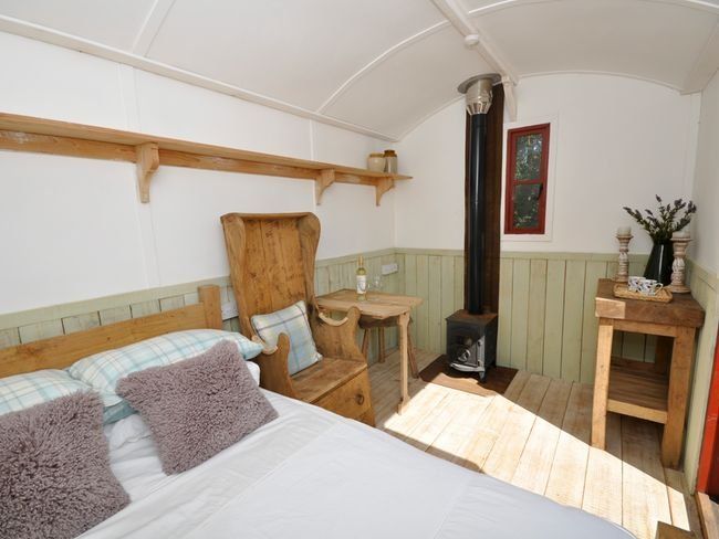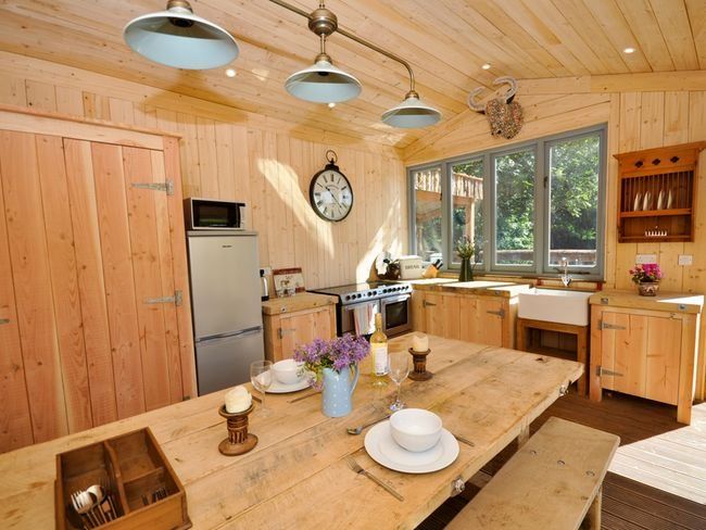 Tucked within a private corner of a 300-acre working farm in Devon, this lodge and shepherd’s hut offer a memorable glamping experience for two.