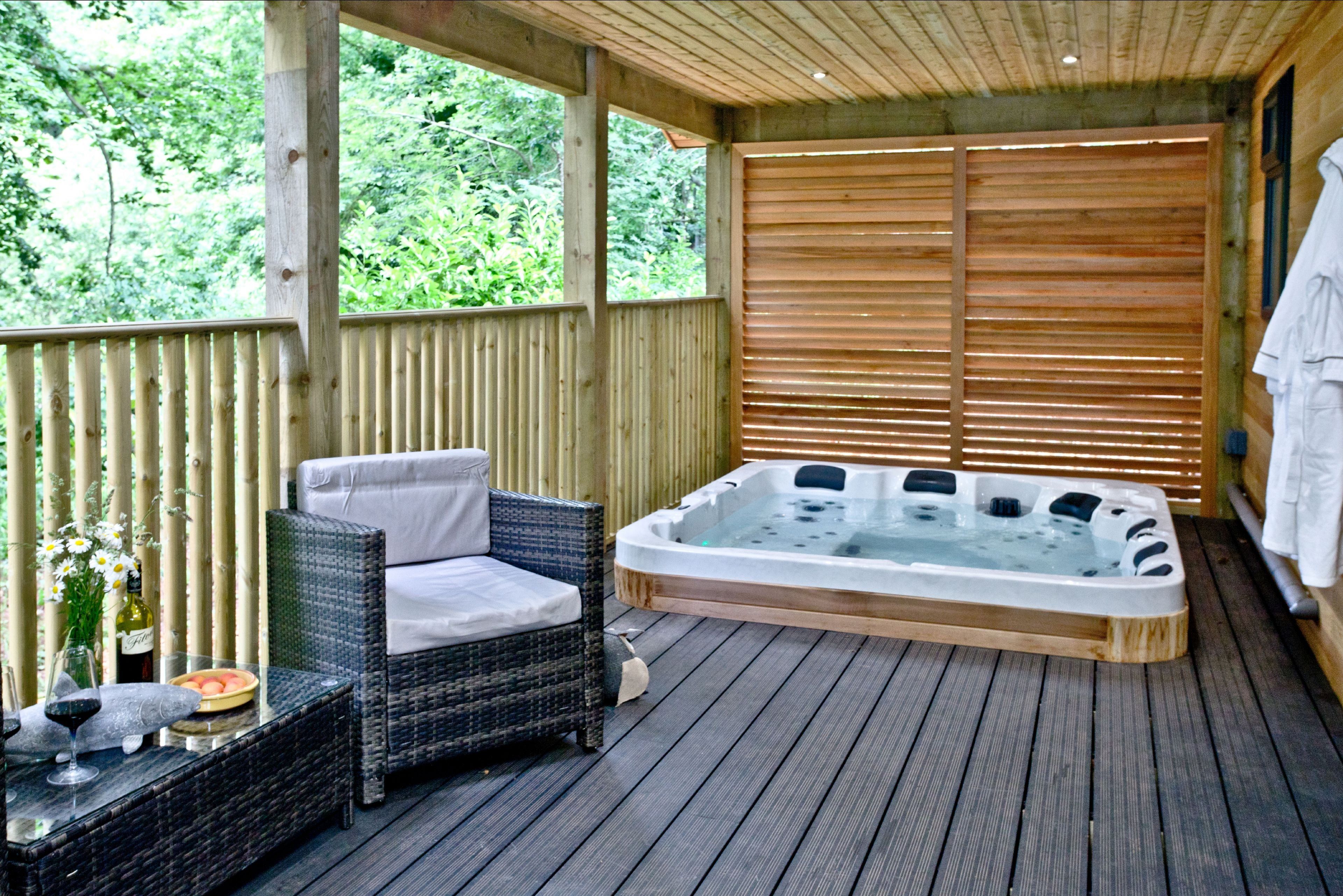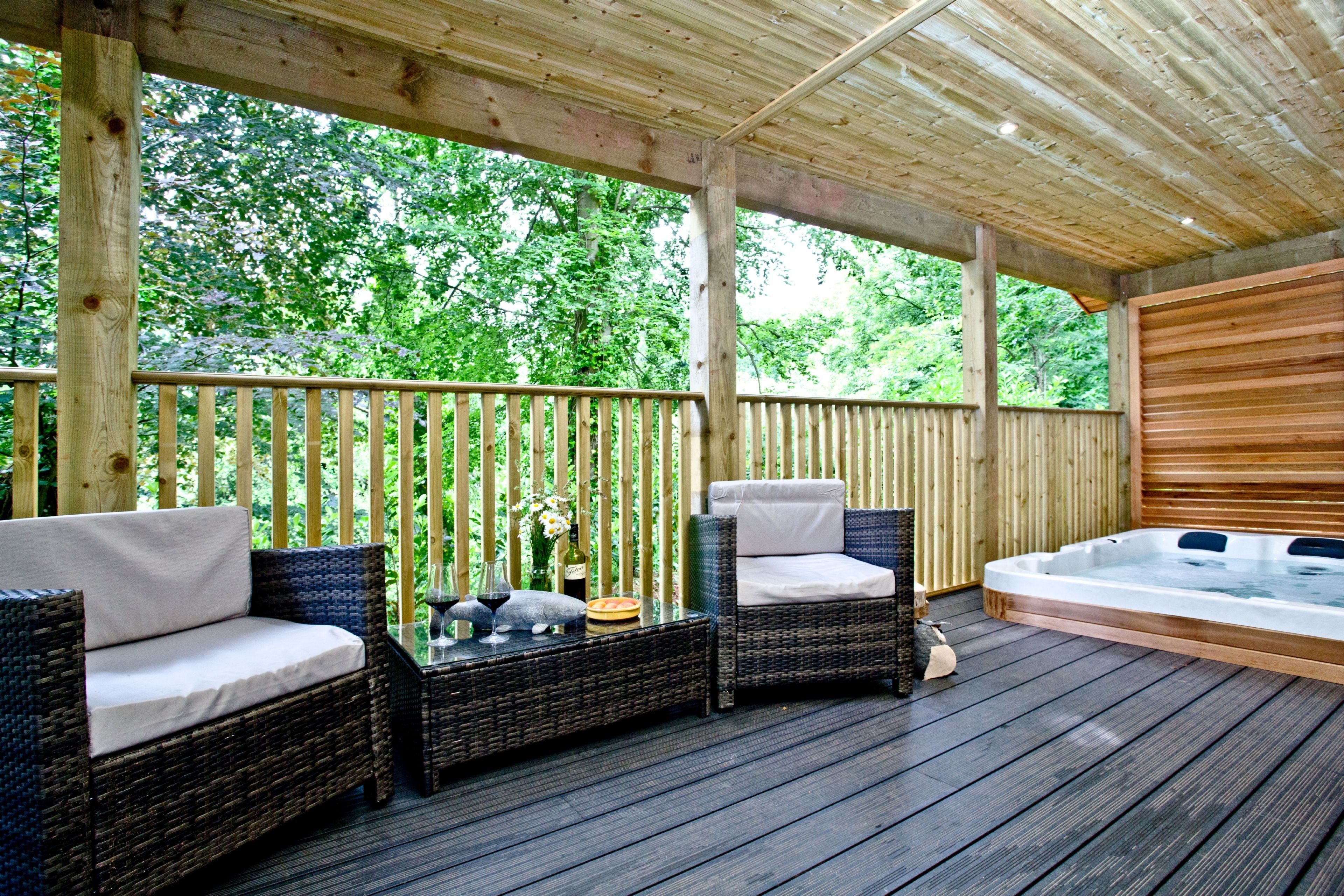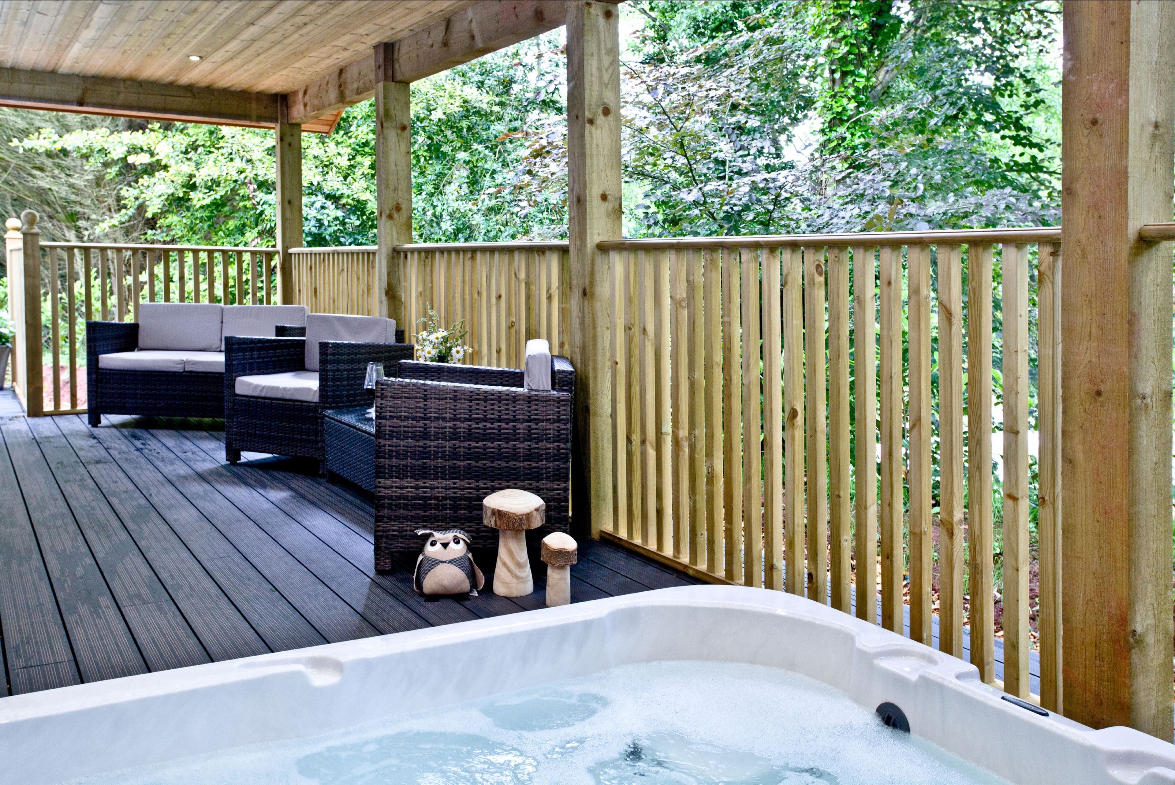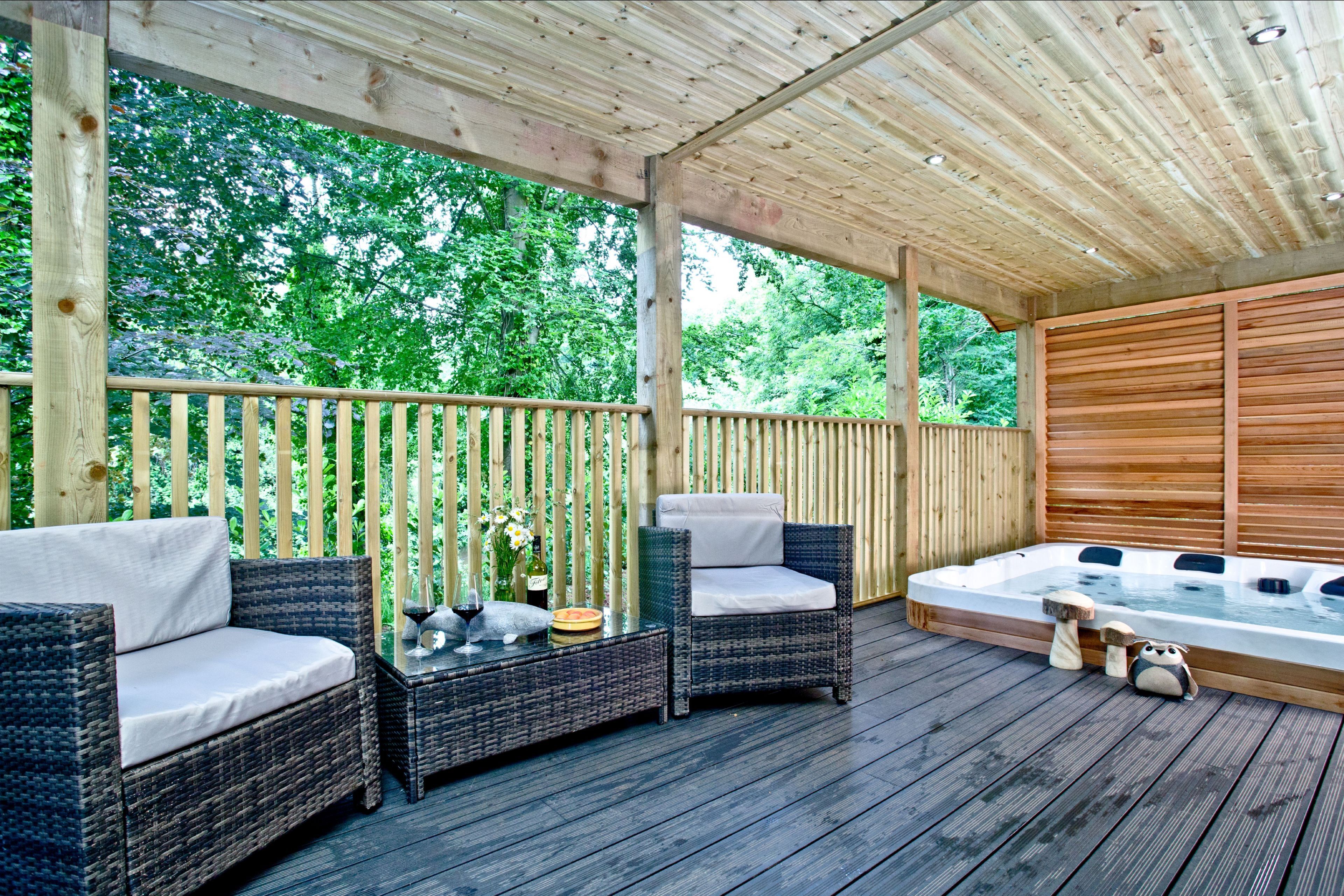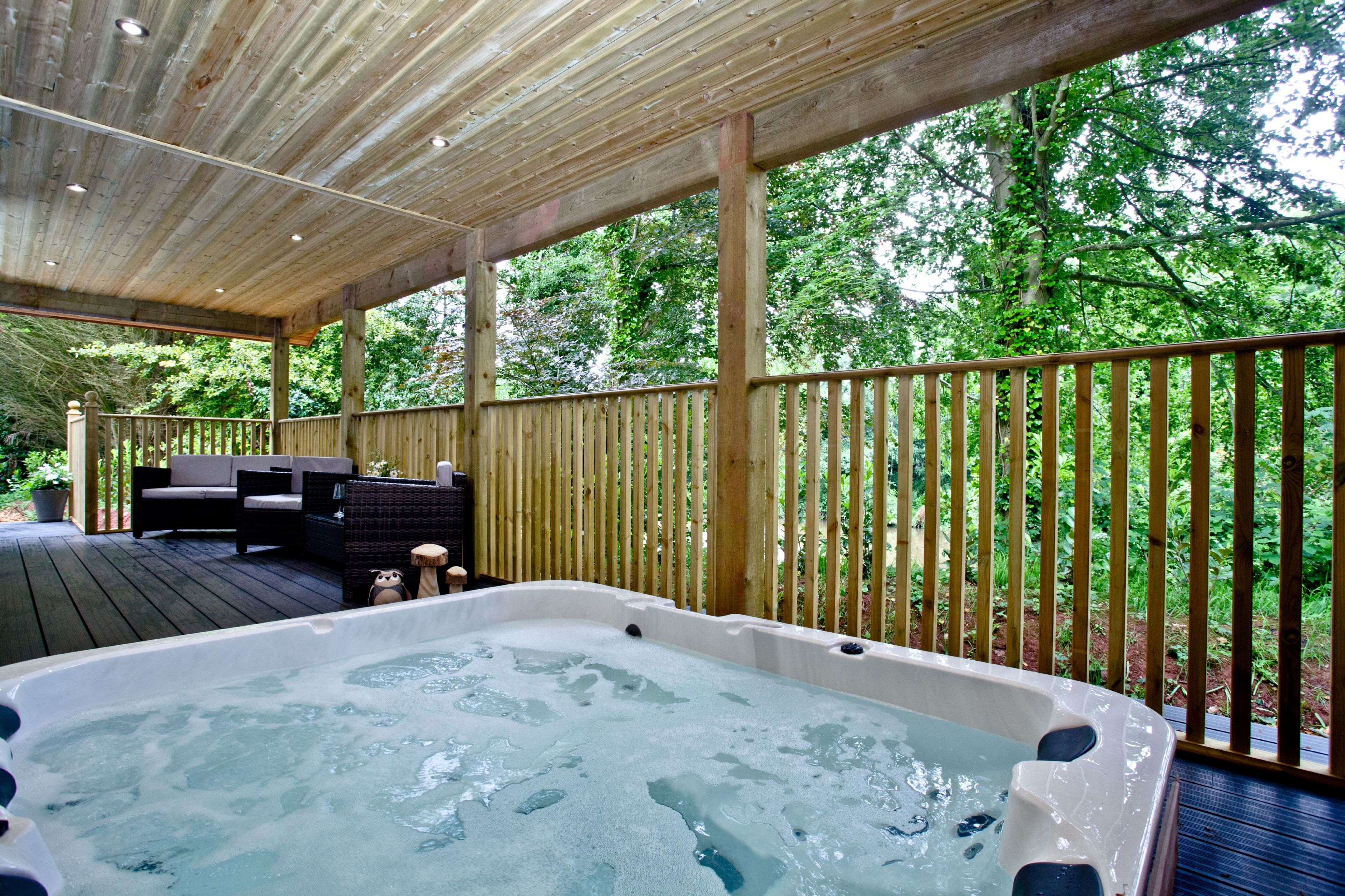 The lodge can be accessed by two steps or a ramp. Private balcony to the front of the lodge with table, chairs and hot tub. Two parking spaces next to the lodge and ample parking on-site. Surrounded by six acres of wooded grounds you have the opportunity for walking, cycling, rambling, angling, golf and horse-riding.Important Information