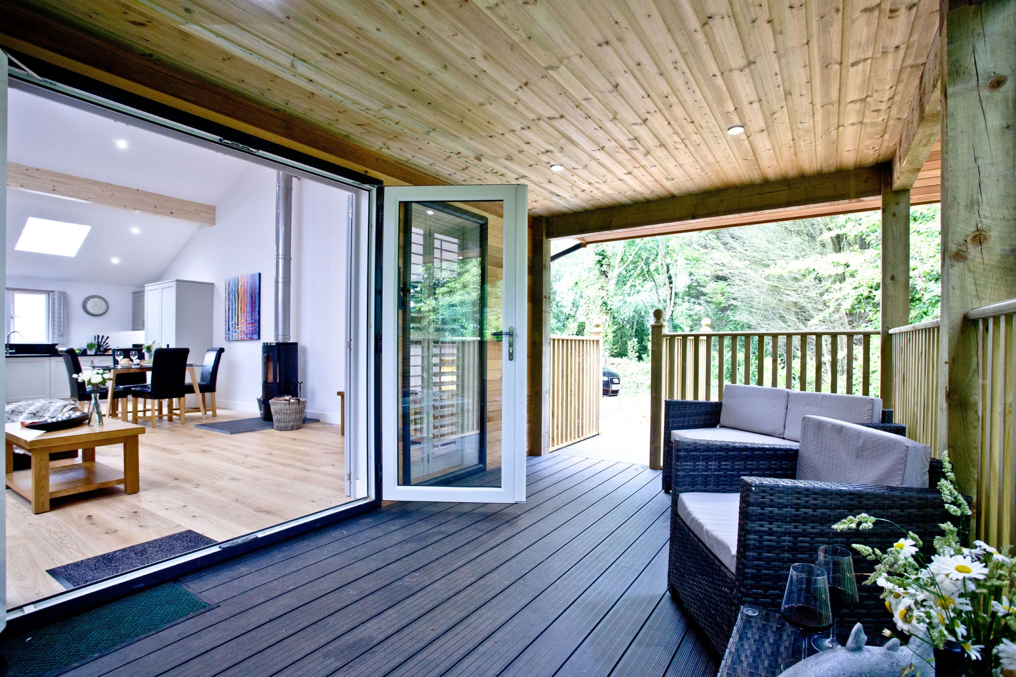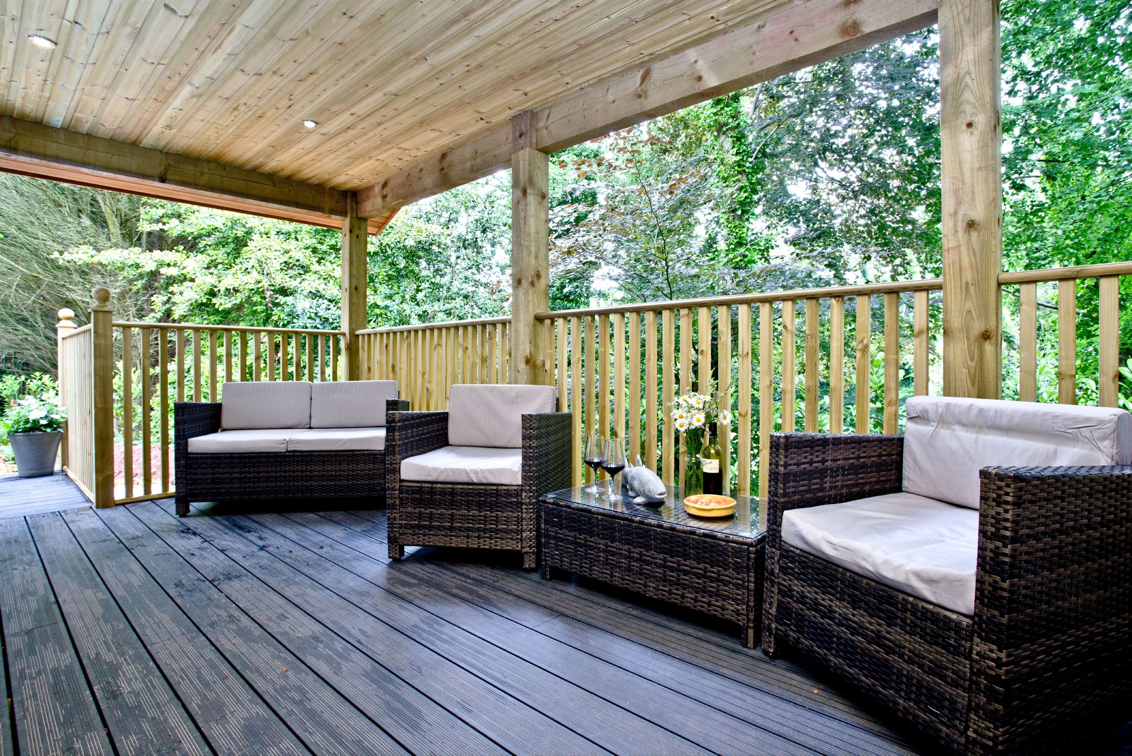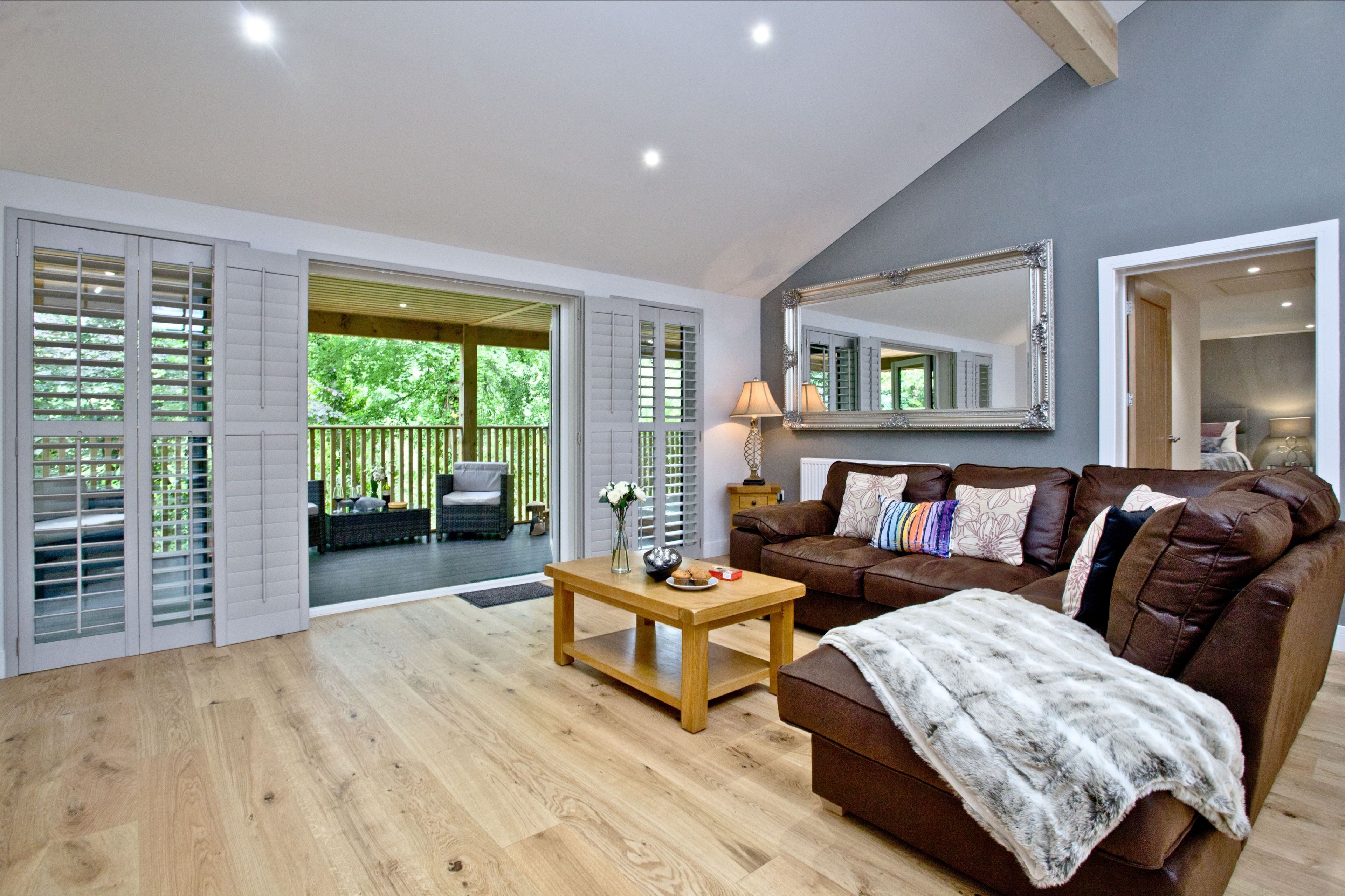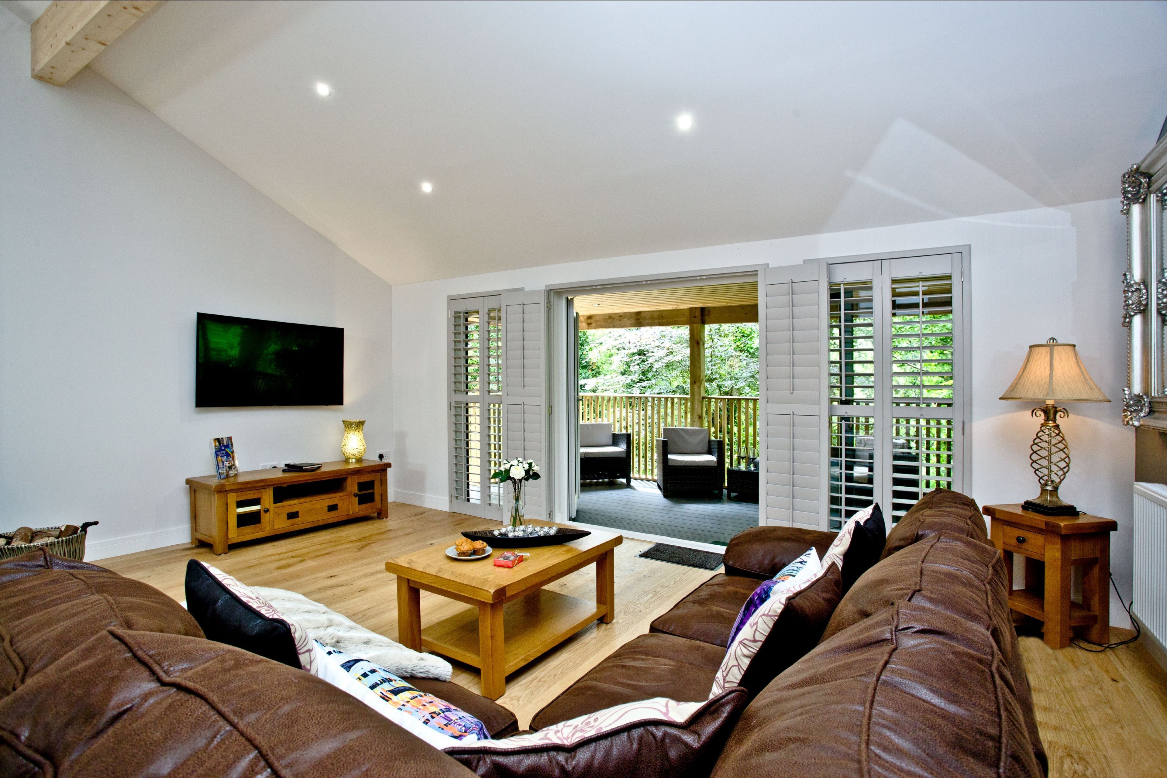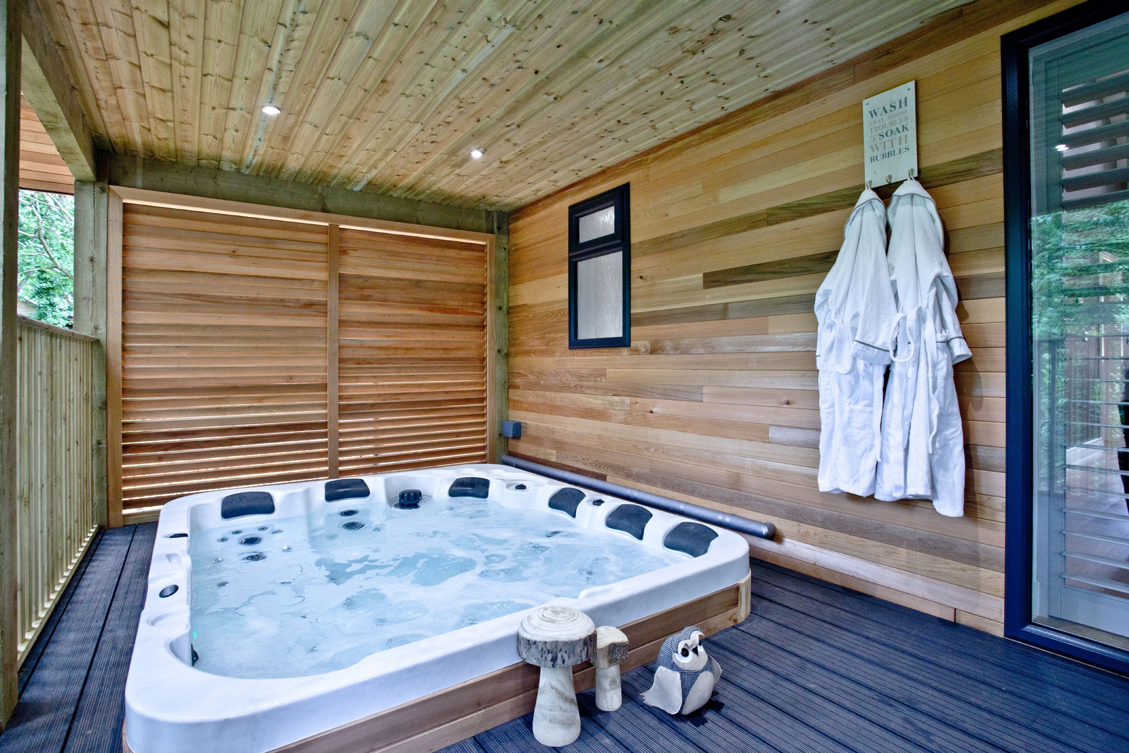 The lodge can be accessed by two steps or a ramp. Private balcony to the front of the lodge with table, chairs and hot tub. Two parking spaces next to the lodge and ample parking on-site. Surrounded by six acres of wooded grounds you have the opportunity for walking, cycling, rambling, angling, golf and horse-riding.Important Information