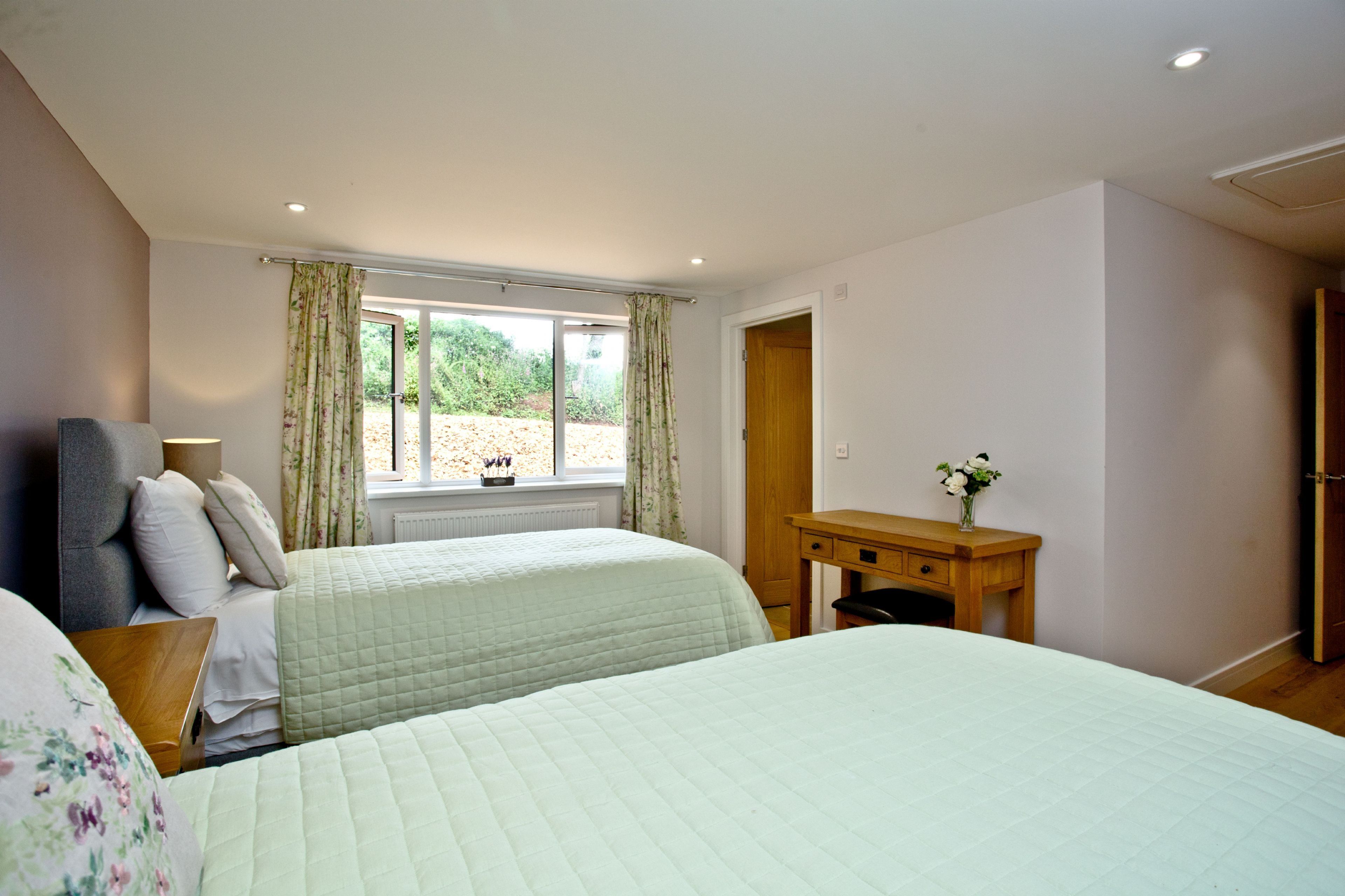Twin zip and link beds, chest of drawers and built-in wardrobe. En suite.Family Bathroom