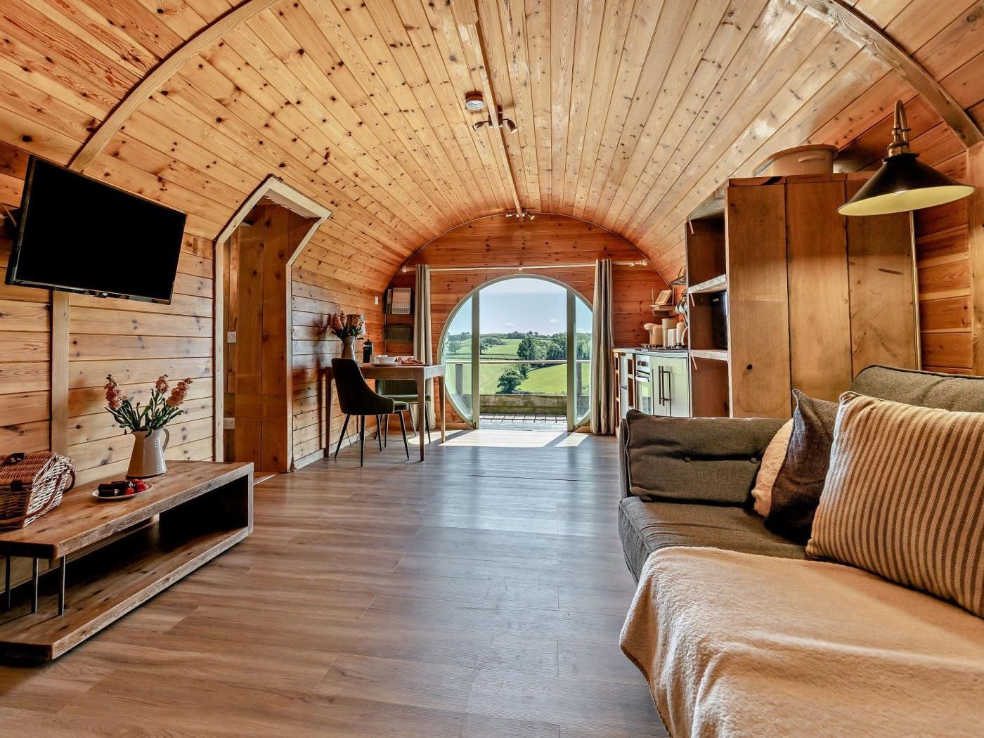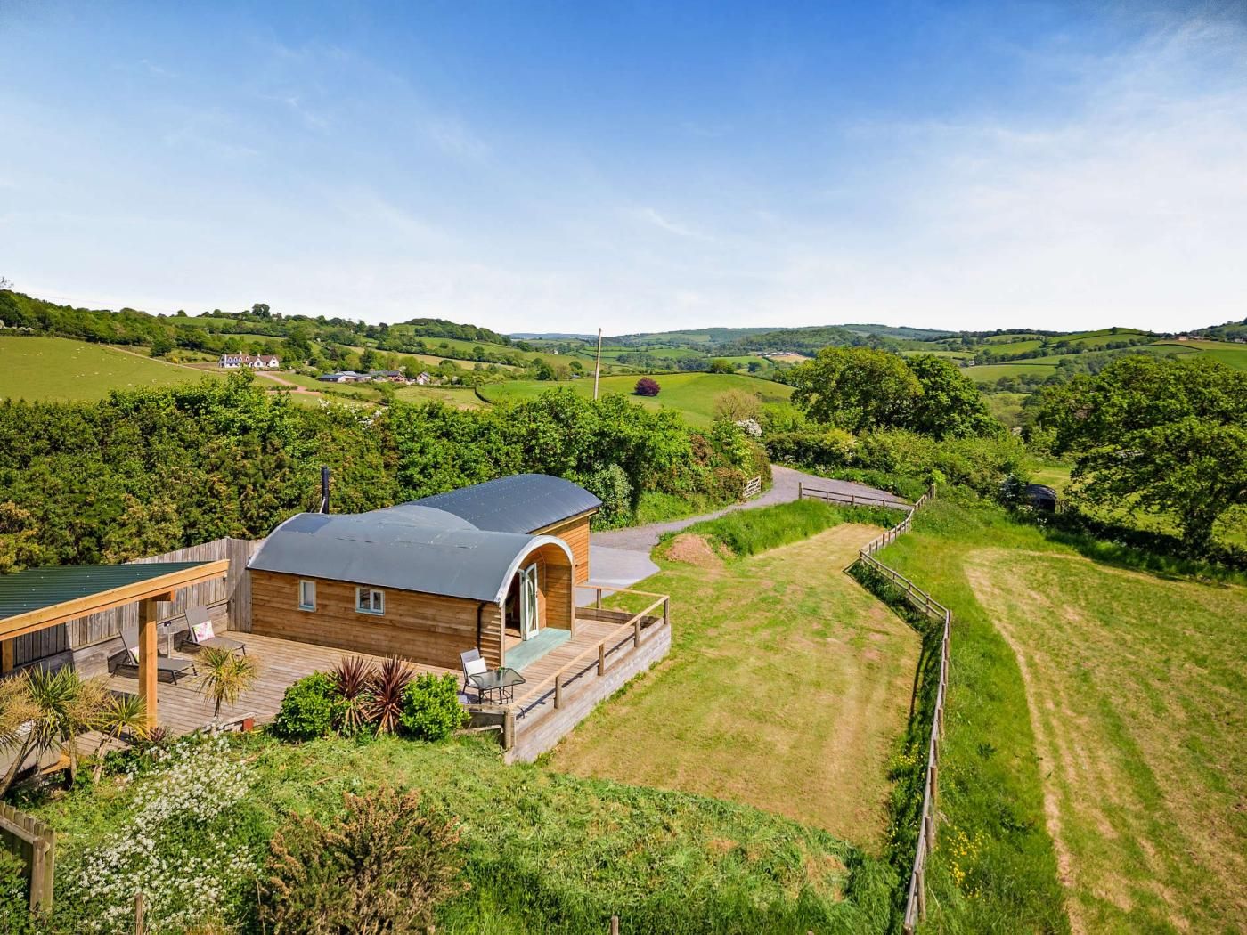 This spacious, detached pod nestles in an idyllic spot halfway down a long farm driveway, from which spectacular views can be enjoyed across the valley.
