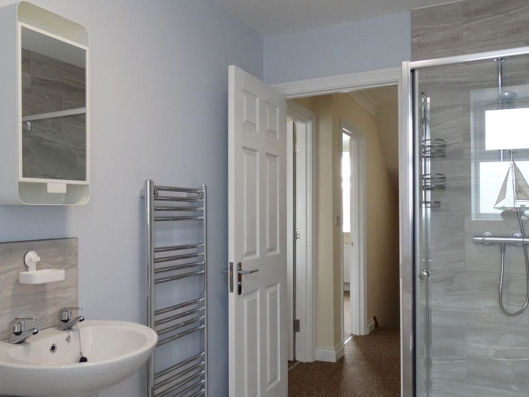 Accomodation Details Off road parking for two cars only. Over three levels. Three bedrooms. Two x first floor king size double bedrooms. Bathroom with bath, separate shower, WC, basin. Second floor double bedroom. Shower room with shower, WC, basin. Ground floor hall. Sitting room with electric fire. Kitchen with door to outdoor seating area and 2 steps up to dining area. Ground floor WC with basin.