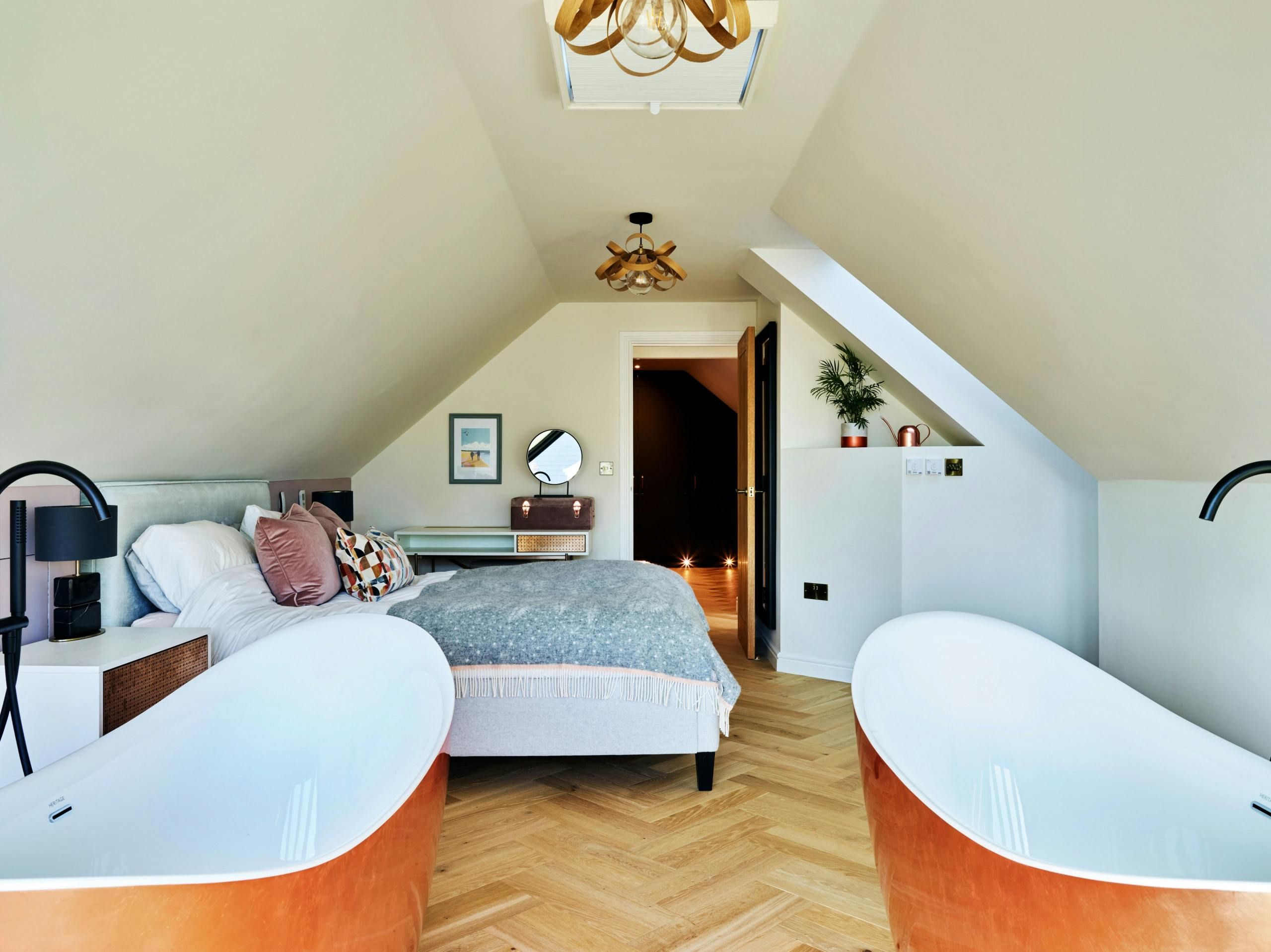 Close to the coast and sandy beaches, this home in Exmouth is an ideal starting point for a Devon escape. You'll find the town's shops, restaurants, and train station a twenty-minute walk away, so you're never too far from some fun. And there's a lot to love about the home besides the location. The standout is the main suite, where two copper baths are perfectly positioned to soak up the views. A small library, snug, and separate office give everyone space to spread out, while the boot room is perfect for pups with muddy paws. Add in the large garden, prime for sundowners, and it should tick all the boxes and then some.
