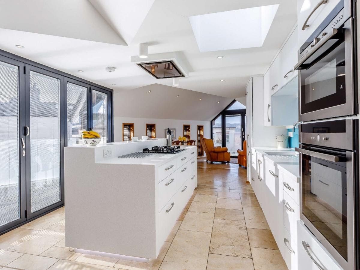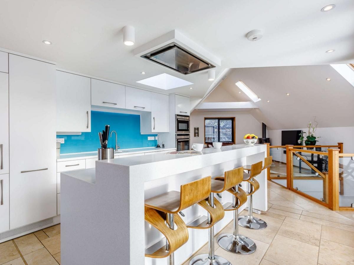 Perfect for outdoor adventurers, this house has an undercover bike store and storage space for canoes and paddleboards under the decking, and an undeniably useful utility room for wet gear. With two glass-fronted balconies, you can take in the ever-changing scenery across the water, sipping a morning coffee in the sunshine and enjoying the stunning sunsets in the evening.