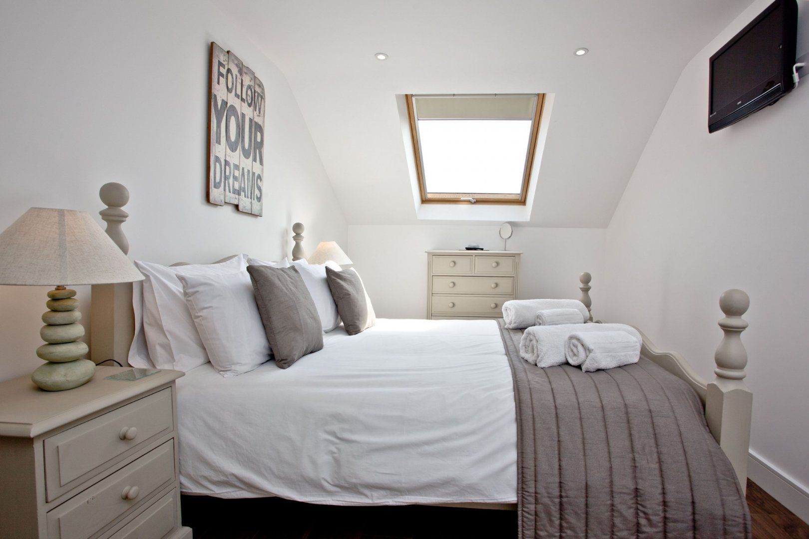 From its perch overlooking the Exe Estuary, this penthouse apartment is an intimate and stylish getaway for a family or close-knit group of friends looking to spend some time on the south east coast of Devon. The open-plan living space with its plump L-shaped couch is geared up for cosy nights together, recounting the day’s events, as the foodie member of your group puts together a sharing platter of regional cheeses in the sleek kitchen. While away sunny mornings on the balcony or grab your bucket and spade and hotfoot it down to Exmouth Beach – the gateway to the Jurassic Coast – which is situated just five minutes from your front door. Seek out sea beasties in the fascinating rock pools and hunt for fossils on clifftop walks. When the afternoon draws in, pick up a bag of vinegary fish and chips to be enjoyed on the promenade, watching the sun set over the water.