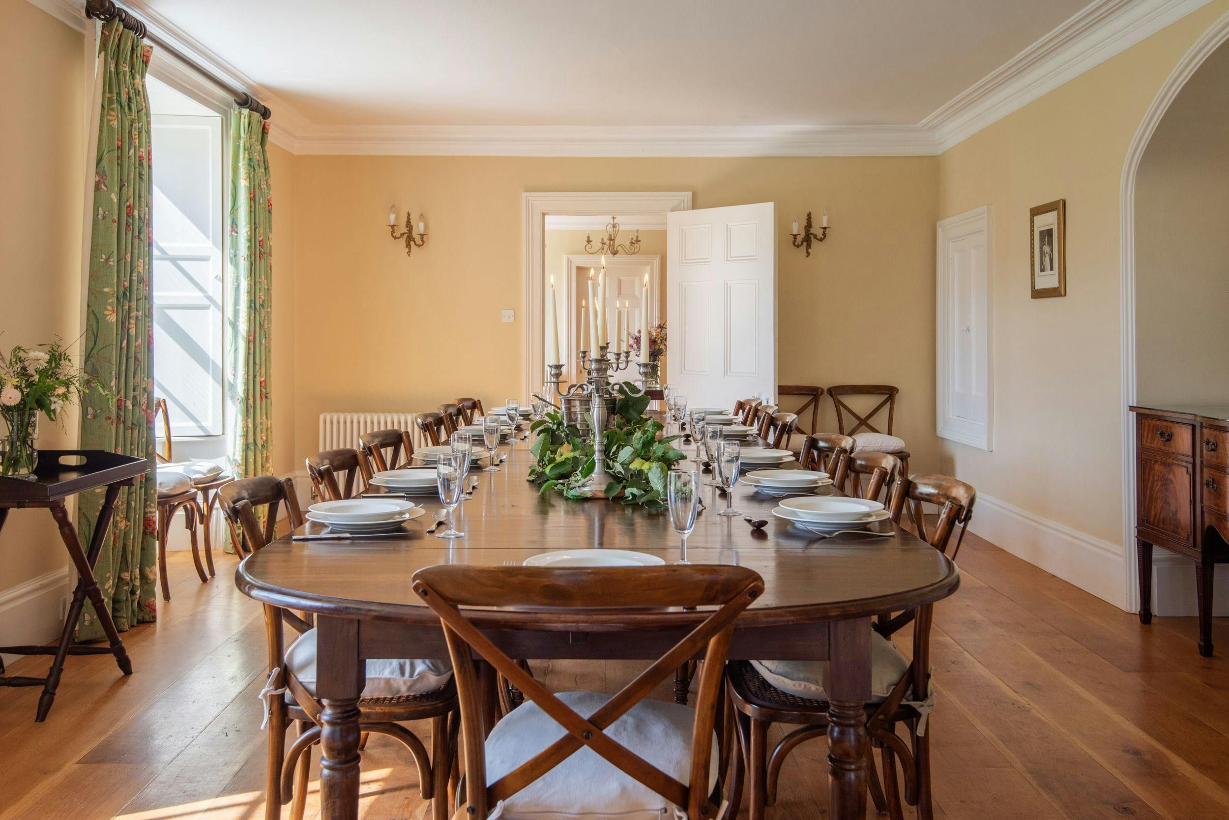 Standing on a historic estate, this Grade II-listed Georgian home is ideal for a large family gathering or friendly reunion. You'll have plenty to keep you occupied – the sprawling grounds include two acres of gardens, several terraces, access to a private beach, and a tennis court. Perfect for multiple families, the home is split between the main house and a wing with three bedrooms. That means you'll find several cosy living areas and places for dining and cooking here. Having said that, coming together as a group in the large dining room and enjoying a meal prepared by a private chef (available through your host) sounds very tempting.