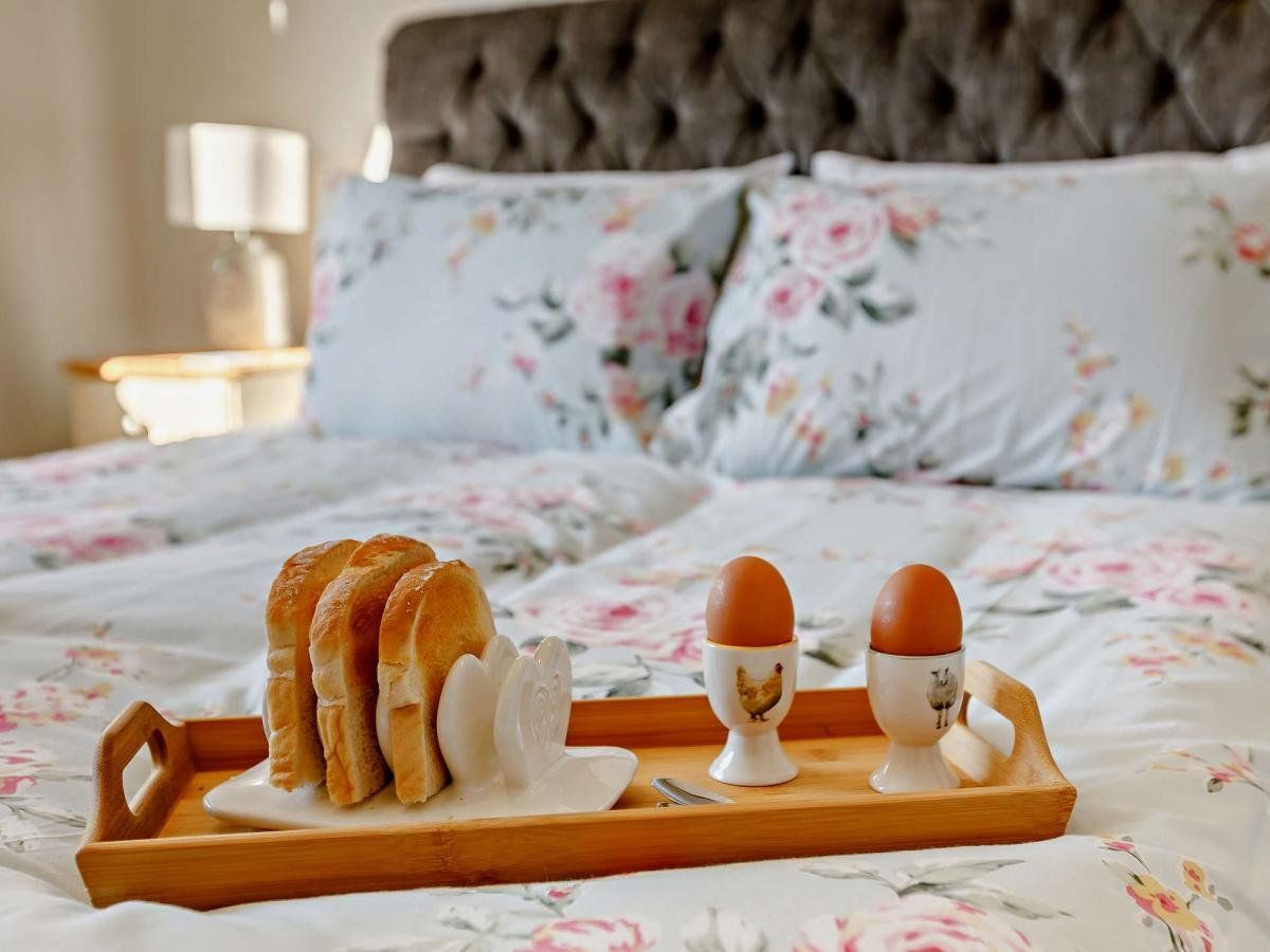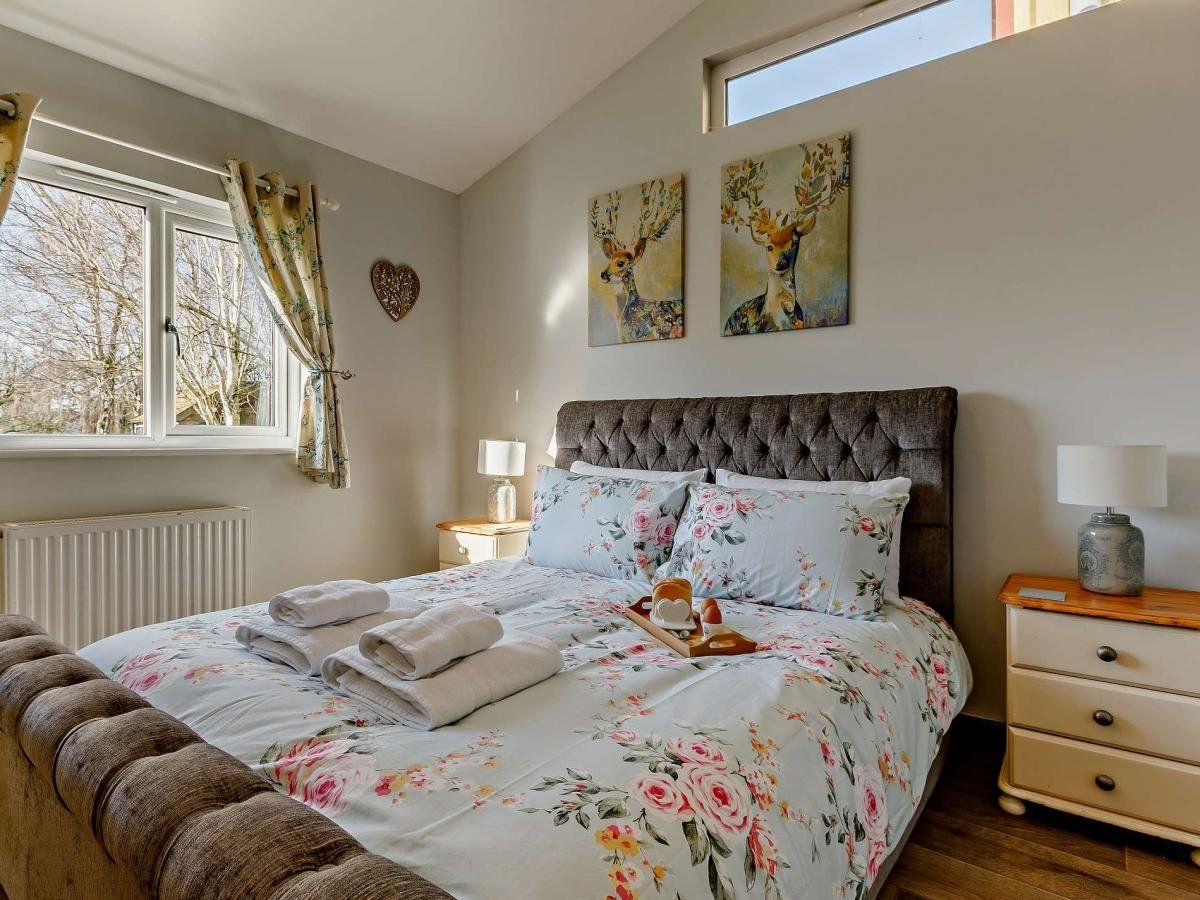 Boasting a high wood-clad ceiling, a colour palette of natural earthy tones and plenty of glorious sunlight, the open-plan living/kitchen/dining room sets a wonderfully peaceful atmosphere that reflects the tranquillity of the surrounding scenery, allowing you to experience true peace and serenity after a long day exploring the Jurassic Coast or South Devon countryside. Get creative with the local produce you’ve collected in the farmhouse-style kitchen, enjoy wonderfully green views through the large picture window seated around the rustic dining table or fire up the wood burner to soothe weary walking muscles as you unwind on the comfy leather sofa.