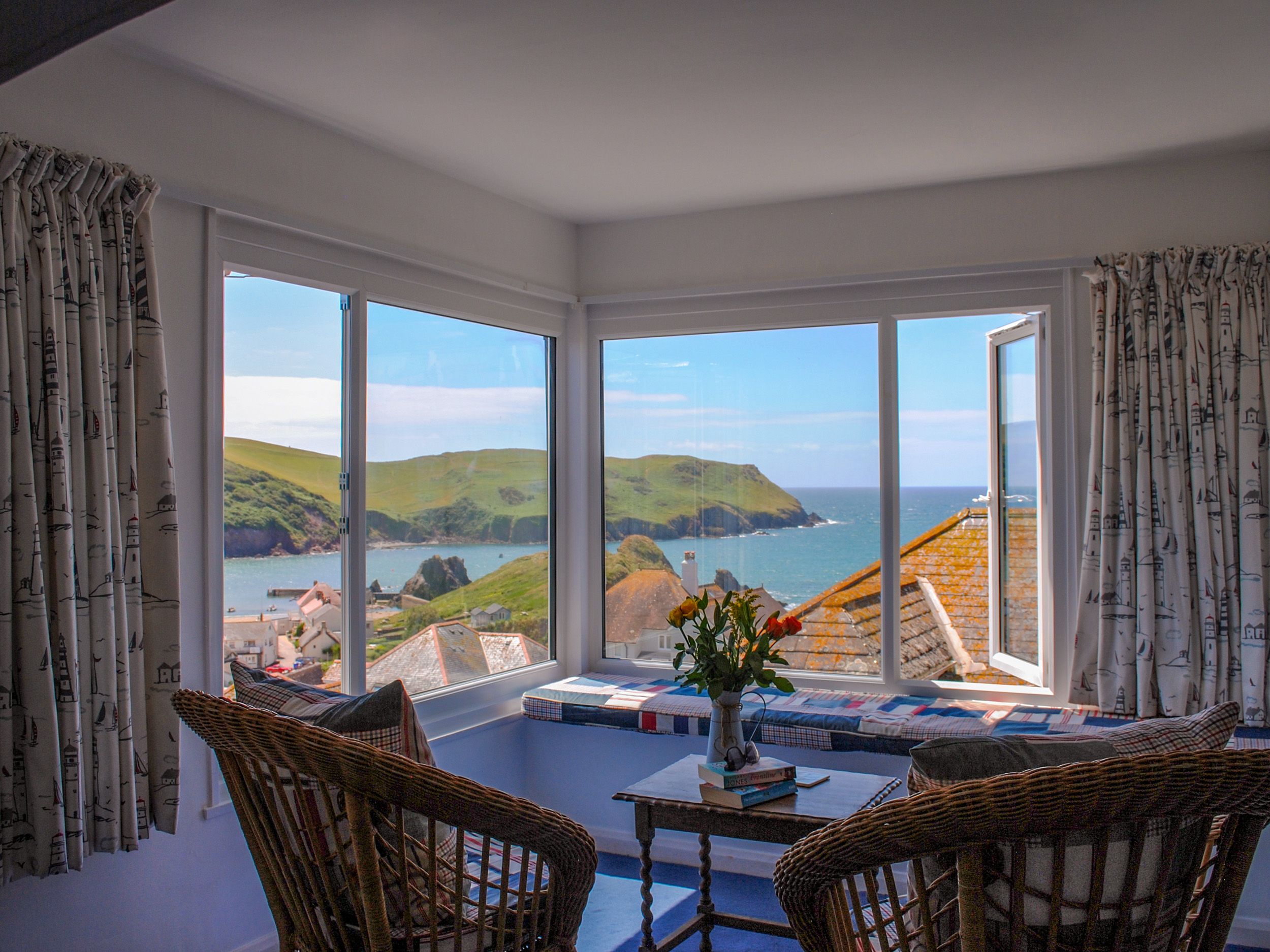 Accomodation Details Four bedrooms: 1 x king-size, 1 x twin, 1 x ground-floor single with trundle and 1 x bunk. Bathroom with bath, shower over, basin, heated towel rail and WC. Ground-floor bathroom with bath, shower over, basin and WC. Kitchen. Utility. Dining room. Sitting room. Second-floor sitting room