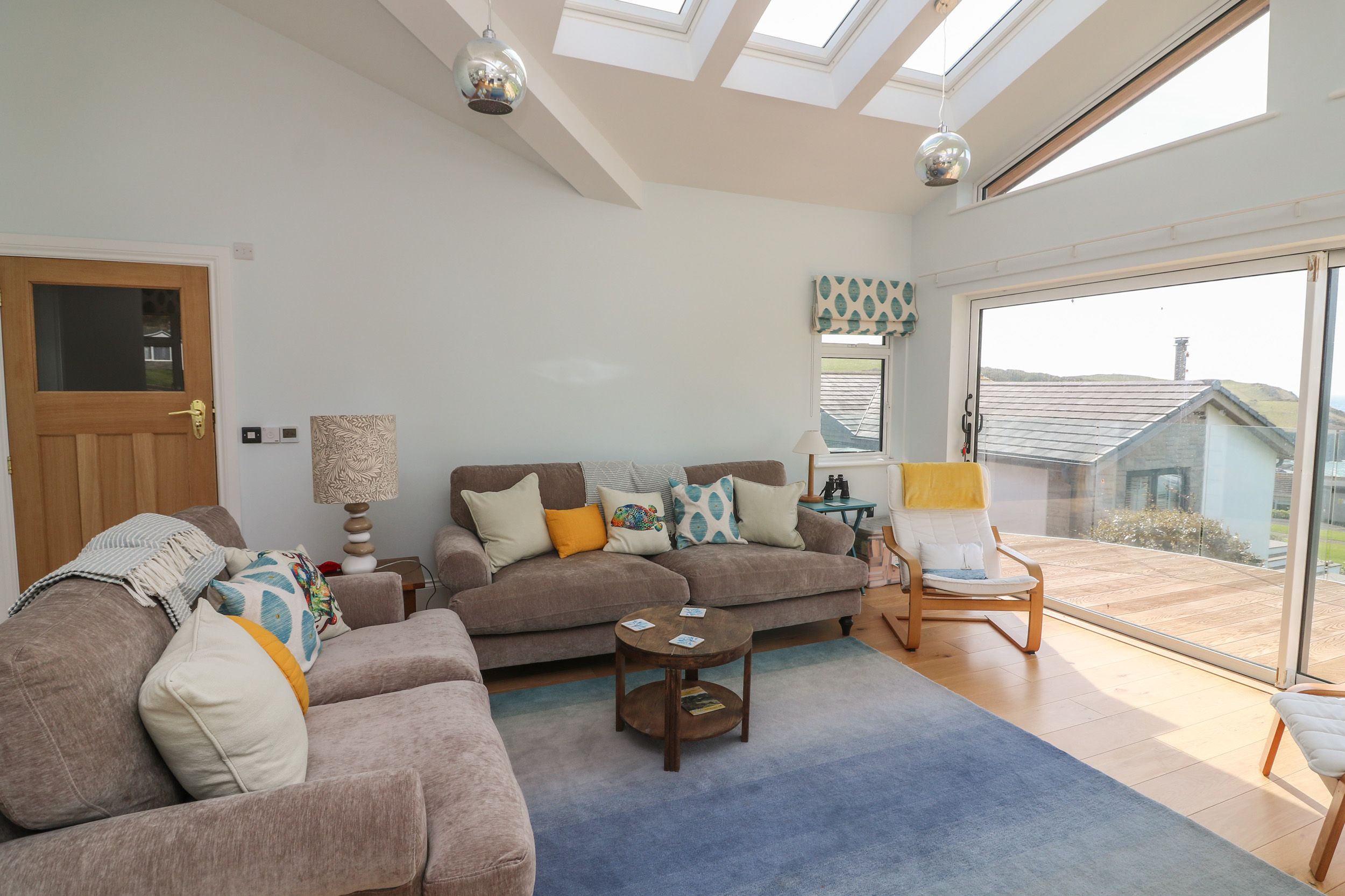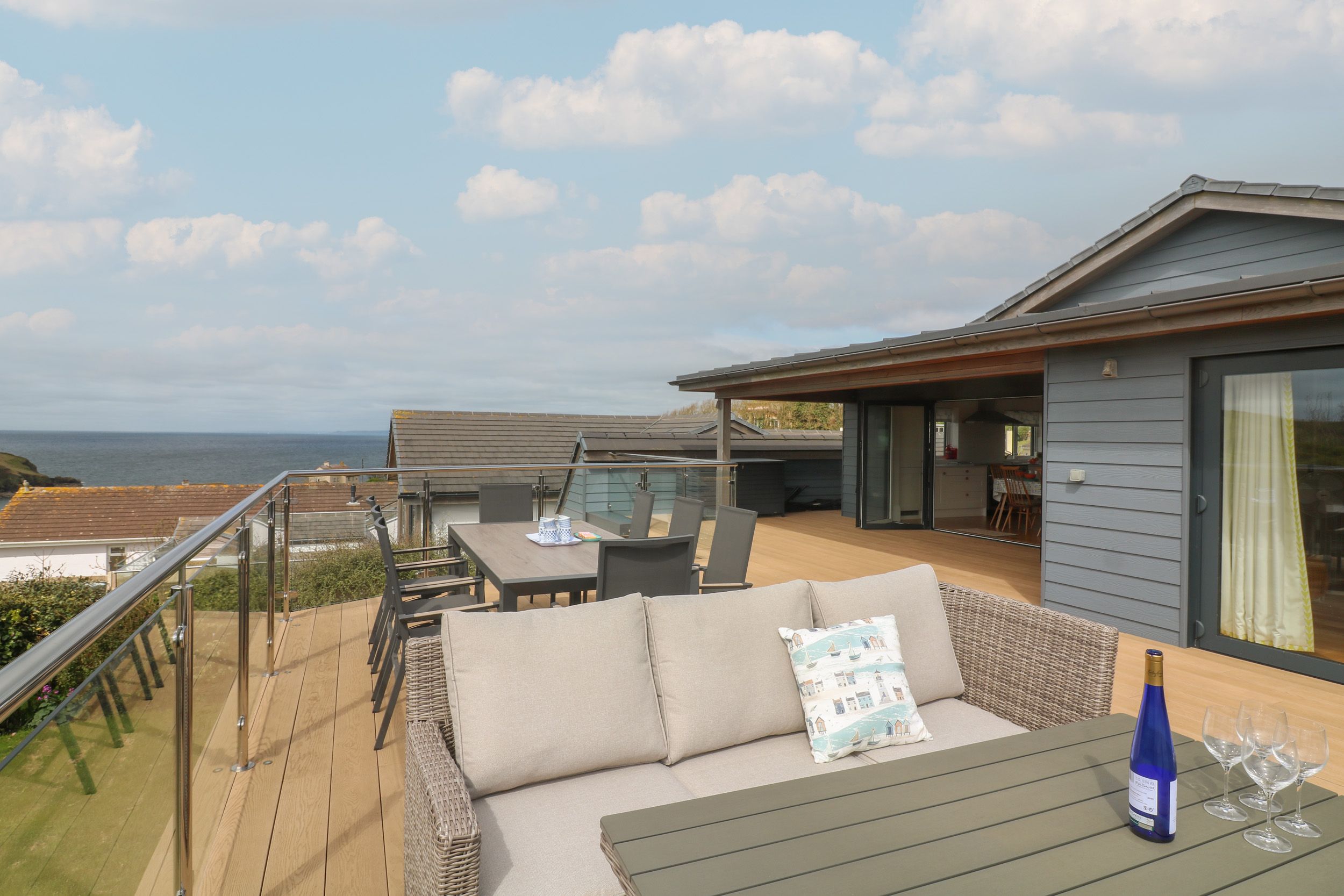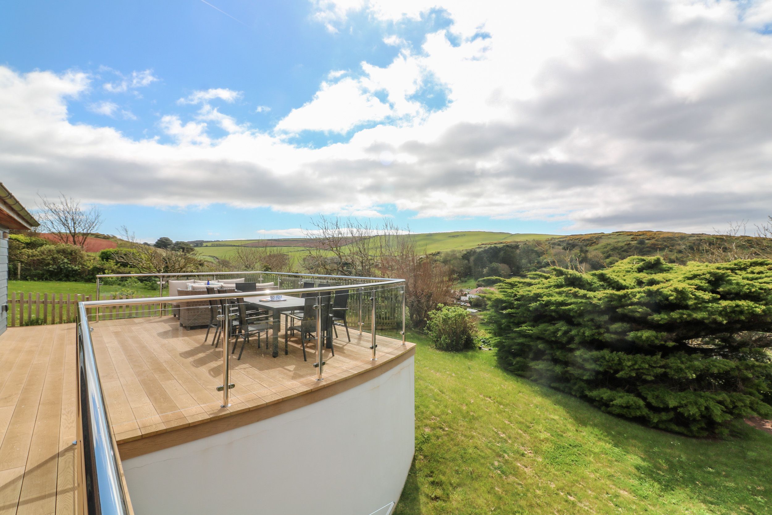 Amenities Central heating with underfloor heating throughout. WiFi throughout. Separate games room with table tennis ( Bring your own balls). Fuel and power inc. in rent. All duvets, pillows, bed linen and towels are provided( Bring your own beach towels). Highchair/travel cot available. Ample off-road parking, sufficient for three cars and small boat. EV charging available. Wraparound terrace with decking, furniture, lawn, barbecue, table tennis, with countryside and sea views. Sorry, no pets and strictly no smoking. Shop and pub 0.3 miles, beach 0.4 miles. Note: This property is suitable for wheelchair access and for disabled persons as all access and thresholds are level throughout, Access to a hoist is available on request.