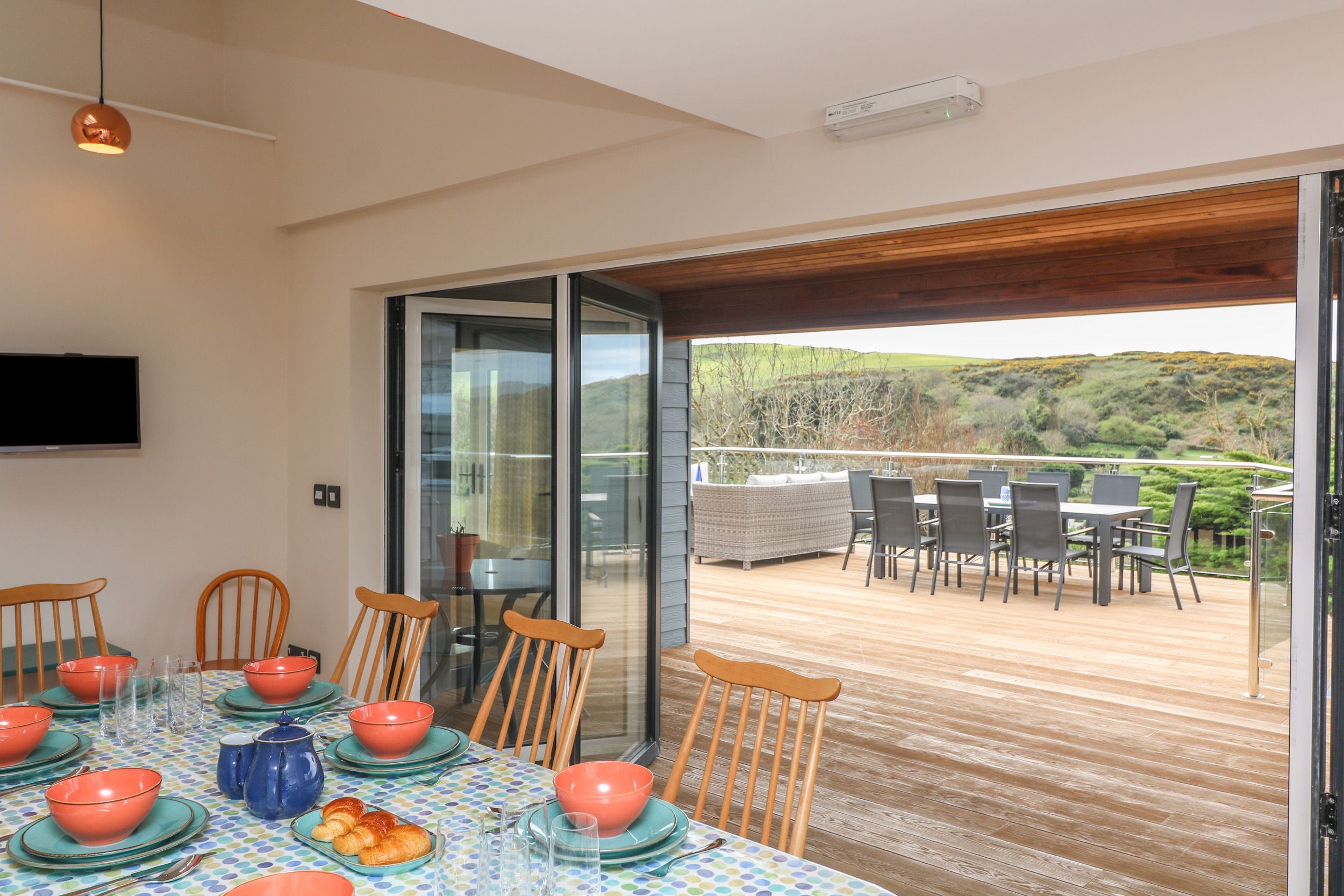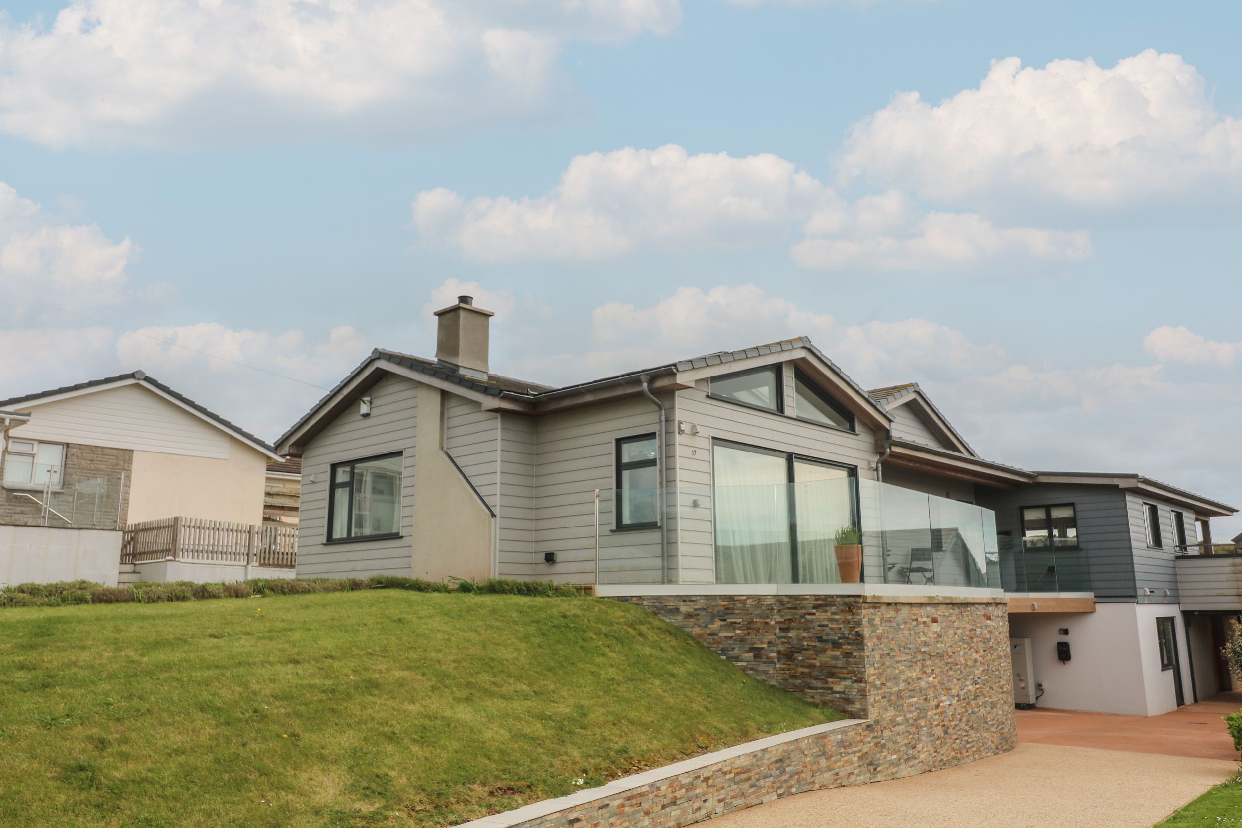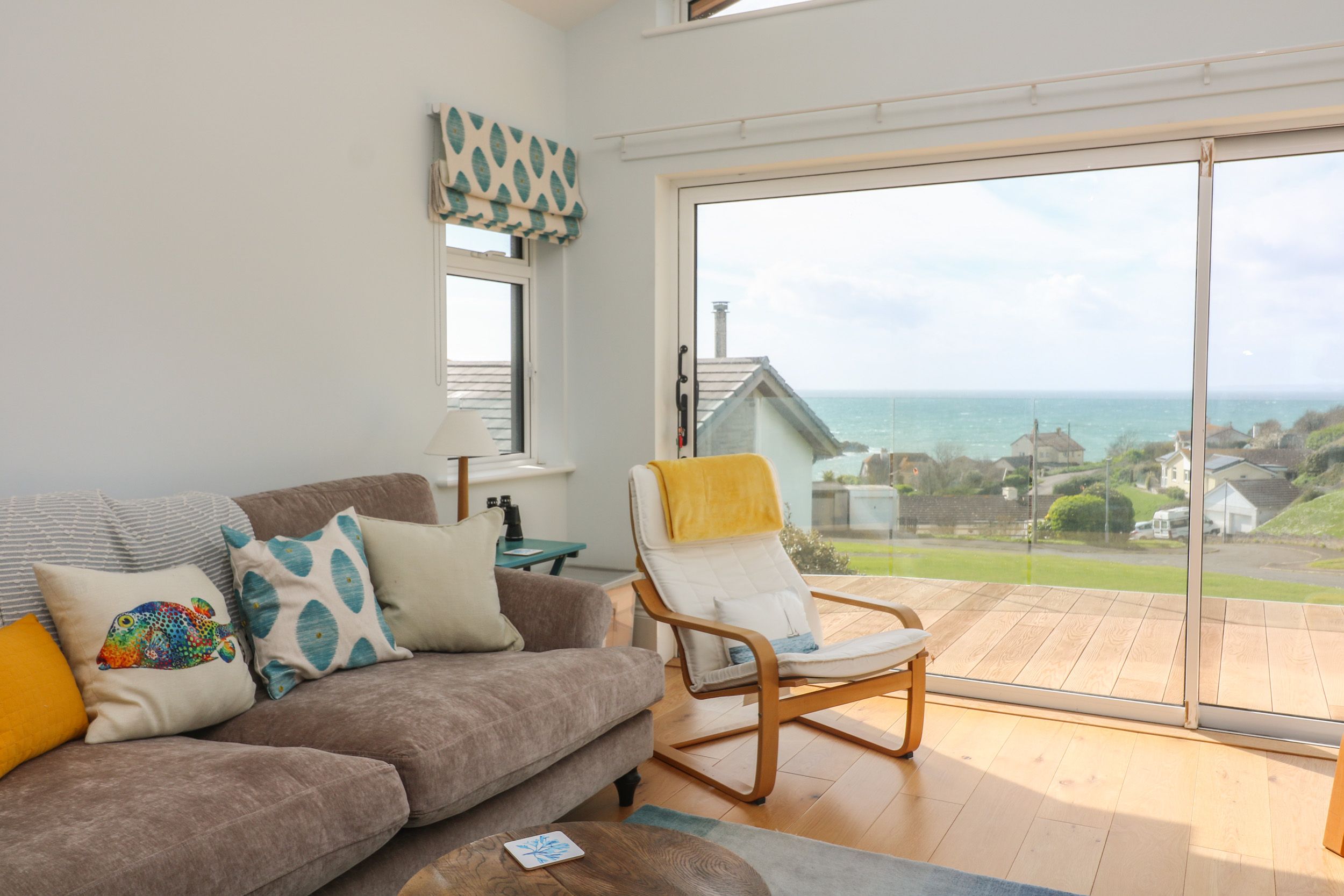 Amenities Central heating with underfloor heating throughout. WiFi throughout. Separate games room with table tennis ( Bring your own balls). Fuel and power inc. in rent. All duvets, pillows, bed linen and towels are provided( Bring your own beach towels). Highchair/travel cot available. Ample off-road parking, sufficient for three cars and small boat. EV charging available. Wraparound terrace with decking, furniture, lawn, barbecue, table tennis, with countryside and sea views. Sorry, no pets and strictly no smoking. Shop and pub 0.3 miles, beach 0.4 miles. Note: This property is suitable for wheelchair access and for disabled persons as all access and thresholds are level throughout, Access to a hoist is available on request.