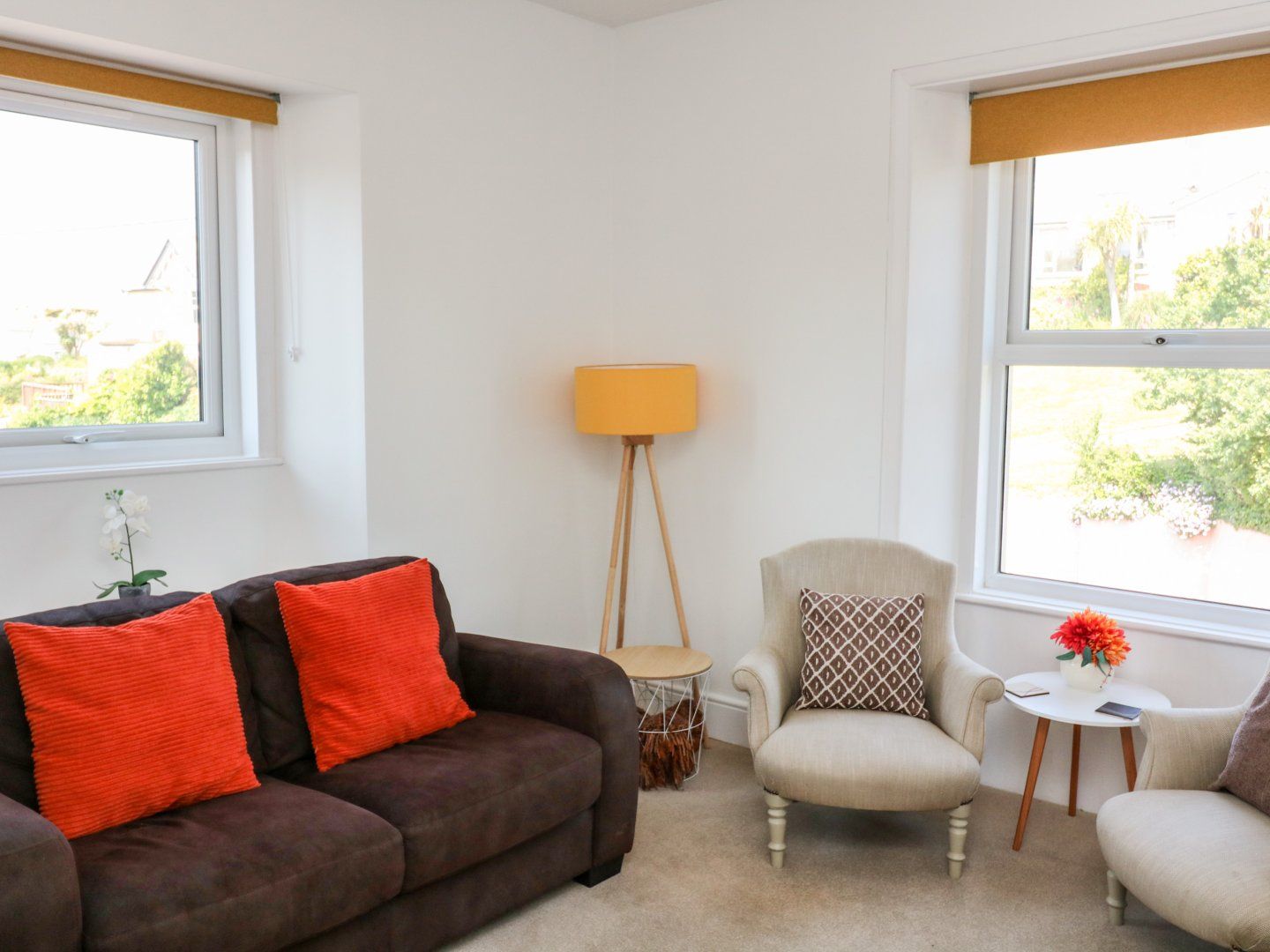 Holiday home The living areas of this first-floor apartment include a kitchen/diner with electric oven and hob, microwave, fridge/freezer, dining seating for six and a sitting room with electric fire stove and Smart TV. The bedrooms consist of a king-size with TV and basin, a king-size with basin and two singles, along with a shower room with walk-in shower, basin and WC. Outside there is a communal lawn and sitting area, communal laundry and off-road parking in car park for one car. Within 0.3 miles you will find a shop, a pub and a beach and please note this is a smoke-free property. Fuel, power, bed linen, towels and WiFi included in the rent. Escape to the beautiful coast of Devon with a stay at Thornlea View. Note: Guests have use of a communal laundry. Note: Steps throughout property