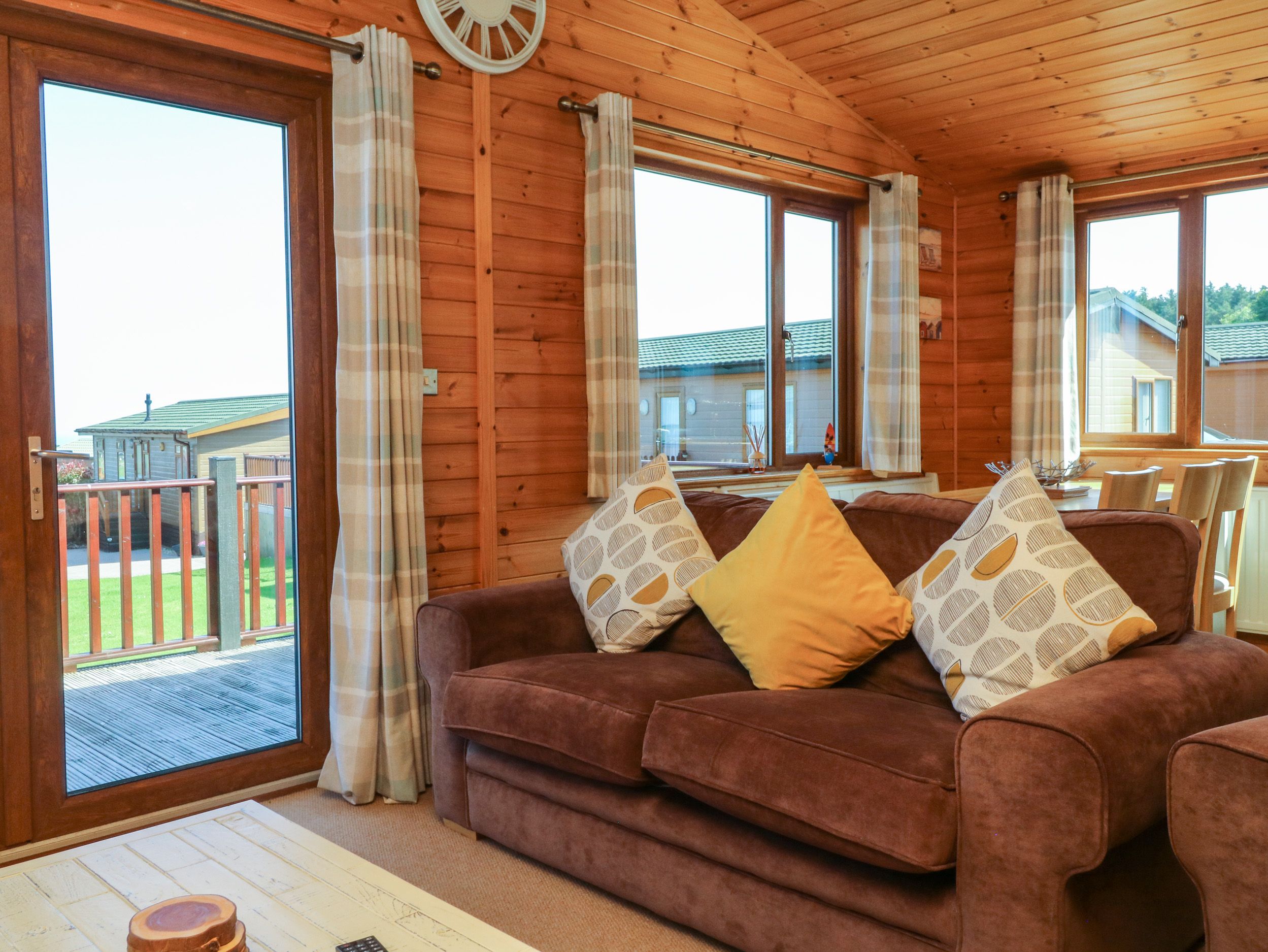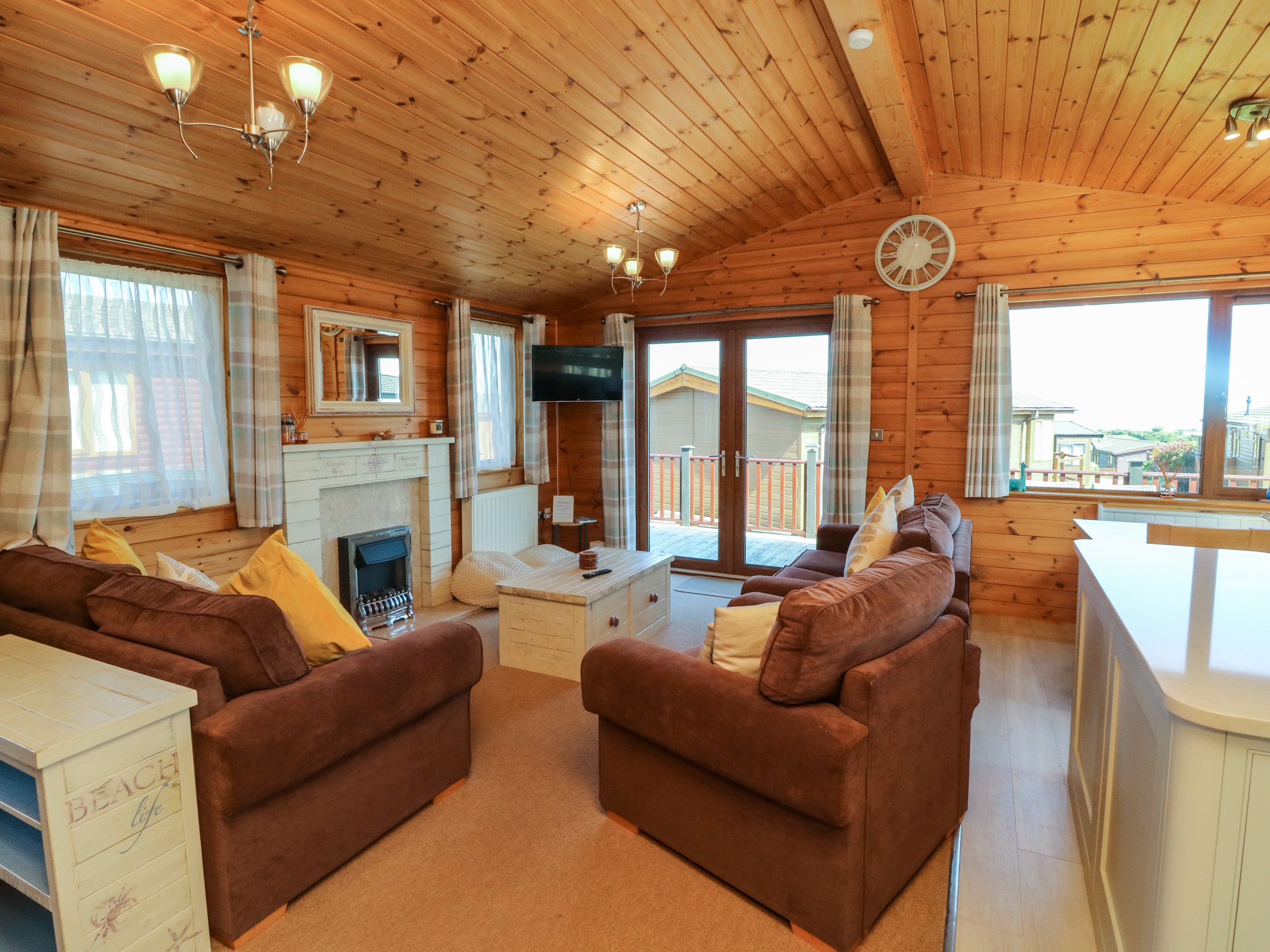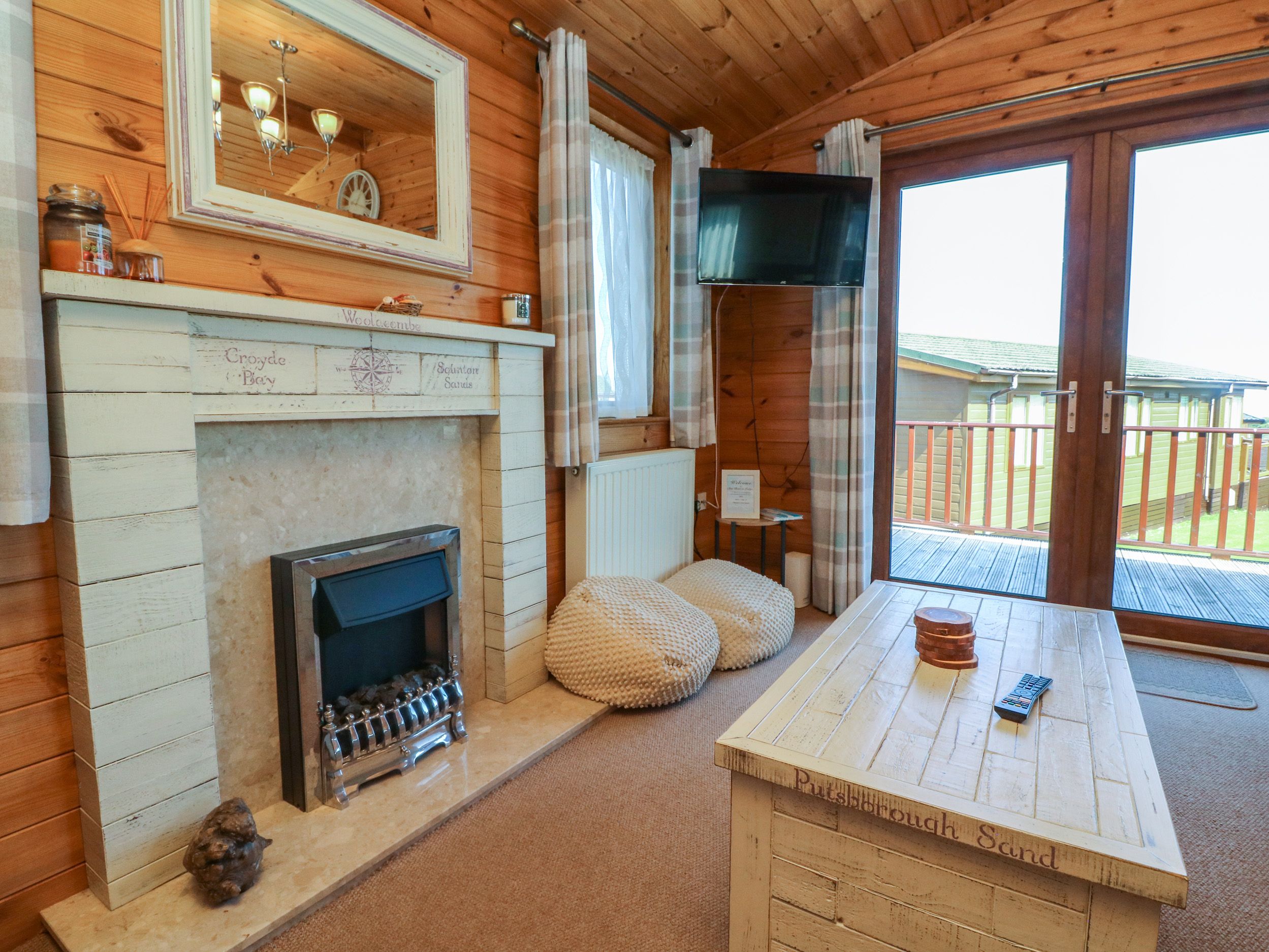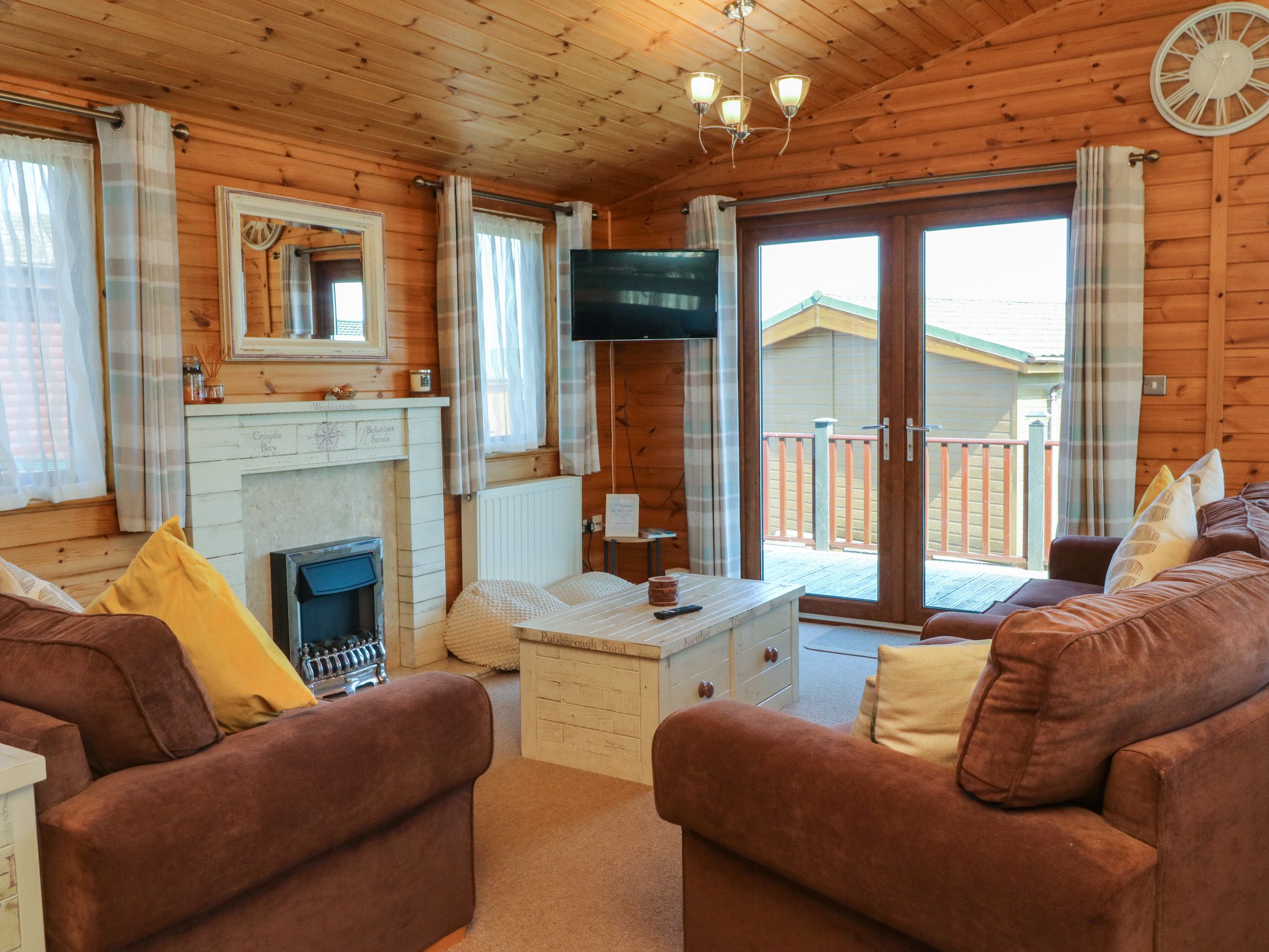 Holiday home The living areas in the property consist of an open-plan living space with kitchen equipped with electric oven and hob, microwave, fridge with freezer compartment, washing machine, slimline dishwasher and coffee machine, a dining area with seating for six and a sitting area with Smart TV and coal fire. The bedrooms consist of a double with TV and en-suite shower room and two twins, one with a TV, along with a bathroom. Outside there is a private wraparound decking with furniture, as well as off-road parking for one car. Within 2.1 miles you will find a shop and within 0.1 miles, a pub and please note that this is a pet-free and non-smoking property. WiFi, fuel, power, bed linen and towels are all included in the price. Meadow View 27 is a lovely base from which to explore all that Devon has to offer. Note: No stag, hen, or similar parties.