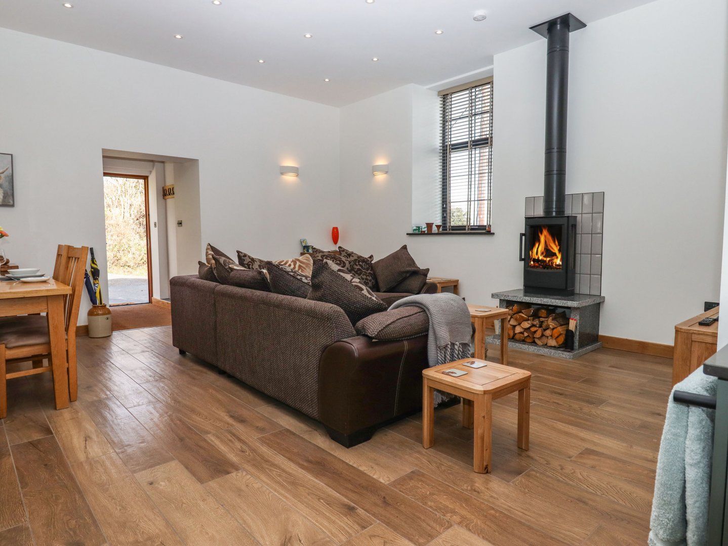 Accomodation Details Single-storey. One king-size bedroom with en-suite walk-in shower, double basin and WC. Open-plan living space with kitchen, dining and sitting area with woodburning stove