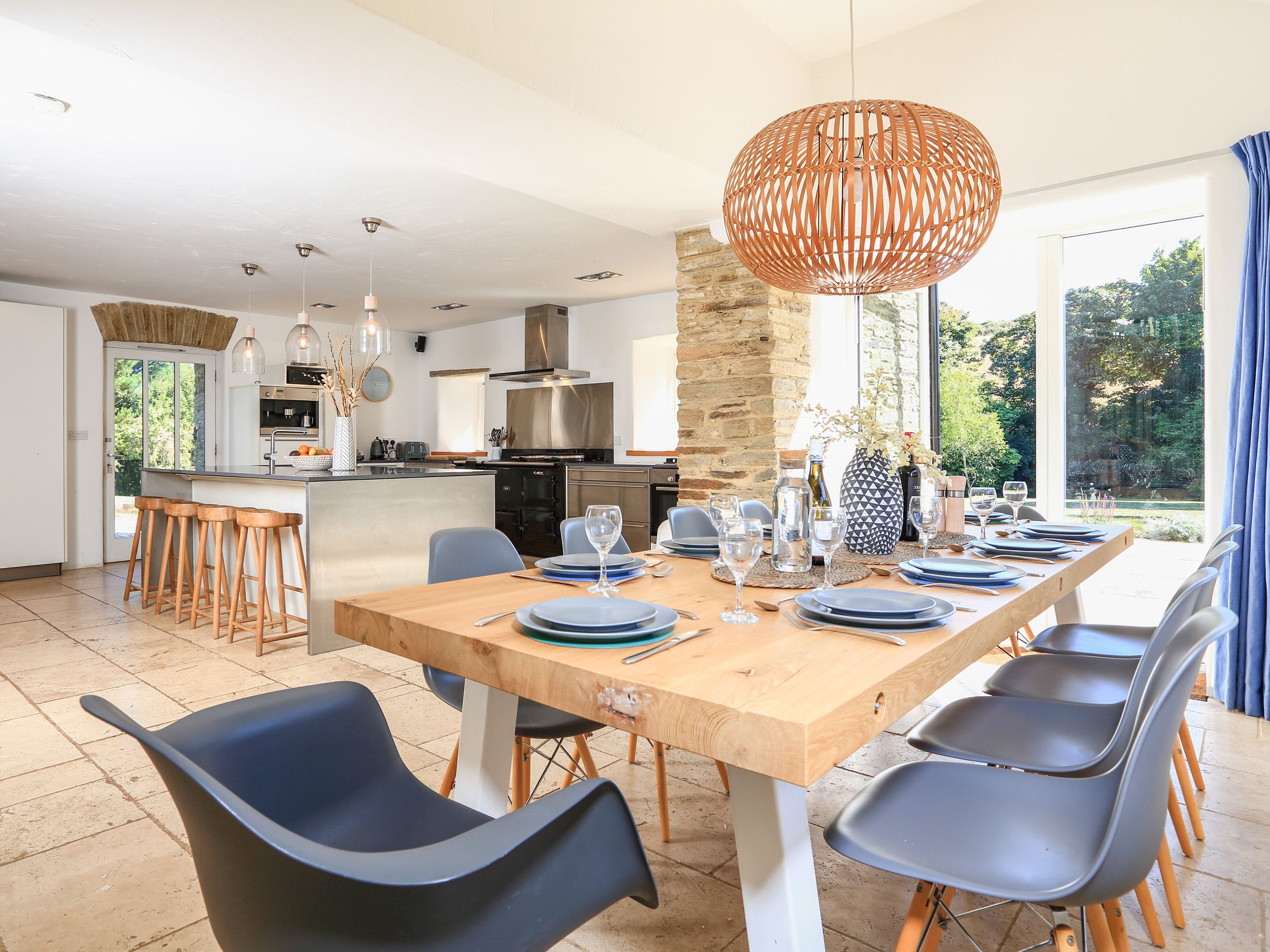 Amenities Underfloor heating with wood-burning stoves. Gas AGA range cooker, electric oven, gas hob, integrated microwave, larder fridge and freezer, wine cooler, 'Sage Creatista Plus' coffee machine, dishwasher, washing machine, tumble dryer, Smart TV, Blu-ray player. Fuel, power and Wi-Fi inc. in rent. Bed linen and towels inc. in rent. Ample off-road parking. Two medium well behaved dogs welcome (In the main house only). Strictly No Smoking. Shop 1 miles, pub 0.5 miles. Note: The games room comes with table tennis, a pool table and football table, boules for Petanque (not to be taken on the beach) Note: There is an unfenced brook at the back of the garden, children to be supervised. Unfortunately the property does not supply a barbecue.