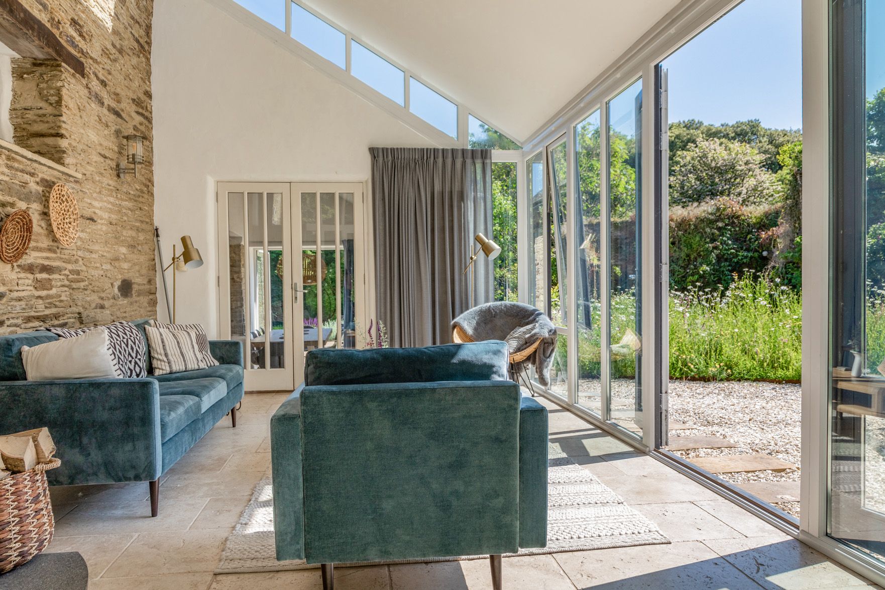 Accomodation Details Main House Five bedrooms: 1 x king-size double with en-suite walk-in shower, two wash hand basins and WC, 1 x king-size double with en-suite shower, basin and WC, 1 x king-size double, 1 x family room with two sets of children's bunks, 1 x ground floor king-size double. Bathroom with Jacuzzi bath, shower over, basin and WC, ground floor cloakroom. Kitchen/diner with breakfast bar, Bluetooth sound system and large wooden dining table. Sage Creatista Plus coffee machine which takes Nespresso Capsules. Utility. Sitting room with surround sound system and woodburning stove. Garden room with woodburning stove. Games room. Petanque Court (boules in the game room). External hot shower for washing wet suits and beach kit. There is a cot and high chair at the property.
