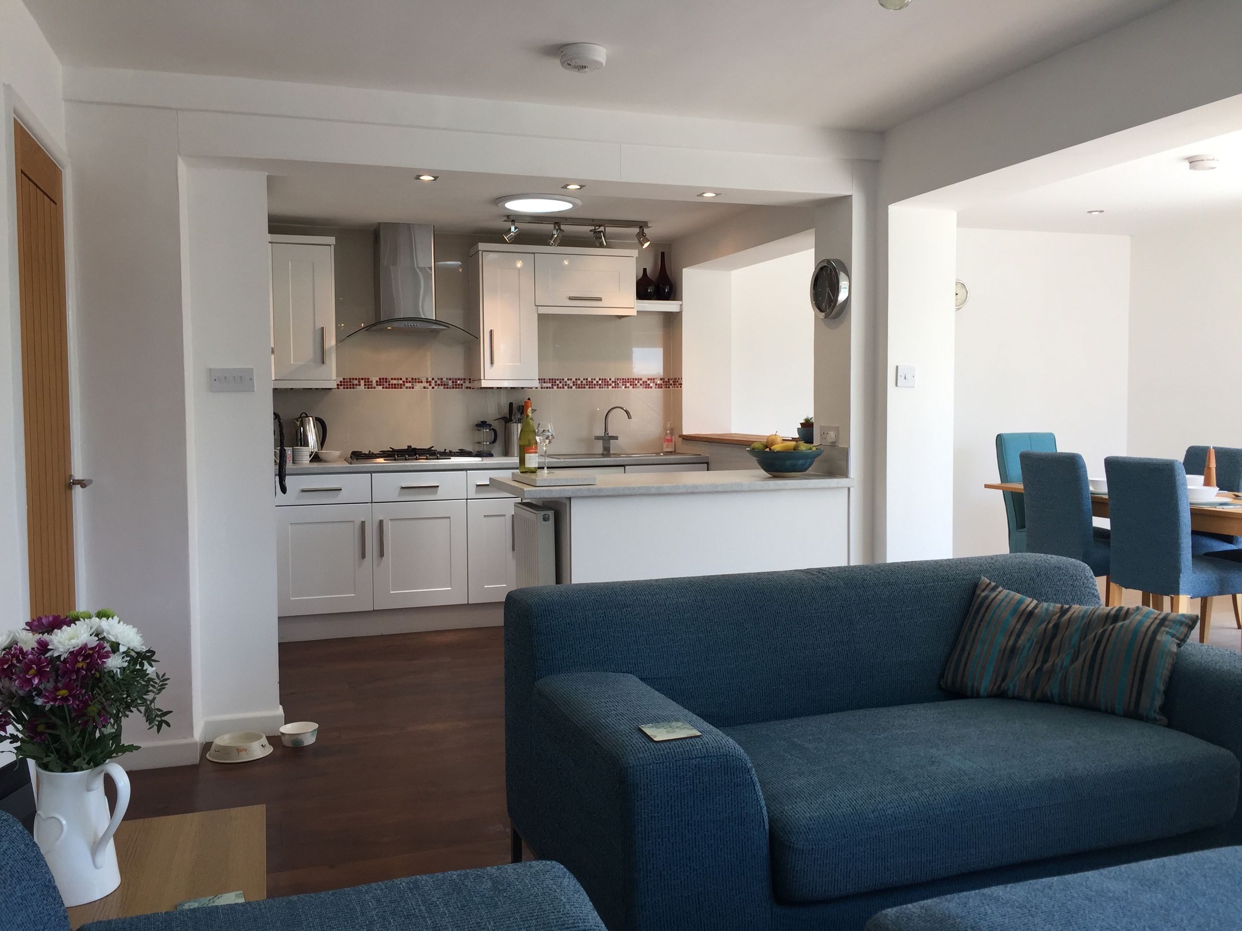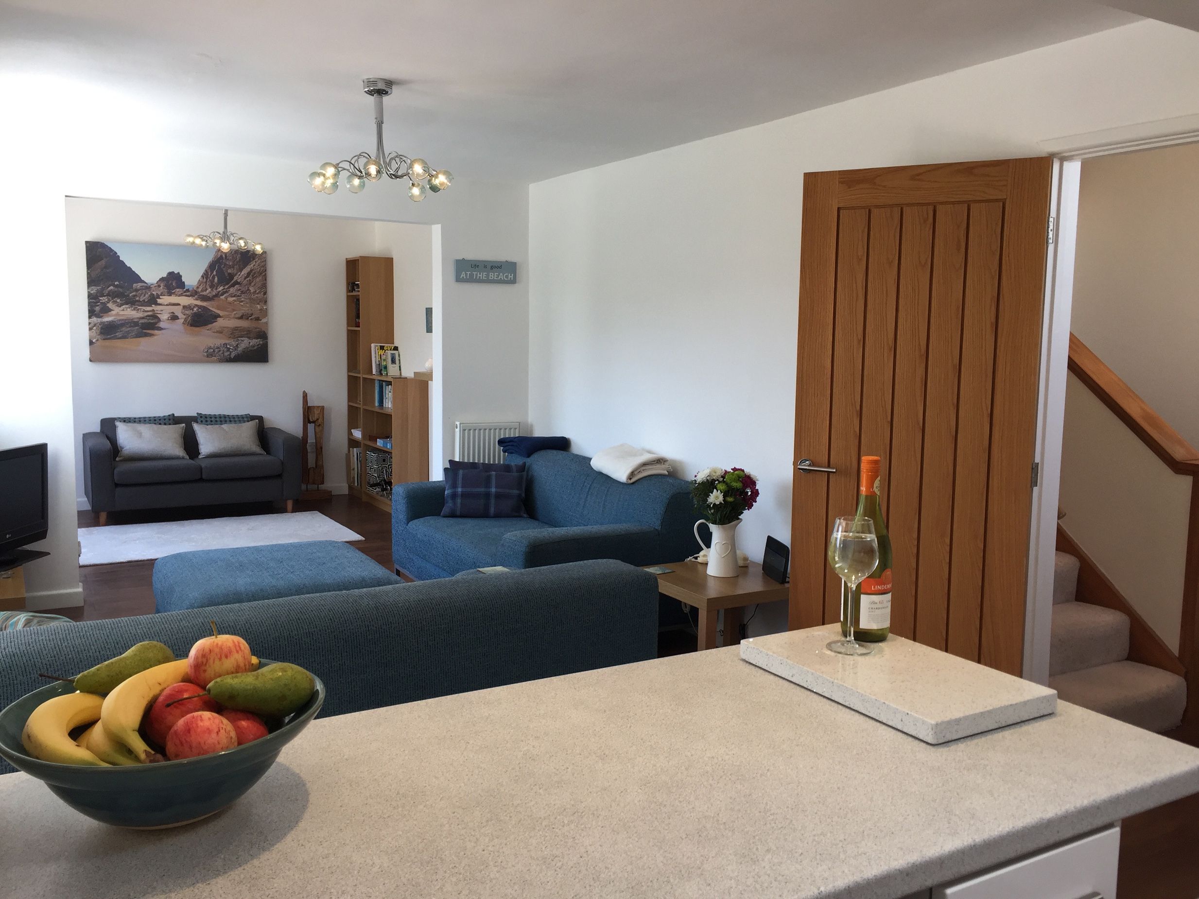 Accomodation Details Reverse-level. Three bedrooms: 1 x ground-floor king-size with Smart TV, 1 x second-floor king-size with balcony and TV, 1 x second-floor twin with TV. Second-floor bathroom with bath, shower over, basin, and WC. Ground-floor shower room with walk-in shower, basin, heated towel rail, WC, and washing machine. First-floor open-plan living space with kitchen, dining area, and sitting area