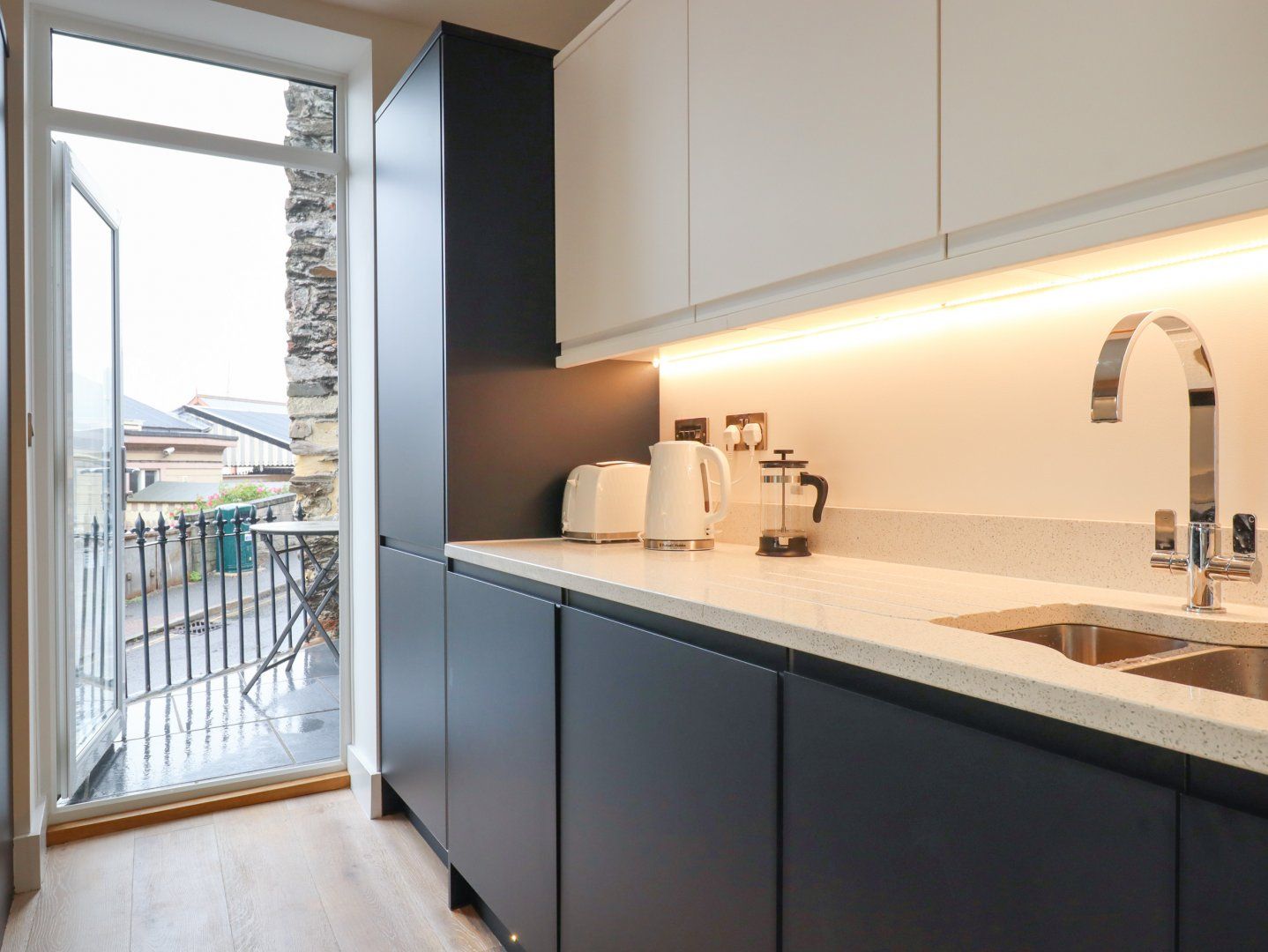 Accomodation Details Duplex apartment. Two bedrooms: 1 x king-size with TV and en-suite shower, basin, heated towel rail and WC, 1 x ground-floor king-size with TV. Ground-floor bathroom with bath, shower over, basin and WC. First-floor open-plan living space with kitchen, dining and sitting area. Utility