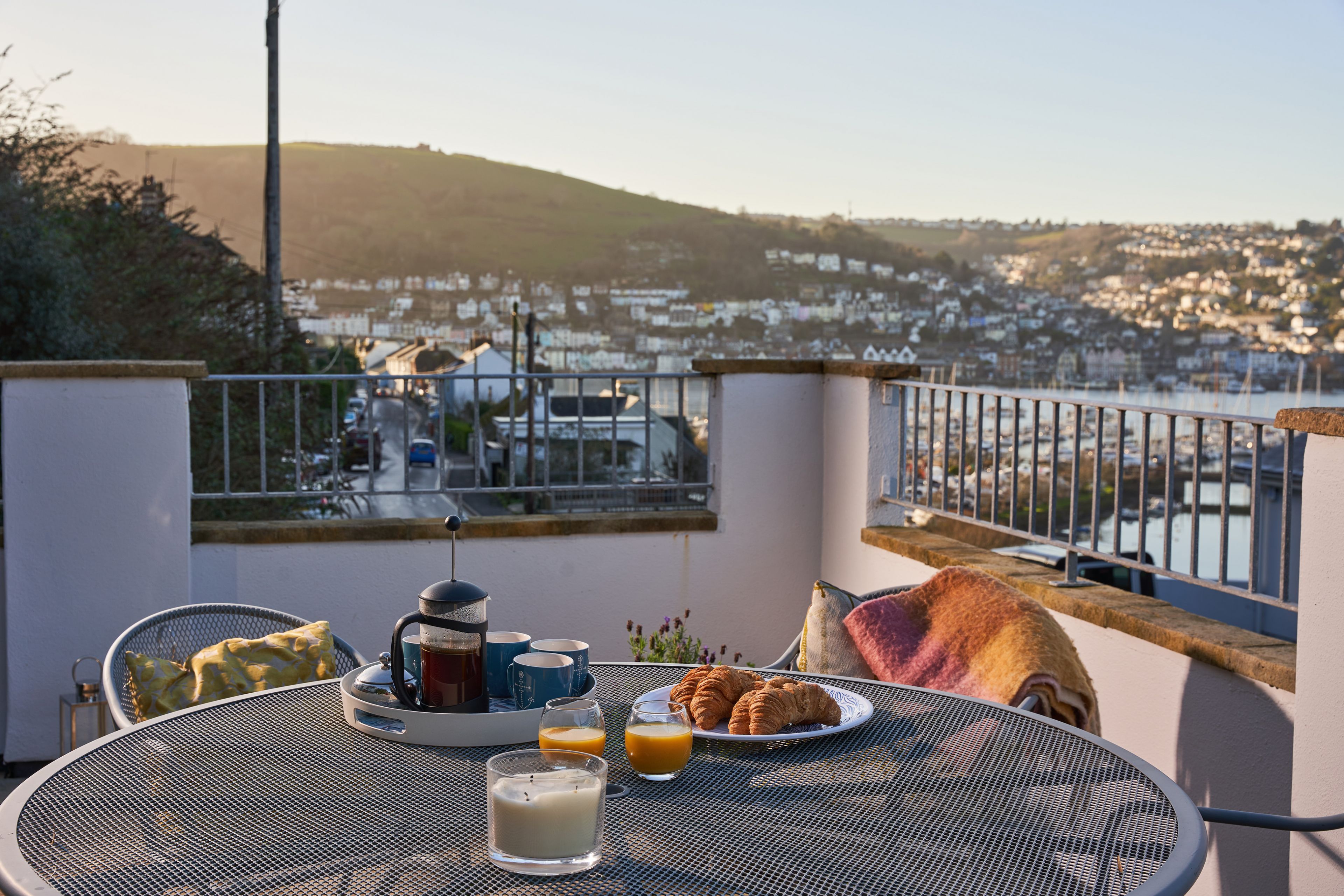 For the best views of all, however, step out onto the private terrace where an outdoor table beckons sunny alfresco breakfasts and evening drinks on the sofa as the sun sets over the river.