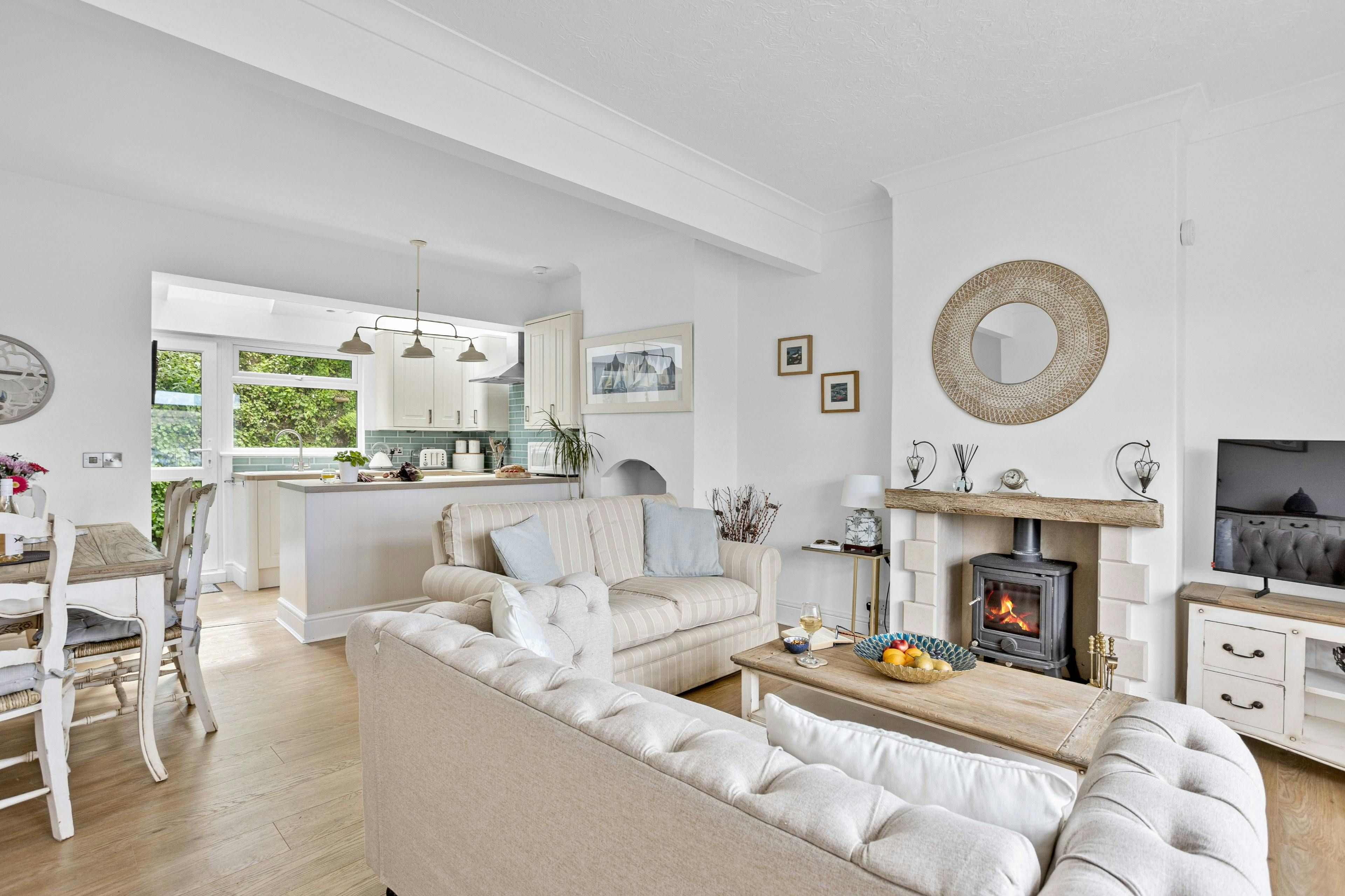 Nestled in the village of Kingswear with stunning views across the River Dart, this home is ideal for any family or group of friends looking for a getaway on the South Devon coast. The decked terrace is the ideal spot to enjoy alfresco breakfasts while watching the boats drift by. But should the weather take a turn, make a beeline for the cosy living space and hunker down in front of the woodburning stove. As for the location, you’re a five-minute walk from pubs and the ferry to Dartmouth. And if a beach day is on the cards, it’s only a fifteen-minute drive to Man Sands.