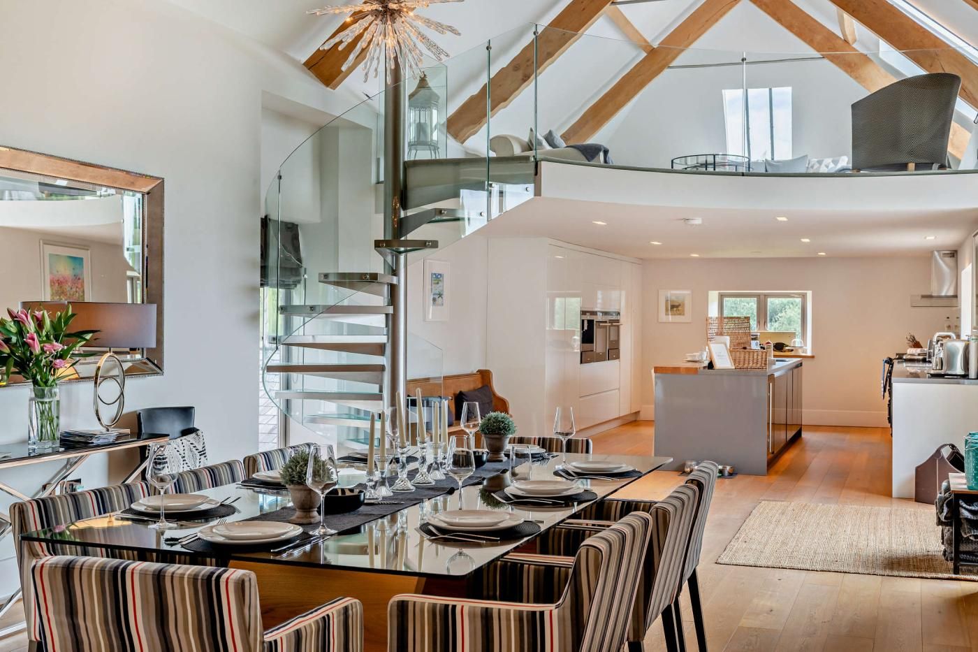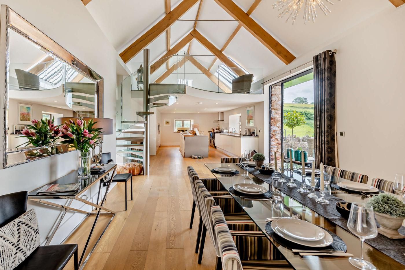 Located in the tranquil area of the Longcombe Valley, this gorgeous reverse-level barn conversion set within 20 acres of private land is an excellent base for a getaway with family or friends.