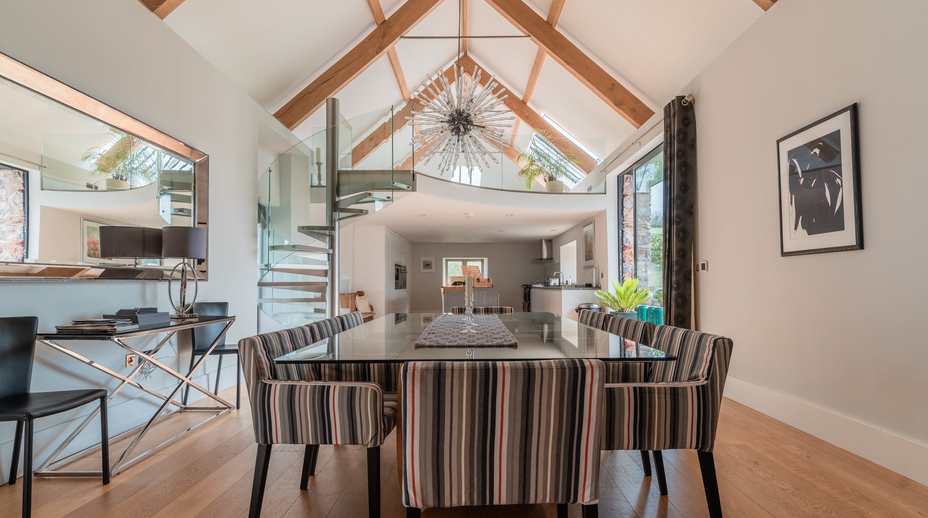 This is a barn conversion in which the standard of the renovation has been of such quality that it's nigh-on impossible to picture its functional past. Set in twenty-six acres of Devon countryside, the building has been given some hi-tech features, including a ground-source heating system and an intelligent lighting system, as well as a lot of large glass windows that make the space a lot brighter than could be expected of an old barn. Our favourite space has to be the mezzanine lounge, reached via a glass spiral staircase and with a skylight on one side that's perfect for stargazing. The large kitchen looks the picture of modernity, but there's an Aga in place for a touch of rusticness. Stepping outside, there's a large patio area complete with an alfresco dining table, barbecue and fire pit, so you can sit out here on summer evenings and bask in the spectacular view of Longcombe Valley. The medieval town of Totnes can be reached in seven minutes in the car and offers plenty of quaint shops and restaurants to explore. Paignton Beach is a seventeen-minute drive away, too.