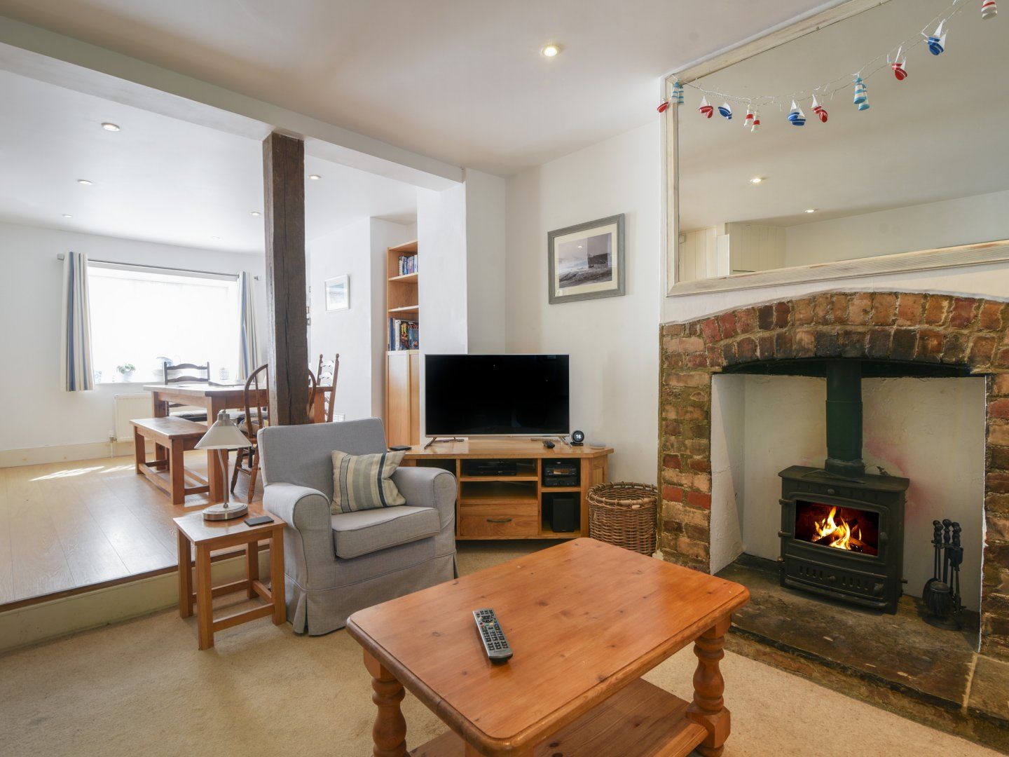 Amenities Gas central heating with woodburning stove. Electric oven and hob, microwave, fridge, freezer, washing machine, tumble dryer, dishwasher. TV, DVD player, CD player, iPod dock, radio, WiFi, travel cot, highchair, stairgates. Fuel and power inc. in rent. Bed linen and towels inc. in rent. Enclosed rear garden with decking and furniture. Two well-behaved dogs welcome. Sorry, no smoking. Shop 0.2 miles, pub 0.1 miles, beach 0.4 miles. Note: River at end of garden, supervise children and pets at all times. Note: Welcome hamper on arrival. Note: One parking permit supplied for Woodmead car park on Hill Road (no allocated space) within 5 minutes walk. Note: Check-in from 16:00 and check-out by 10:00