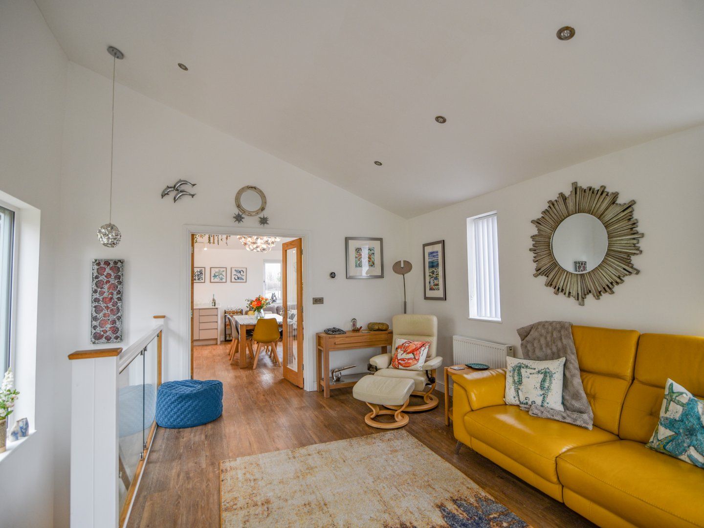 Amenities Gas central heating. 2 x electric oven, gas hob, microwave, fridge, freezer, washing machine, dishwasher, coffee machine. 3 x TV, 2 x Bluetooth speakers, digital radio, WiFi. Fuel and power inc. in rent. Bed linen and towels inc. in rent. Off-road parking for 3 cars with electric vehicle charging point. Split level garden, lower paved patio (with large dining table), upper manicured planting with a large seating area. Sorry, no pets and no smoking. Shop 0.6 miles, pub 0.4 miles, beach 0.8 miles. Note: Supervision of younger children will be required in the living area with open stairs and all garden areas. Note: There are two super-king-size bedrooms with zip/link beds, if you require these to be twin beds, please contact us to advise. Note: There are CCTV cameras covering the parking area and entrance/exits to the property, for security purposes only.