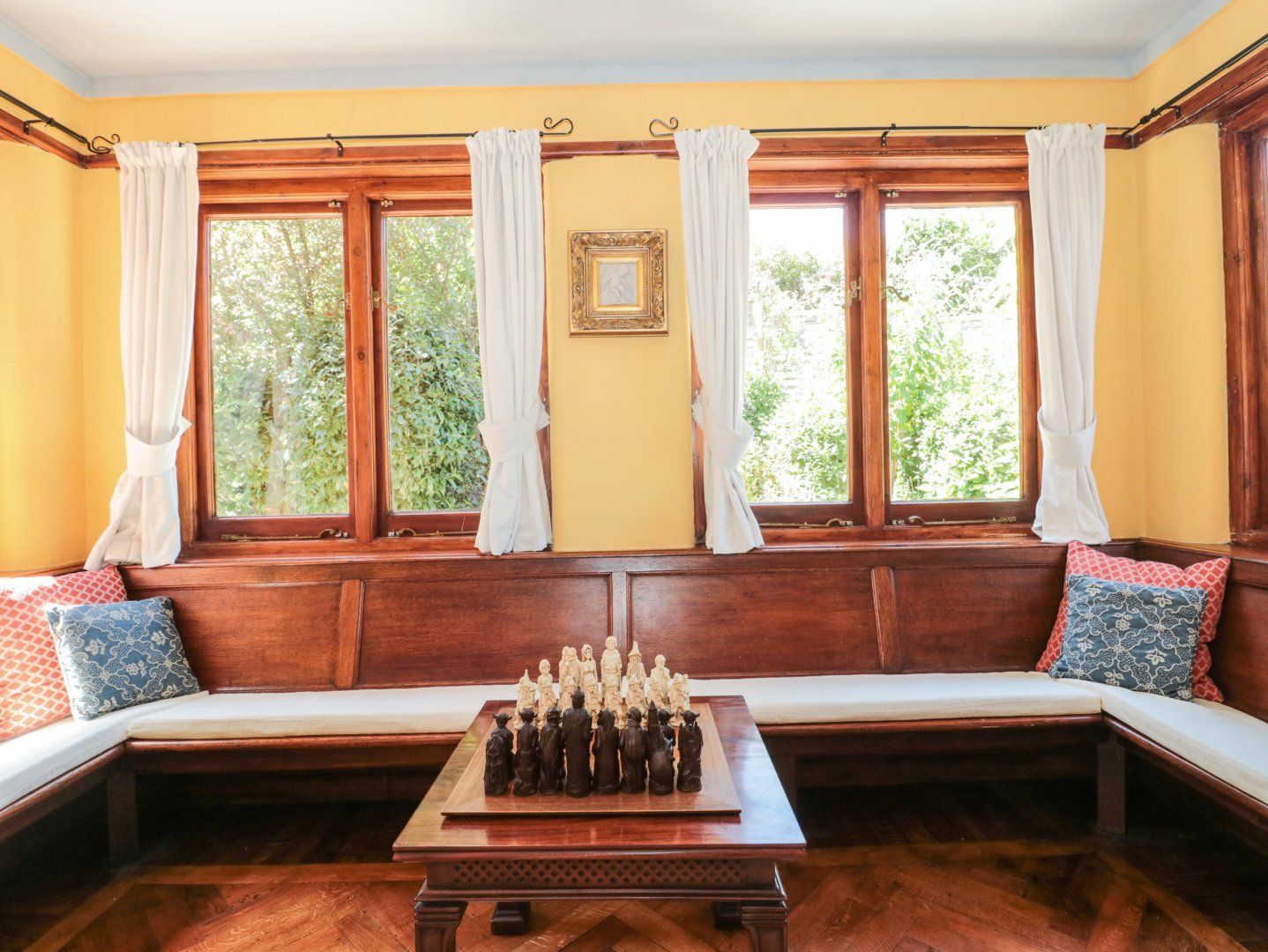Over three floors. Four bedrooms: 1 x second-floor twin, 1 x second-floor single, 1 x family room with double and single with en-suite bath, shower over, basin and WC, 1 x family room with double and single. Bathroom with bath, shower over, basin and WC. Cloakroom with basin and WC. First-floor cloakroom with basin and WC. Second-floor cloakroom with basin and WC. Kitchen. Utility. Living/dining room. Conservatory/games room. Snug with day bed