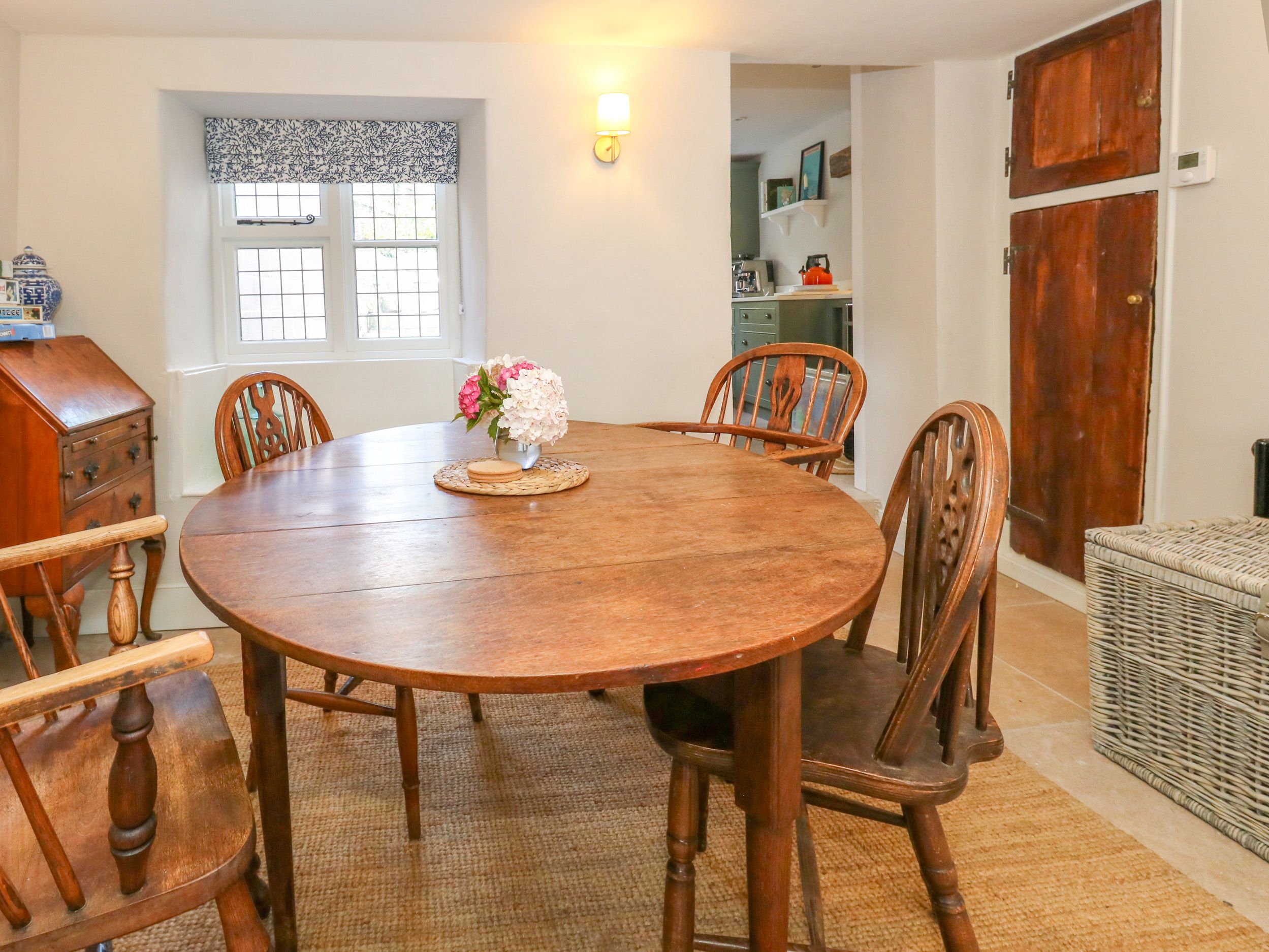 Gas central heating. Electric oven and induction hob, small AGA, microwave, fridge, freezer, wine cooler, washer/dryer, hairdryer, coffee maker, kettle and toaster. Smart TV, WiFi. Fuel and power inc. in rent. Bed linen and towels inc. in rent. Enclosed garden with raised terrace and furniture, lawned area, and patio with furniture and barbecue. Pet-friendly. Sorry, no smoking. Parking permit provided for one car in the nearby Woodmead Halls long-stay car park on Hill Road (space is subject to availability). Shop and pub 0.1 miles, beach 0.3 miles. Note: Check-in by 4pm, check-out by 10am. Note: There's a step up into the kitchen. Note: There are three steps up one of the bedrooms. Note: Wine cooler and freezer are in the external utility. Note: There is no vehicle access to the front door - You may find it useful to briefly stop at the top of the lane to unload your luggage and collect your parking permit. Note: The permit is for Woodmead Carpark which is situated behind the cottage. Note: The Cottage is accessed via a steep pedestrianised lane and access to Woodmead Carpark can only be accessed by navigating the steep hill - access is not suitable for the elderly or people who struggle with mobility