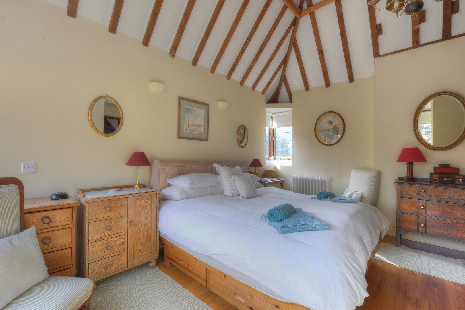 Accomodation Details Two bedrooms: 1 x super-king-size with TV and en-suite with bath, basin and WC, 1 x single plus single pull-out truckle bed. Ground-floor shower room with walk-in shower, basin and WC. Kitchen. Open-plan living space with dining area and sitting area with woodburning stove