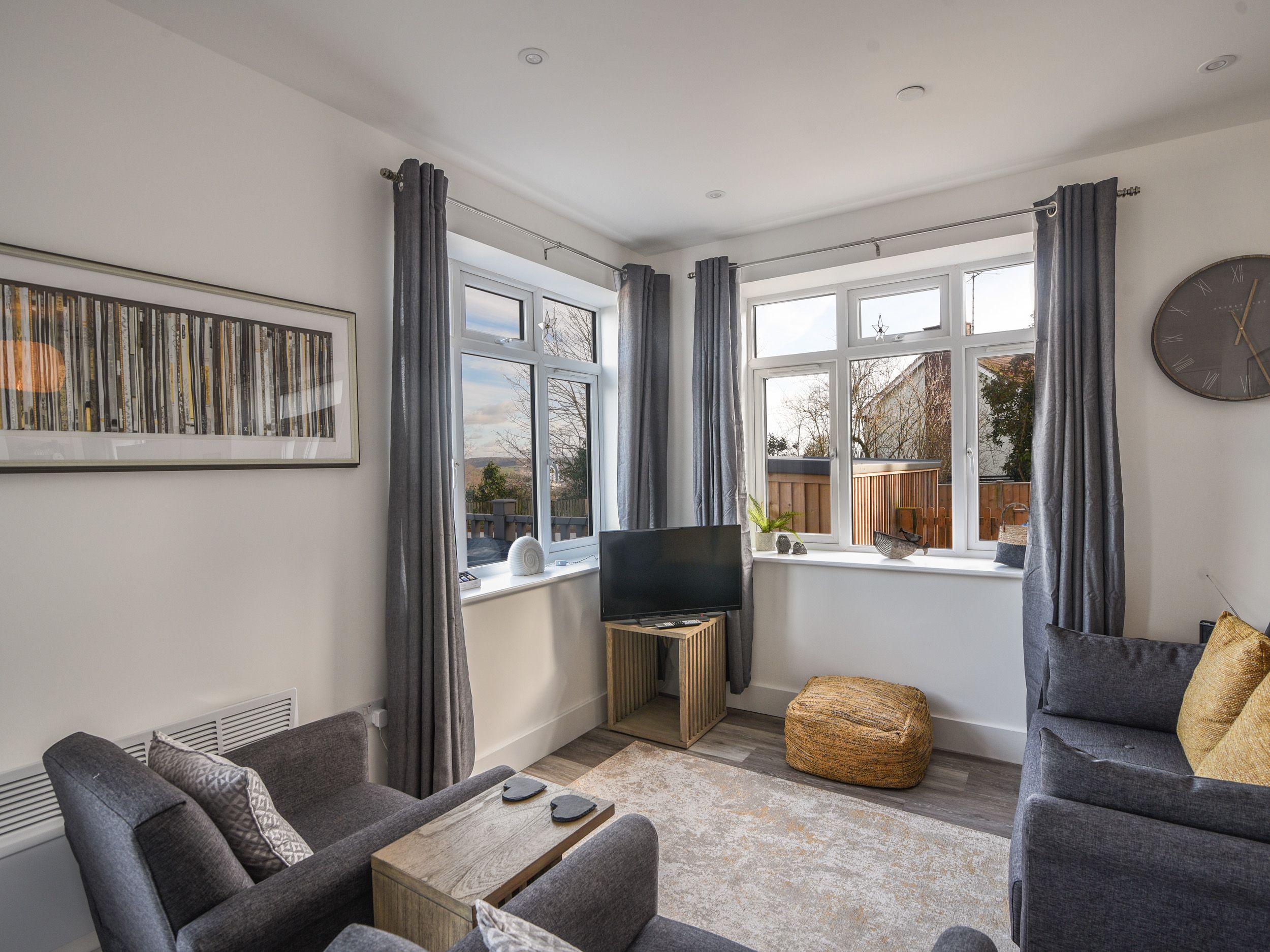 Accomodation Details Ground-floor apartment. Two bedrooms: 1 x double with en-suite walk-in shower, basin, and WC, 1 x twin (2' 6''single beds). Bathroom with bath, basin and WC. Open-plan living space with kitchen, dining area and sitting area