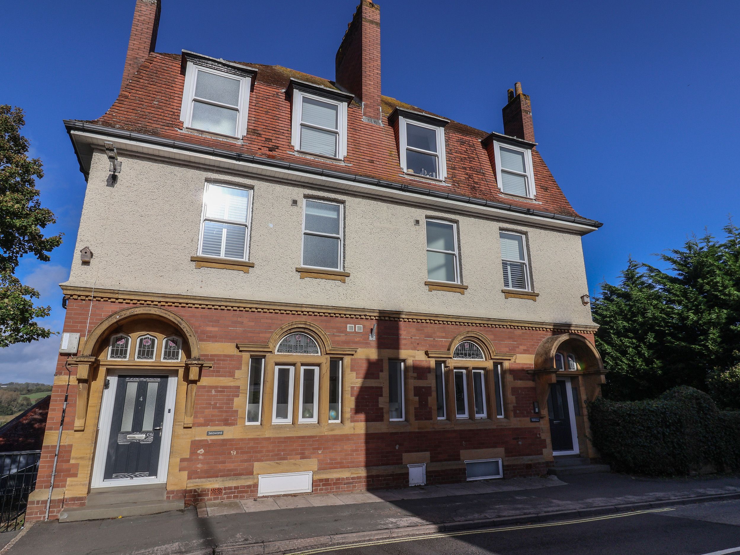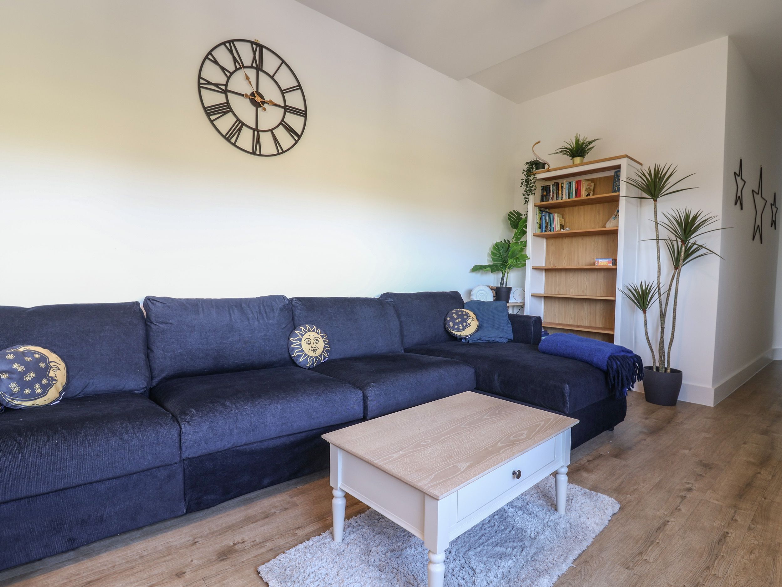 Moonbeam View consists of an open-plan living space with a kitchen, dining and sitting area with an electric oven and hob, microwave, fridge/freezer, dishwasher, hairdryer, dining seating, TV and DAB radio. The bedrooms consist of a double with en-suite bathroom with bath with shower over, basin, heated towel rail, and WC and twin with an en-suite shower, basin, heated towel rail, and WC plus there is a cloakroom with basin and WC. Outside, there is off-road parking for 3 cars and an enclosed courtyard with furniture and bike storage. There is a highchair and travel cot available. Sorry, no pets and no smoking. Guests can find a shop within 0.4 miles, a pub within 0.2 miles and a beach in 0.5 miles. Enjoy a memorable stay at Moonbeam View. Note: Check-in from 4pm, check-out by 10am. Note: There are two steps to the exterior. Note: the outside seating area/courtyard is not attached to the apartment and is accessed via the car park at the rear of the building
