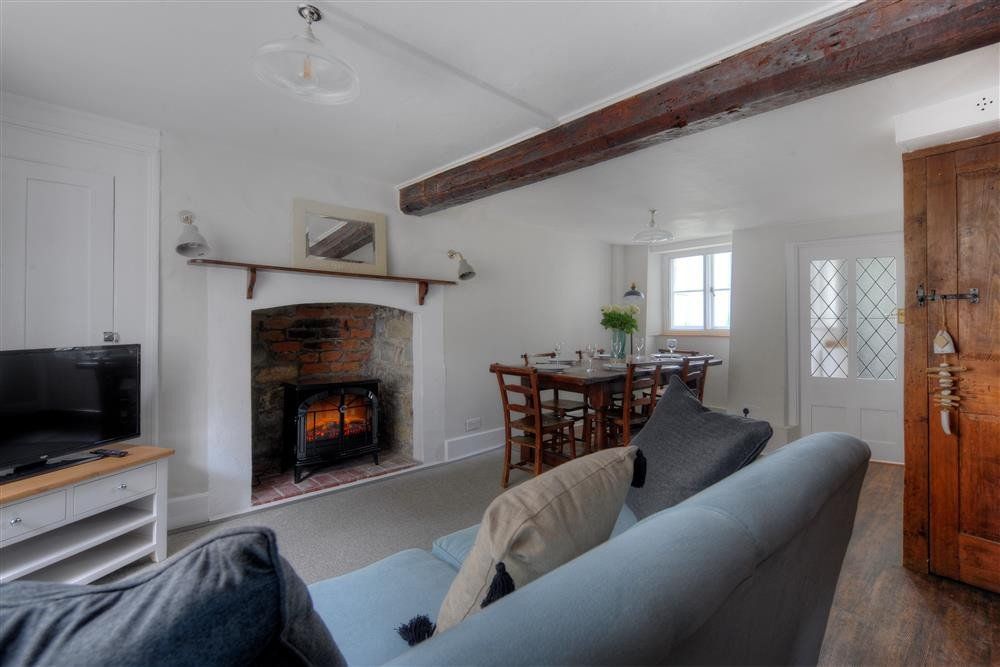Amenities Gas central heating with woodburning-effect stove. Electric oven, grill and hob, microwave, fridge with ice box, washing machine/tumble dryer, dishwasher, coffee machine. Smart TV, DVD player, Bluetooth radio, WiFi. Fuel and power inc. in rent. Bed linen and towels inc. in rent. One parking permit supplied for Woodmead car park on Hill Road (no allocated space) within 5 minutes walk. Enclosed patio, furniture. Pet-friendly, sorry no smoking. Shop 0.1 miles, pub 0.1 miles. Note: If you wish the twin to be made up as a king-size please specify at the time of booking. Note: Children will need to be supervised in the garden so please bear this in mind when booking. Note: There is a sofa bed in the snug which can accommodate a further two guests