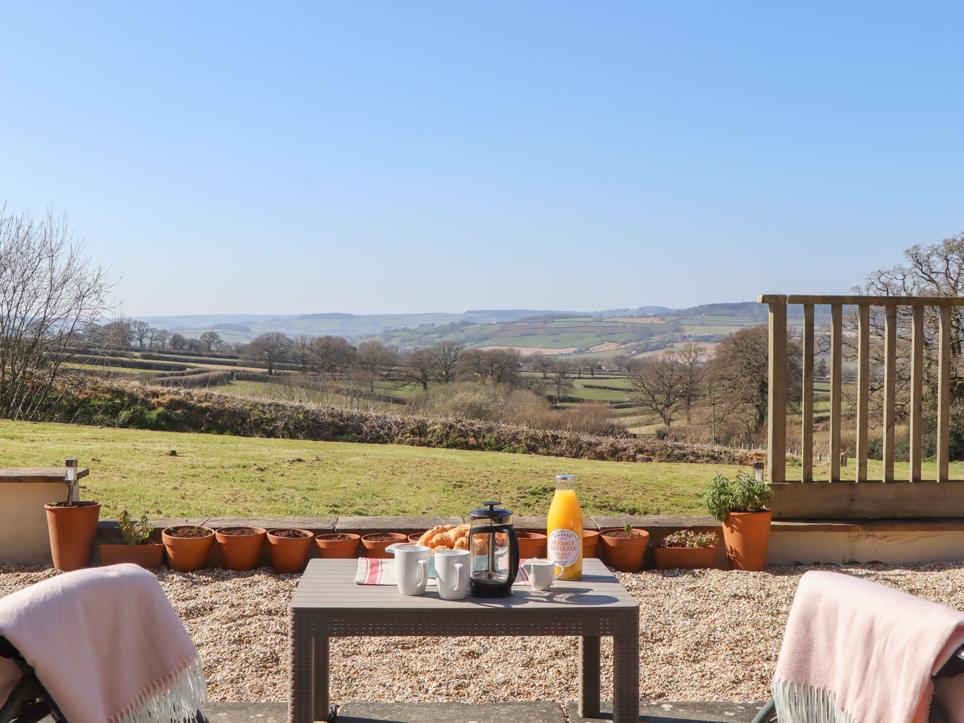 Holiday home The Shippon is one of two beautiful barn conversions positioned on a private farmstead and surrounded by glorious countryside. A short distance from the coast and the market town of Axminster it makes for an ideal base to explore the region. The barn is approached from the front deck into a large open plan light and airy living space with vaulted ceilings and a wood burning stove. Squashy sofas in the centre with a country kitchen and raised dining area at either end. Down 3 steps from the kitchen end to the master bedroom with TV, stable door and en-suite shower room. Up three steps from the dining area to two further bedrooms, a twin and a super-king. A family bathroom with bath and shower over. To the front a large decked patio with seating. Parking for 2 cars. Note: There is a sloped gravel path to the entrance and steps within the property. Note: This property can be booked with refs. 1172783 and 1014133, together sleeping up to 15 guests.