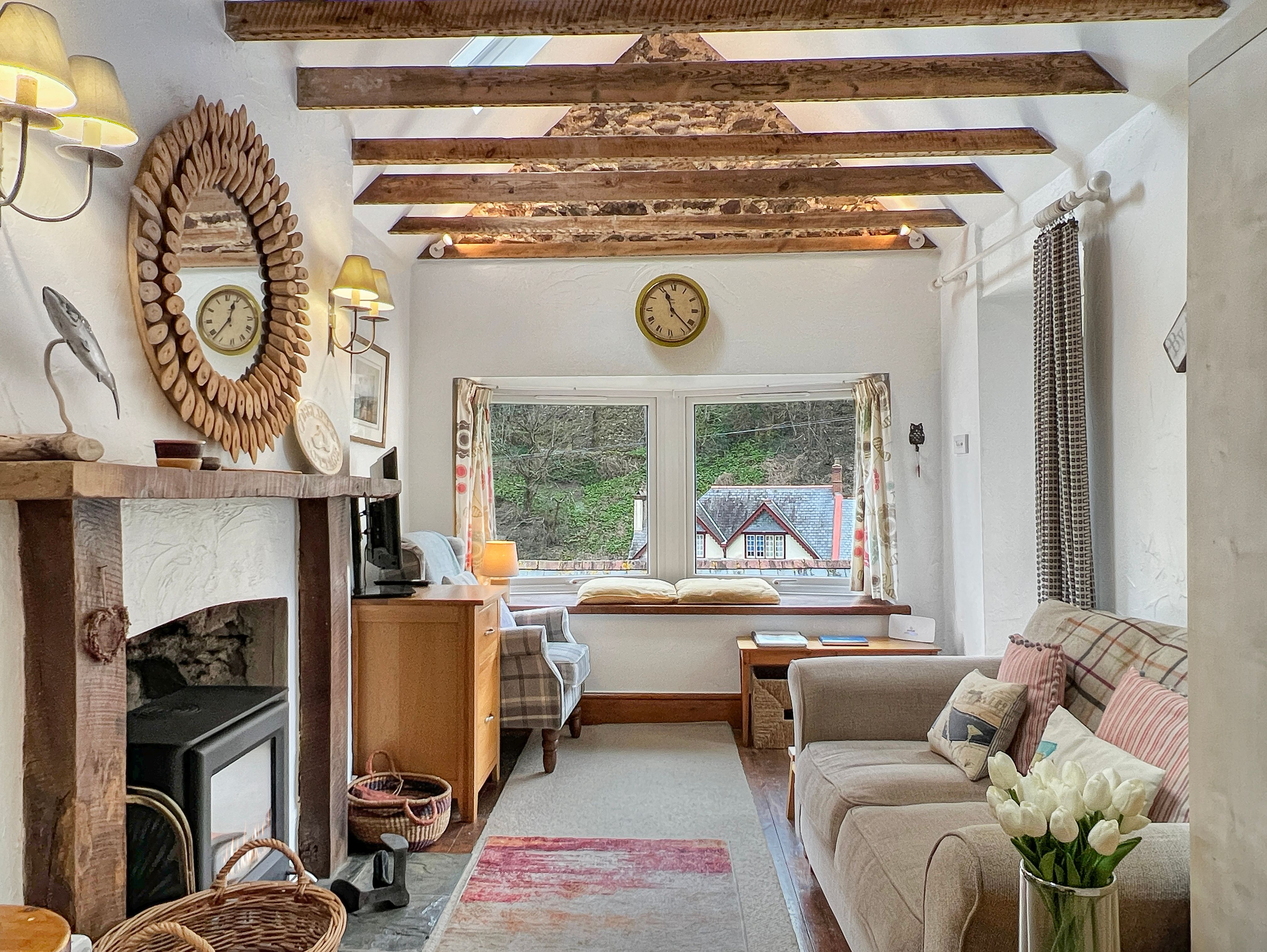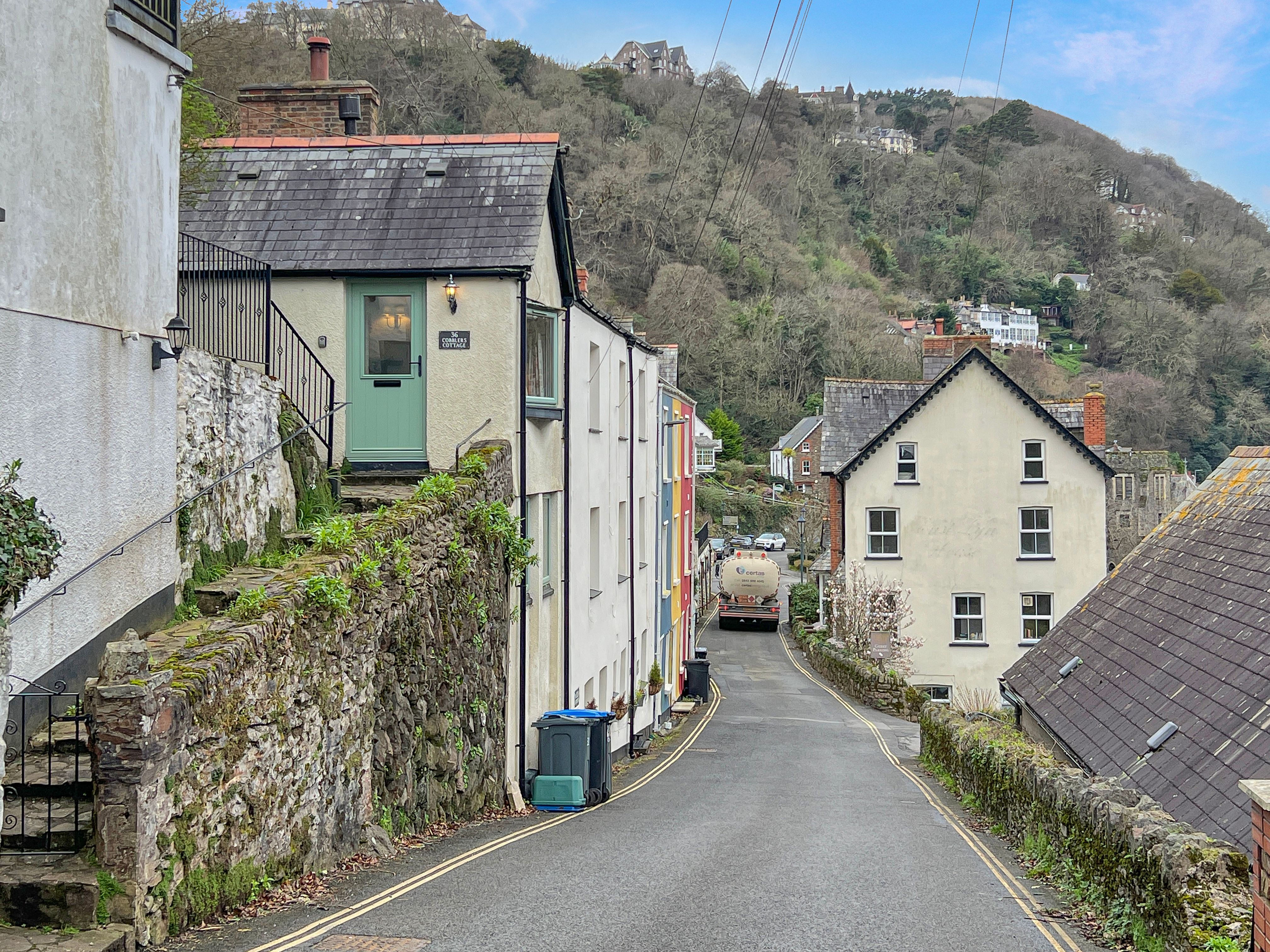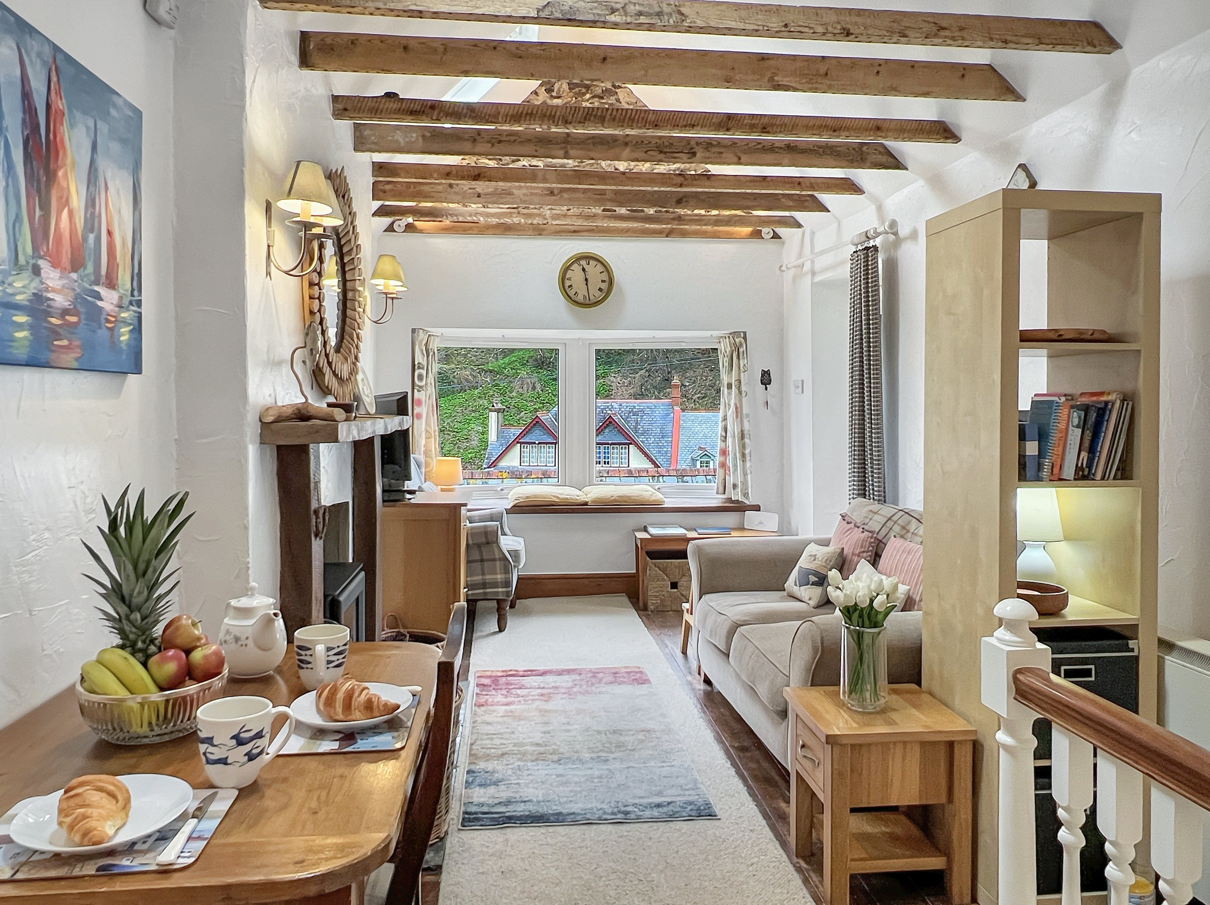 Lynmouth has a good selection of pubs, restaurants, and cafes within walking distance of the harbour. Lynton, reached by the cliff railway, road, or footpath, adds a small cinema, independent shops, galleries, tennis, and bowls. The larger towns of Barnstaple and Minehead are approximately 19 and 17 miles away respectively, offering supermarkets, high street banks, and wider services.