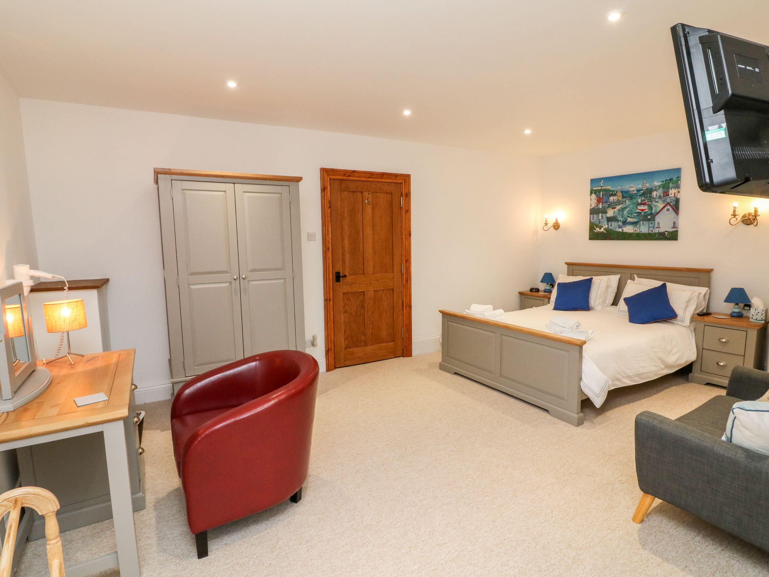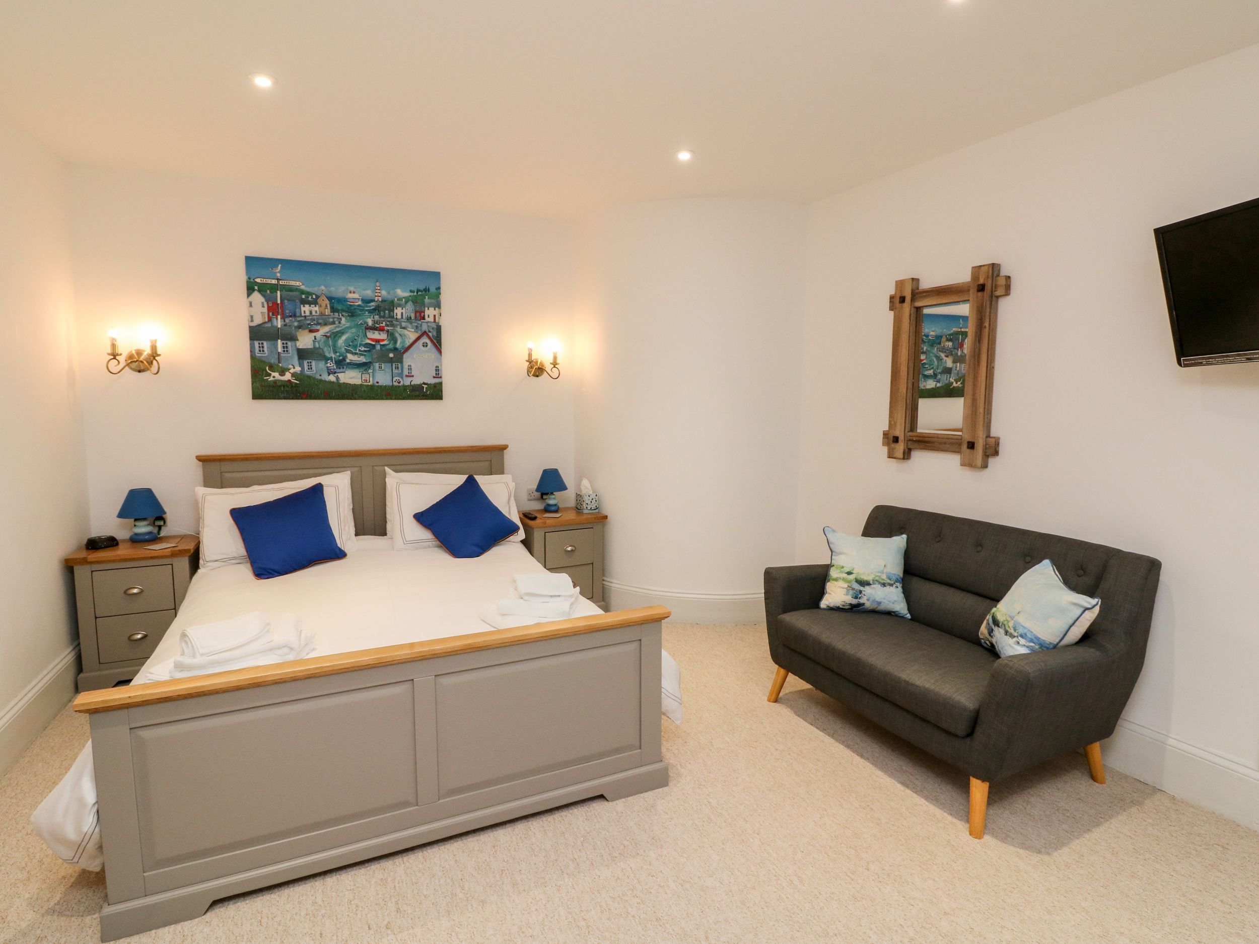 Electric heating. Electric oven and hob, dishwasher, fridge/freezer, microwave, washing machine, heated airer, TVs and WiFi. Fuel and power inc. in rent. Bed linen and towels inc. in rent. Off-road parking for one car. Large terraced communal garden with seating to admire the breathtaking sea view. One well behaved dog welcome. Sorry, no smoking. Shop 0.2 miles, pub 0.3 miles. Note: Check in is 4pm and check out is 10am. Please note: This property only accepts Saturday check in days.