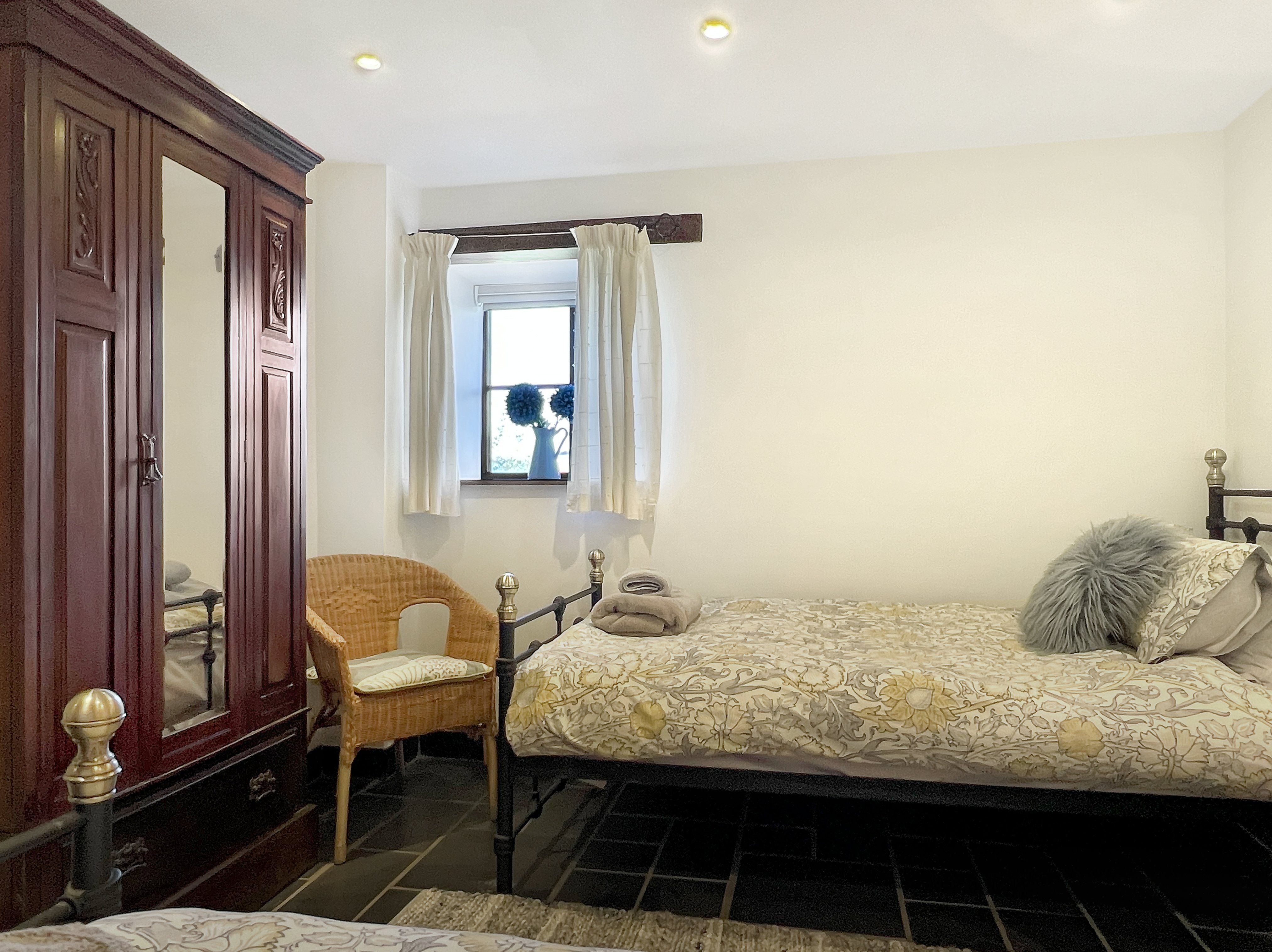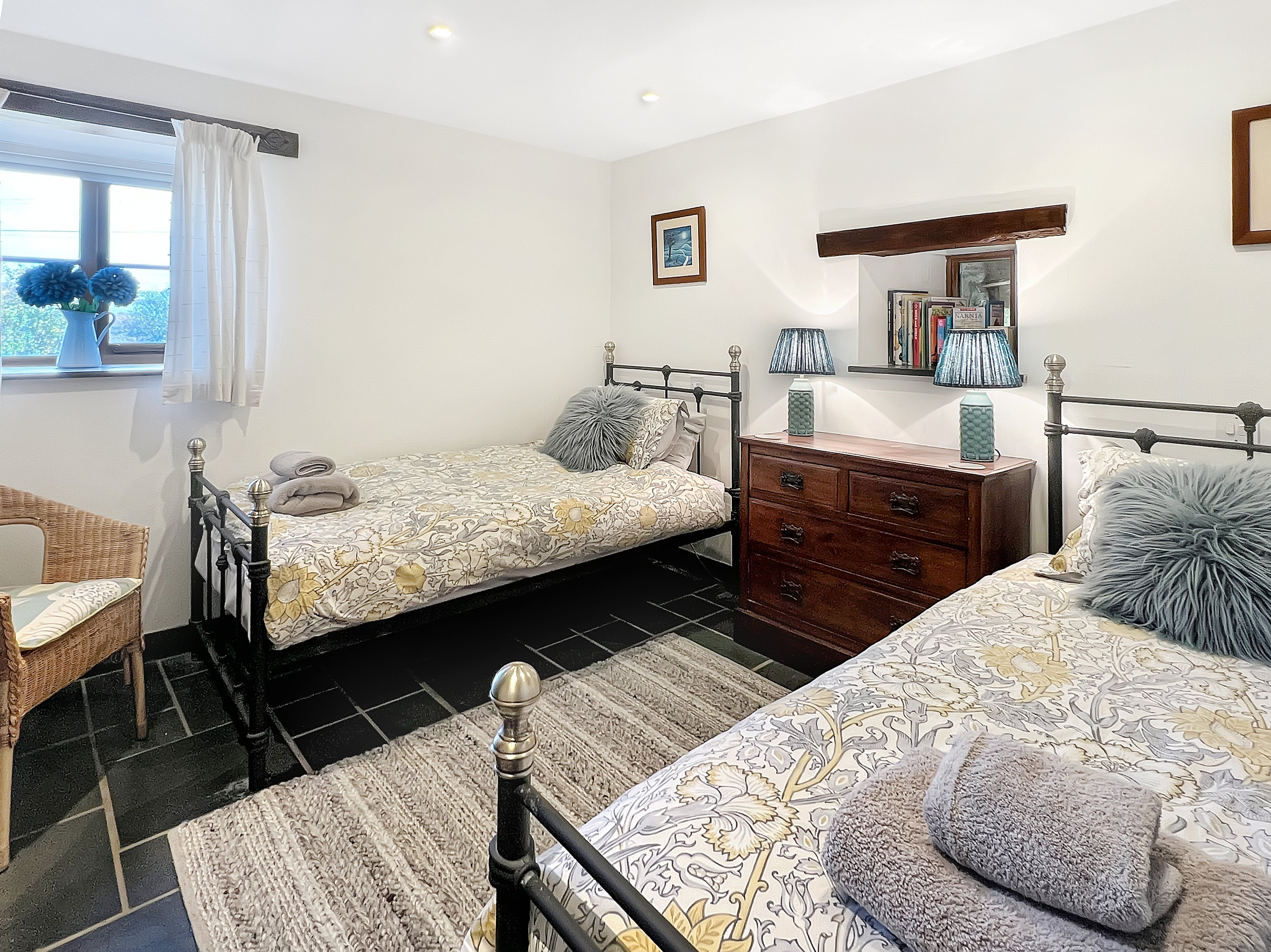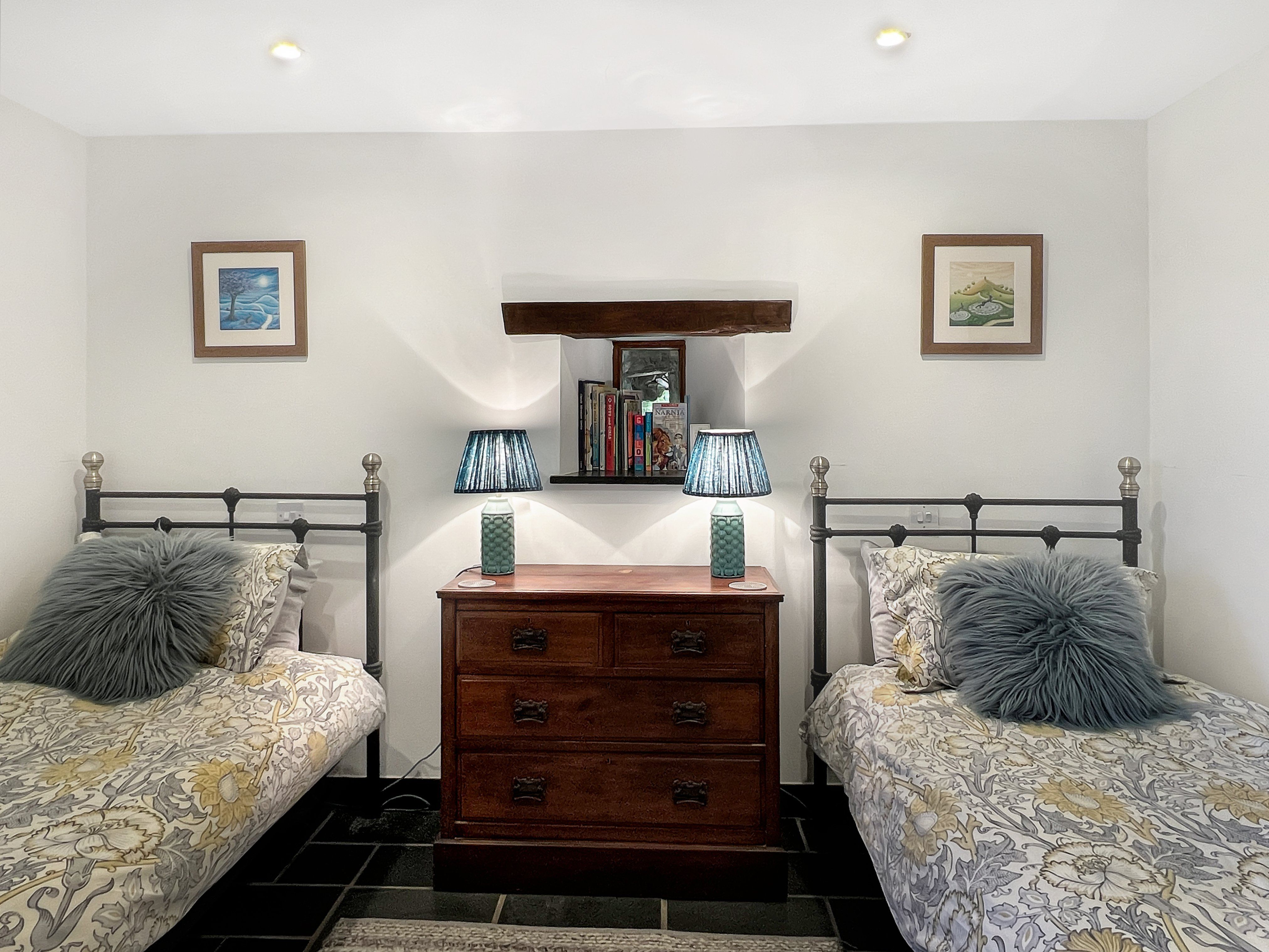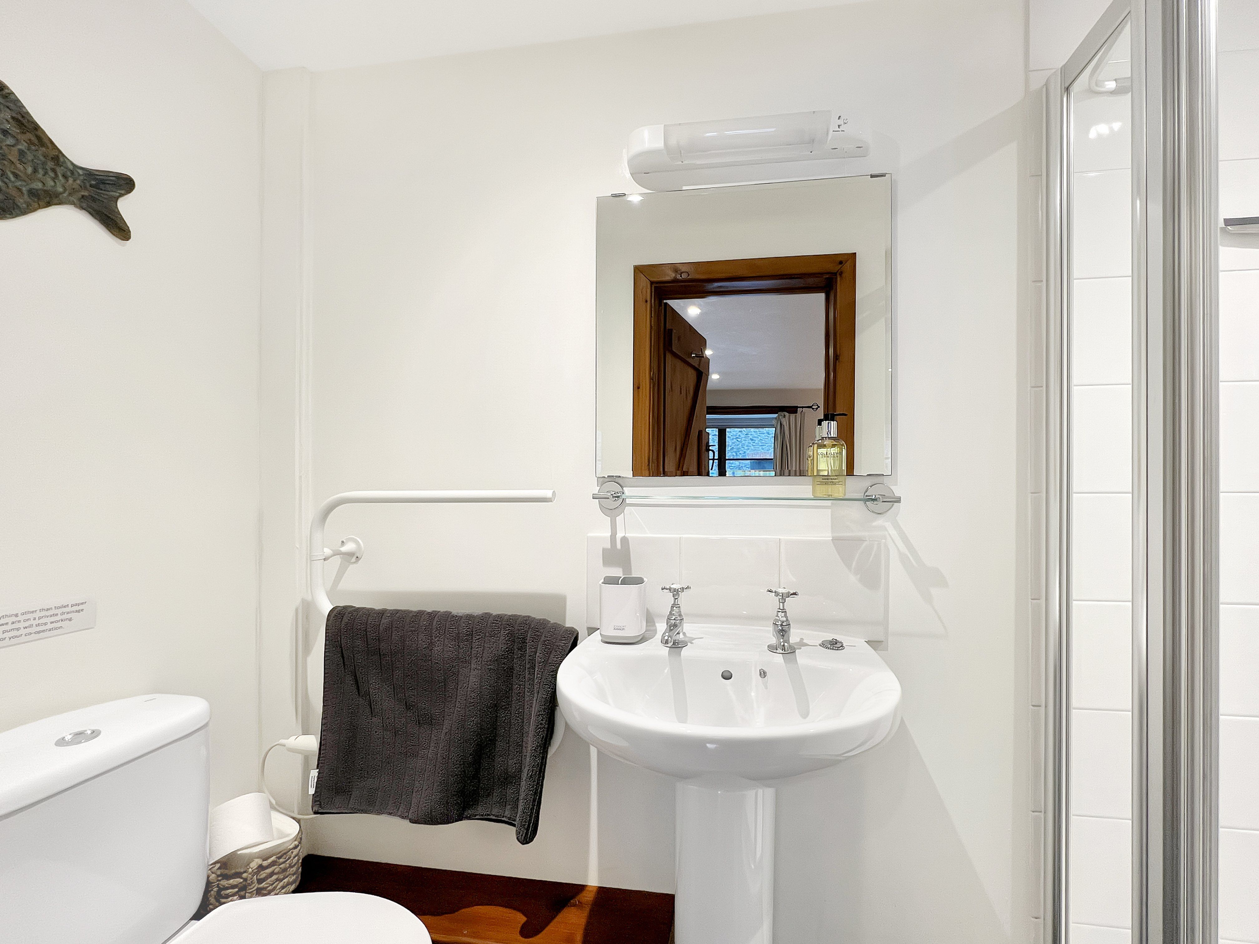 The other two bedrooms are located downstairs; there is a twin bedroom, family bathroom with bath and separate shower. The third bedroom has another king size bed and en-suite shower room. A travel cot is available on request.