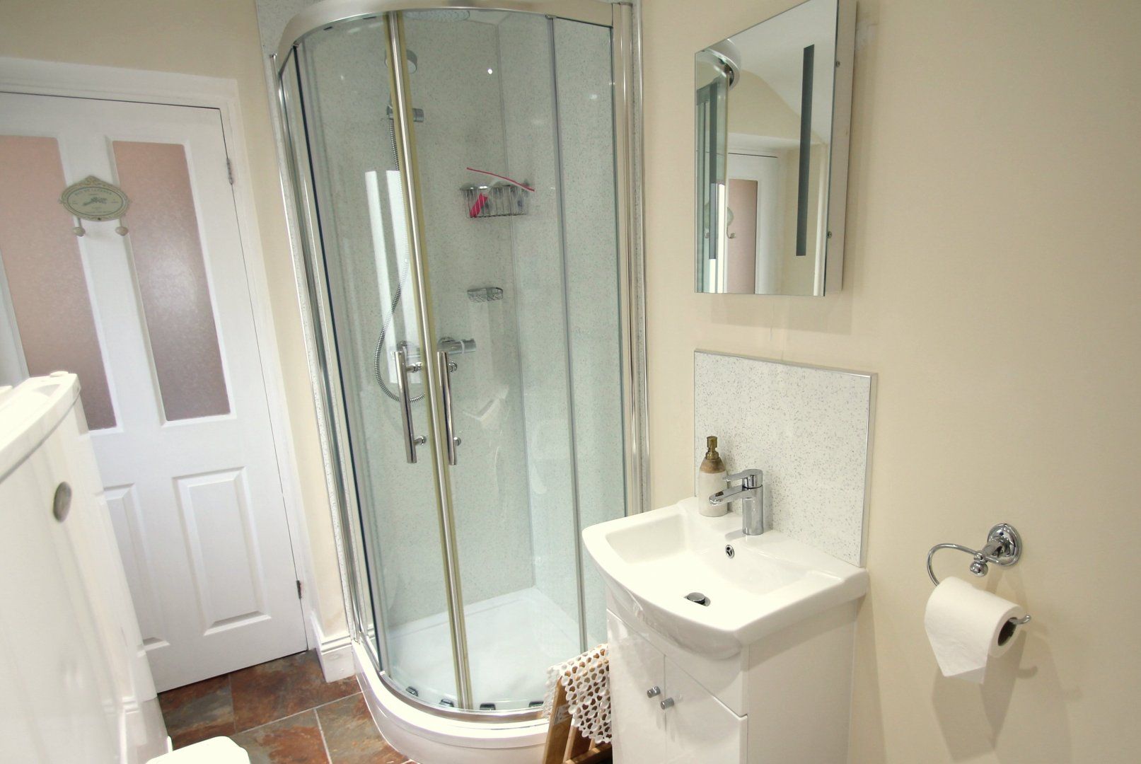 And on the first floor: Bedroom 1 with King-sized bed and vanity unit. Bedroom 2 has a double bed. Bedroom 3 has twin beds. The family bathroom comprises bath, electric shower over bath, toilet and basin.