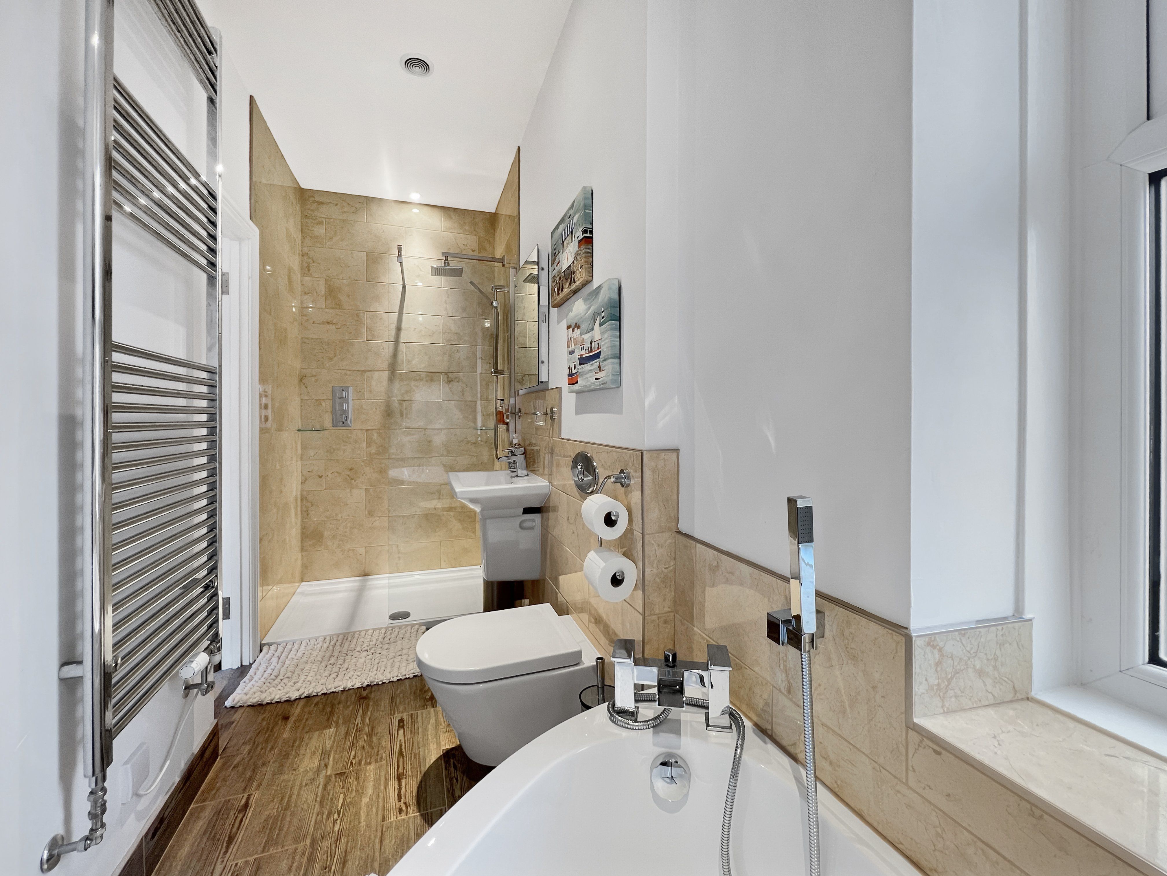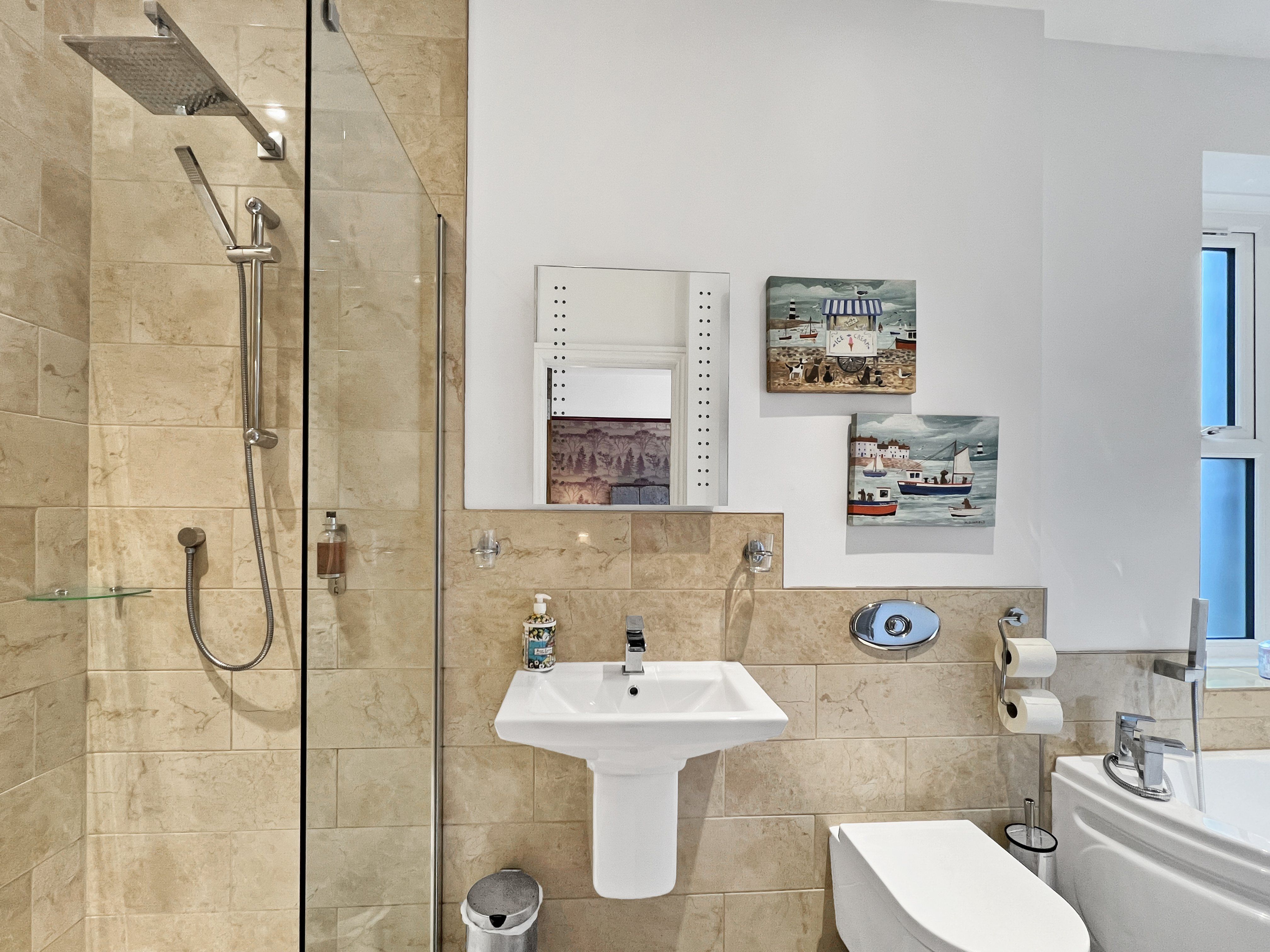 The living room has a 42" TV and fast wifi is available throughout the property (50mbps). An iron and ironing board are provided for your convenience and some board games for your entertainment.