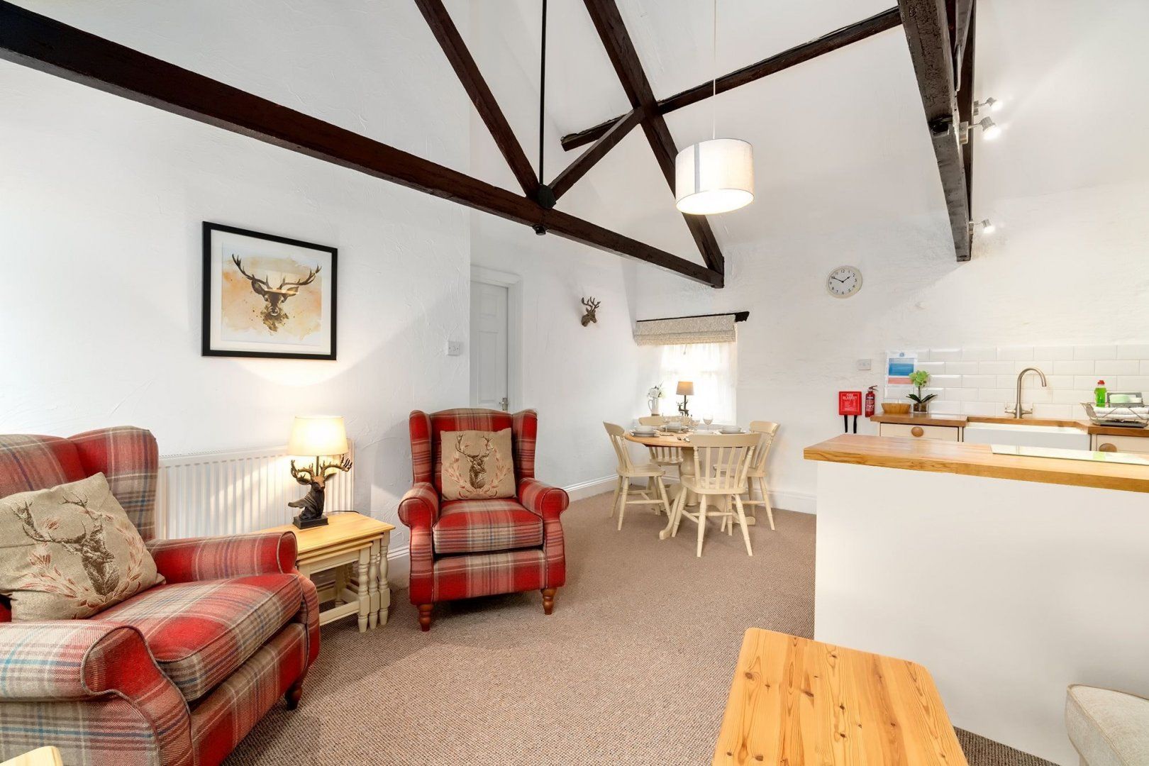 Situated in the quaint village of Marldon, this cosy cottage guarantees rest and relaxation after busy days spent exploring the English Riviera. The interiors are inviting, with ceiling beams adding a touch of rustic charm and tartan armchairs in the living space providing homespun comfort. Spend mornings pottering around the kitchen, rustling up a full English breakfast, followed by mugs of tea on the patio in the warm sunshine.