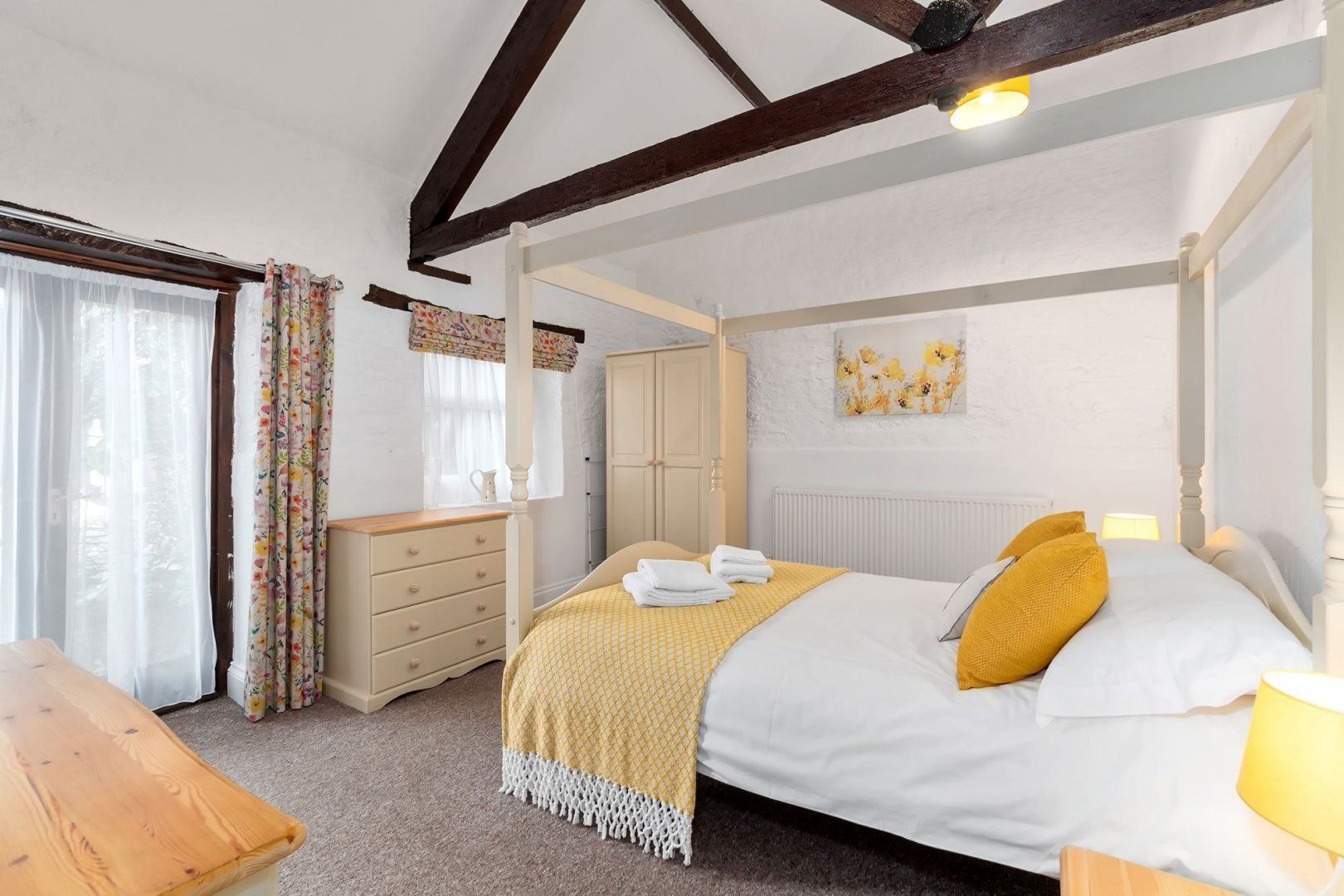 When you’re ready to explore, the seaside town of Paignton is a fifteen-minute drive from your building. Stroll along the promenade, with an ice cream in hand, before finding a spot on the beach to watch the waves roll in. If you’d prefer to head inland, Dartmoor National Park is less than an hour away by car. Return home in the early evening for an alfresco glass of wine and an early night in the sumptuous four-poster bed.