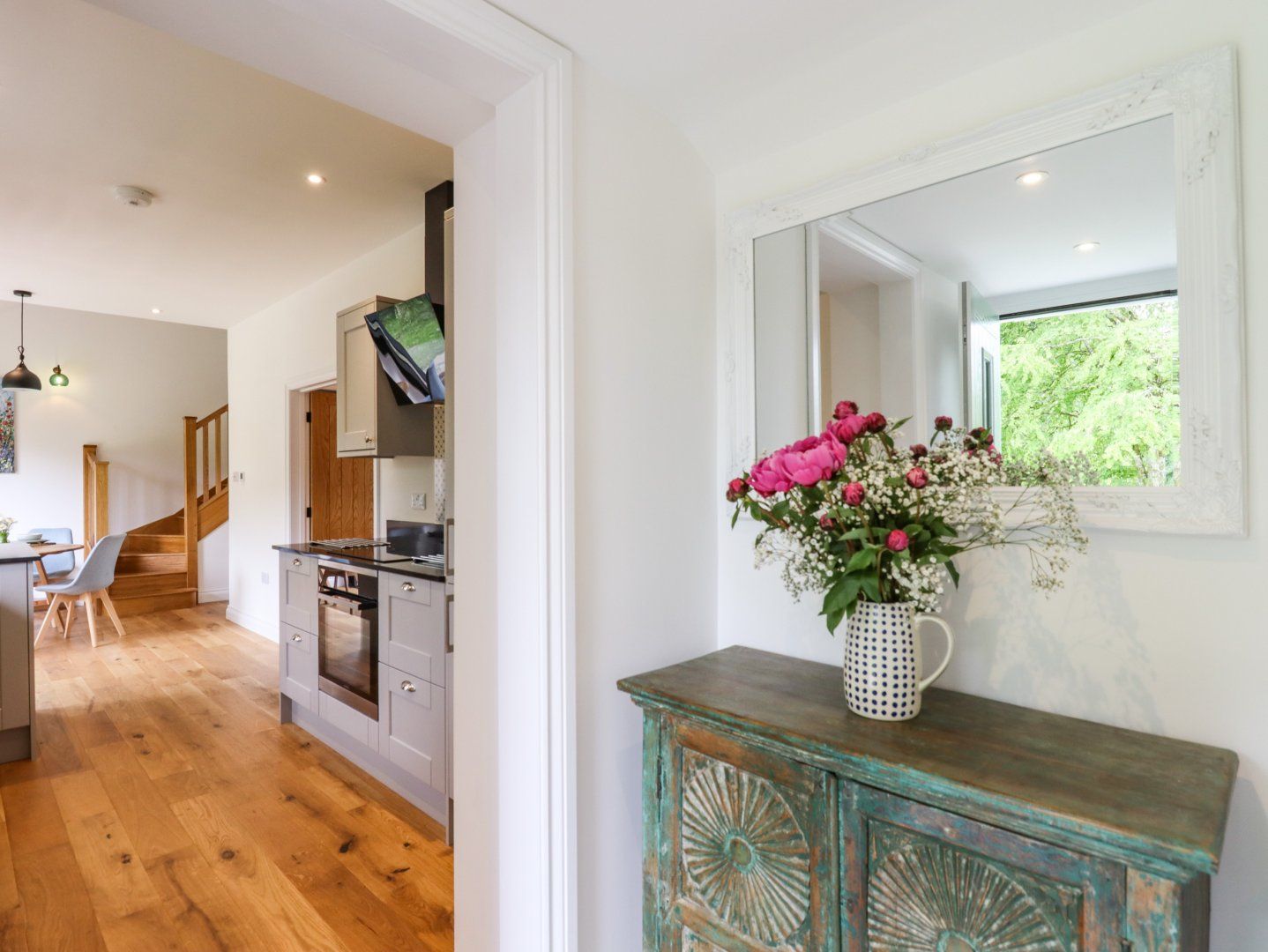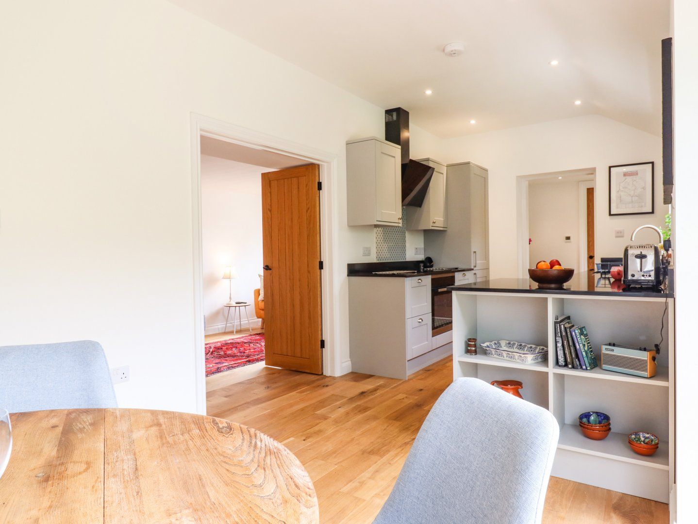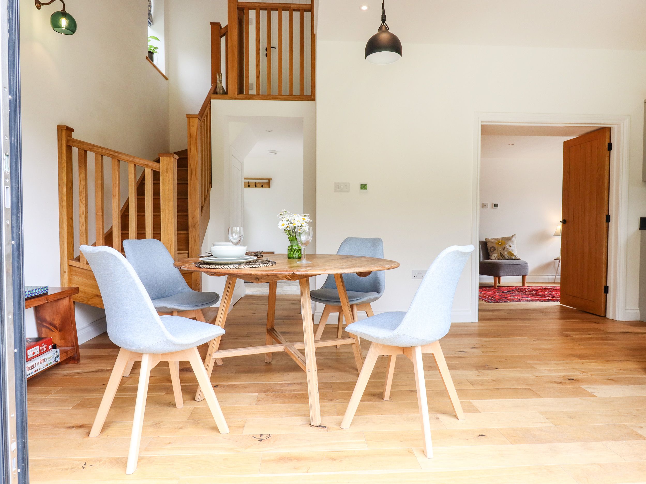 Amenities Central heating. Electric oven, induction hob, microwave, fridge/freezer, washing machine, tumble dryer, dishwasher. Smart TV, Soundbar, WiFi. Fuel and power inc. in rent. Bed linen and towels inc. in rent. Travel cot available on request. Off-road parking for 1 car. Garden with lawn, patio, decking, furniture and fire pit. One well-behaved pet welcome at £25 per week. Sorry, no smoking. Shop 0.6 miles, pub 0.3 miles. Note: Annexe attached to owner's property. Note: 3/4 size bath in bathroom, unsuitable for those with limited mobility. Note: In order to maximise space in the bedroom, the double bed is positioned against the wall with access on one side. Note: Dogs must be under tight control in the garden