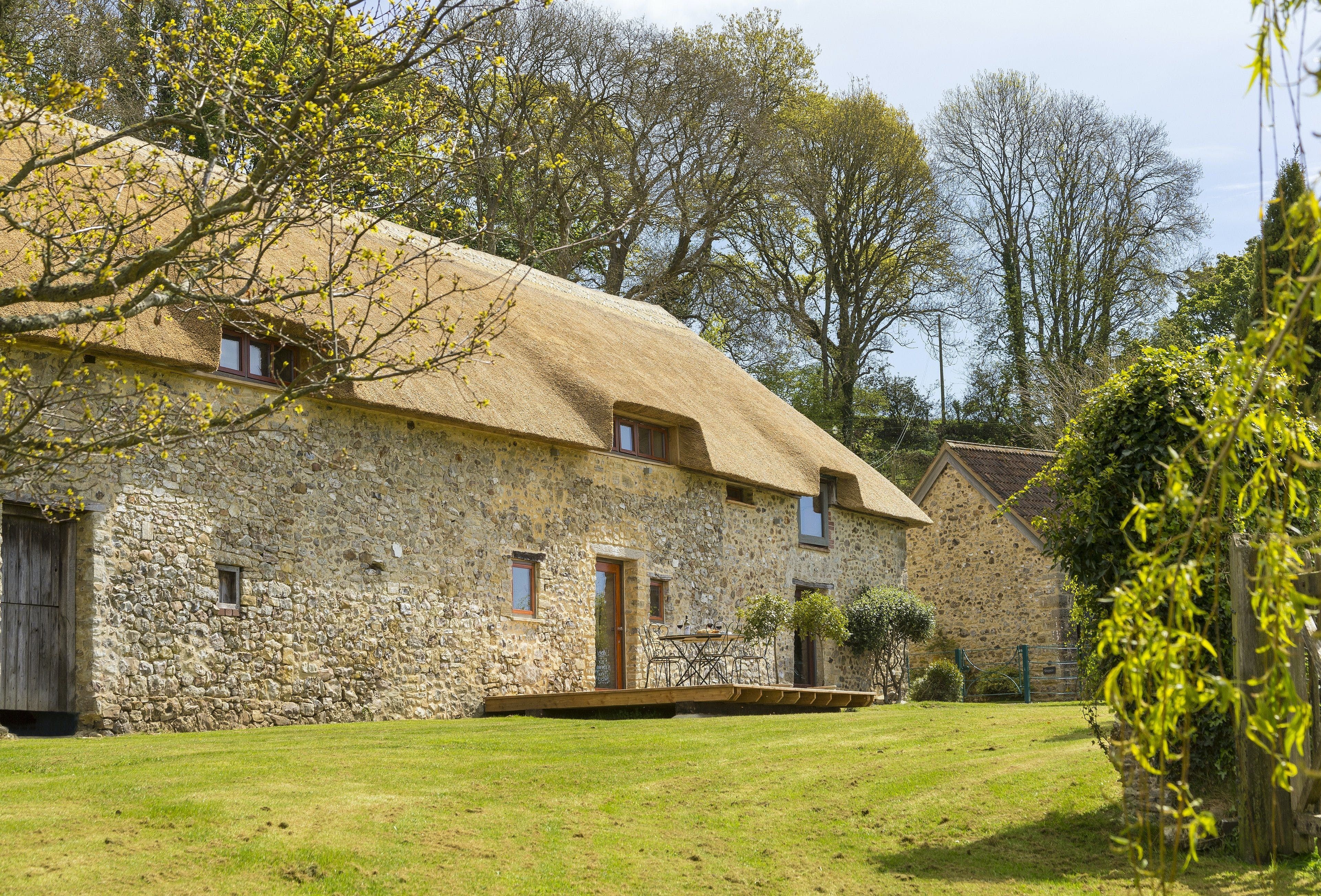 Peak cottage appeal awaits at this thatched home set within the rolling Devon countryside. While the wonky lime-washed walls, narrow staircase, and rustic kitchen built into the former stables are impressive, it’s not overly accessible or toddler friendly. But we think it only adds to the charm. Outside, the grounds are vast, with an enclosed garden and orchard, an alfresco dining deck, and the use of a paddock. There’s also the adjoining shared barn with table tennis if the weather plays up. Location-wise, you’re just a twenty-minute drive to the seaside town of Lyme Regis, and the foodie haven, River Cottage, is even closer.