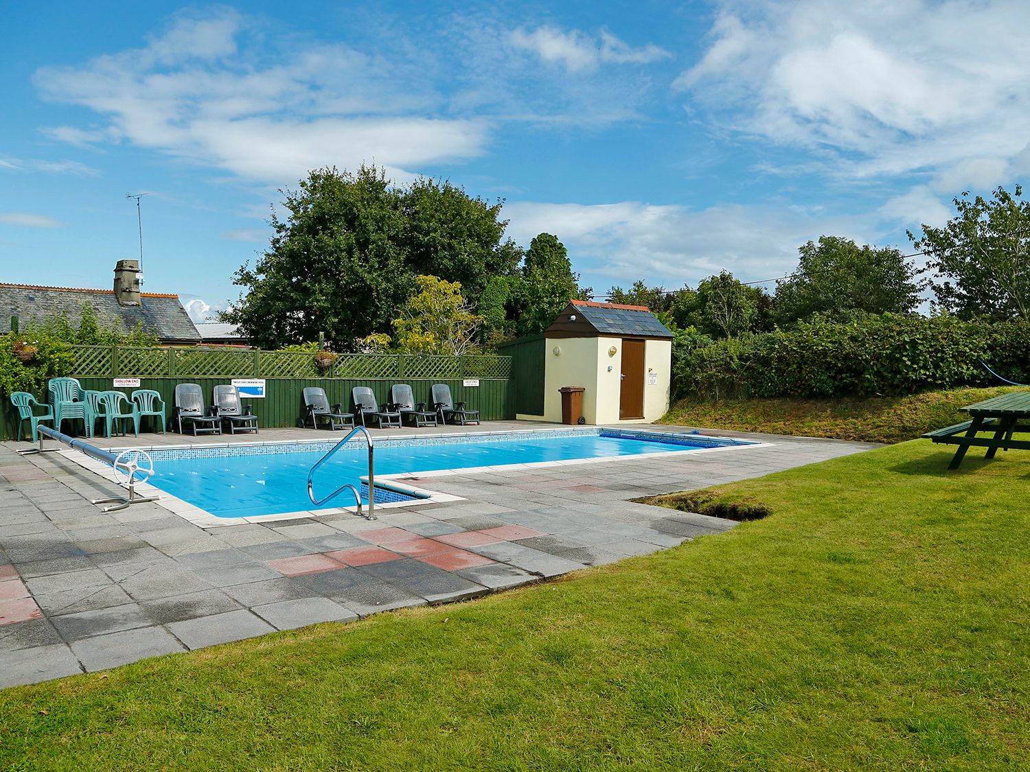 Amenities Underfloor central heating. Electric oven and hob, microwave, dishwasher, fridge/freezer, washing machine. TV with DVD, iPod dock, WiFi. Fuel and power inc. in rent. Bed linen and towels inc. in rent. Travel cot and highchair available by request. Off-road parking for two cars. Private courtyard with furniture and shared lawn. Shared outdoor heated swimming pool open 8am-8pm May-Sept. One well behaved dog welcome for £25 per week. Sorry cats are not allowed at this property. Sorry, no smoking. Shop and fishing lake on-site, pub 1.9 miles. Note: There is a dedicated electric vehicle charging station on site which is payable at reception. Note: only Friday arrivals accepted between 19th July to 30th August.